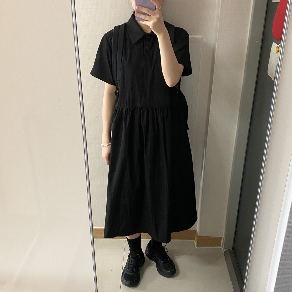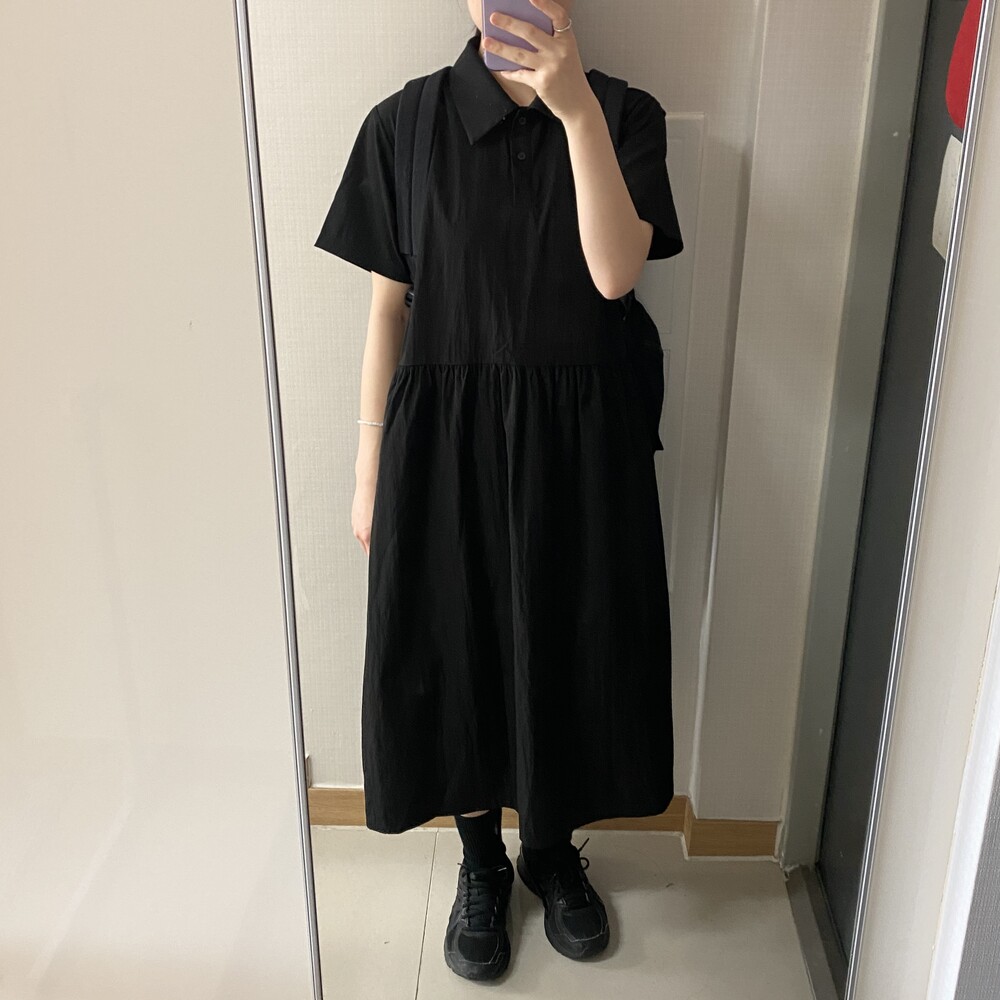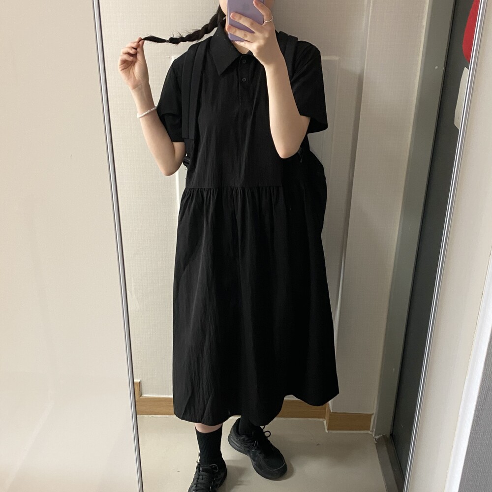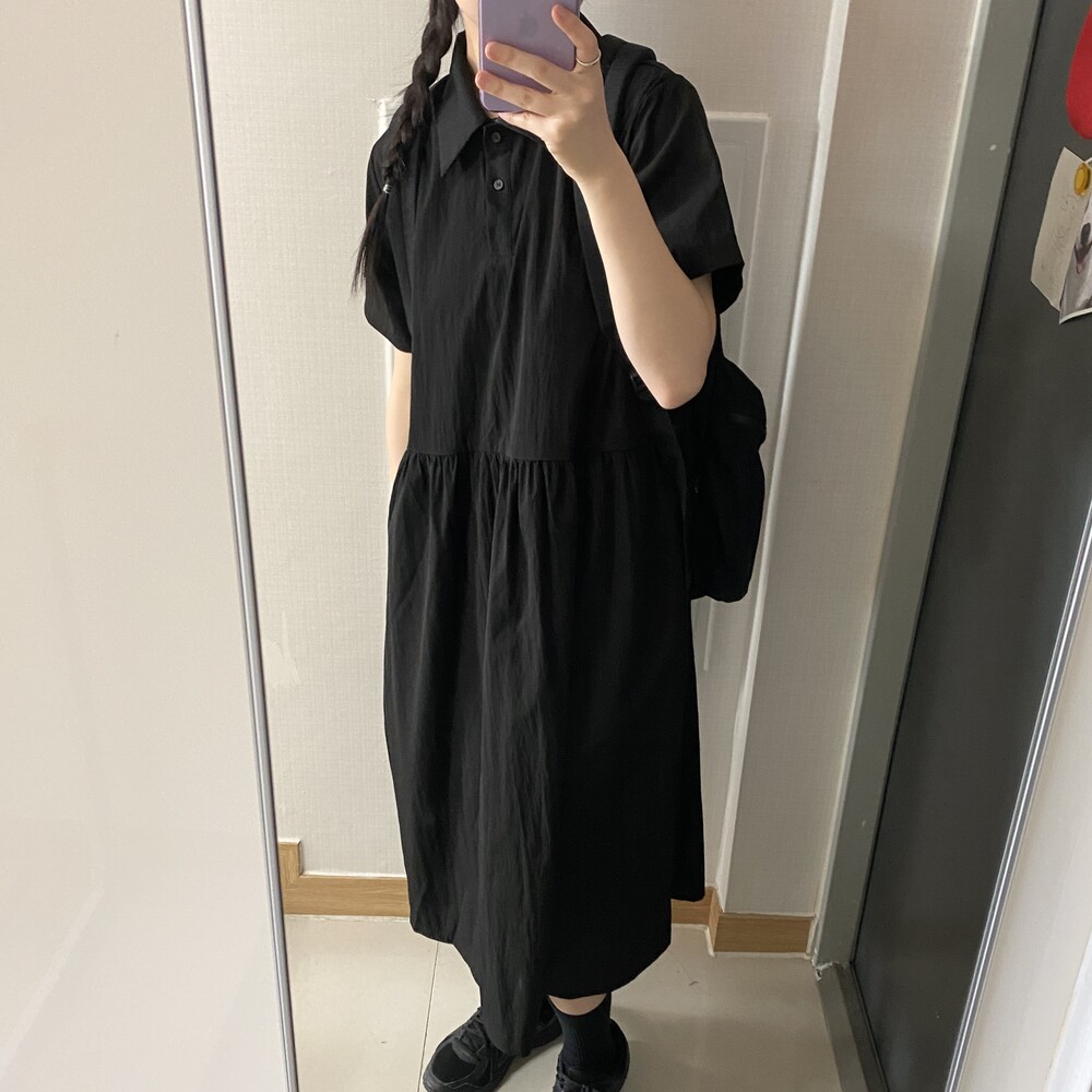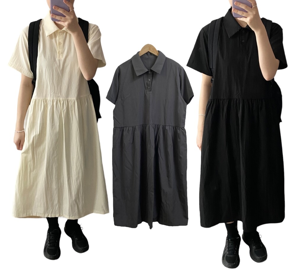 나일론 카라 롱원피스(3color)