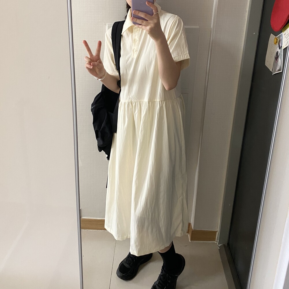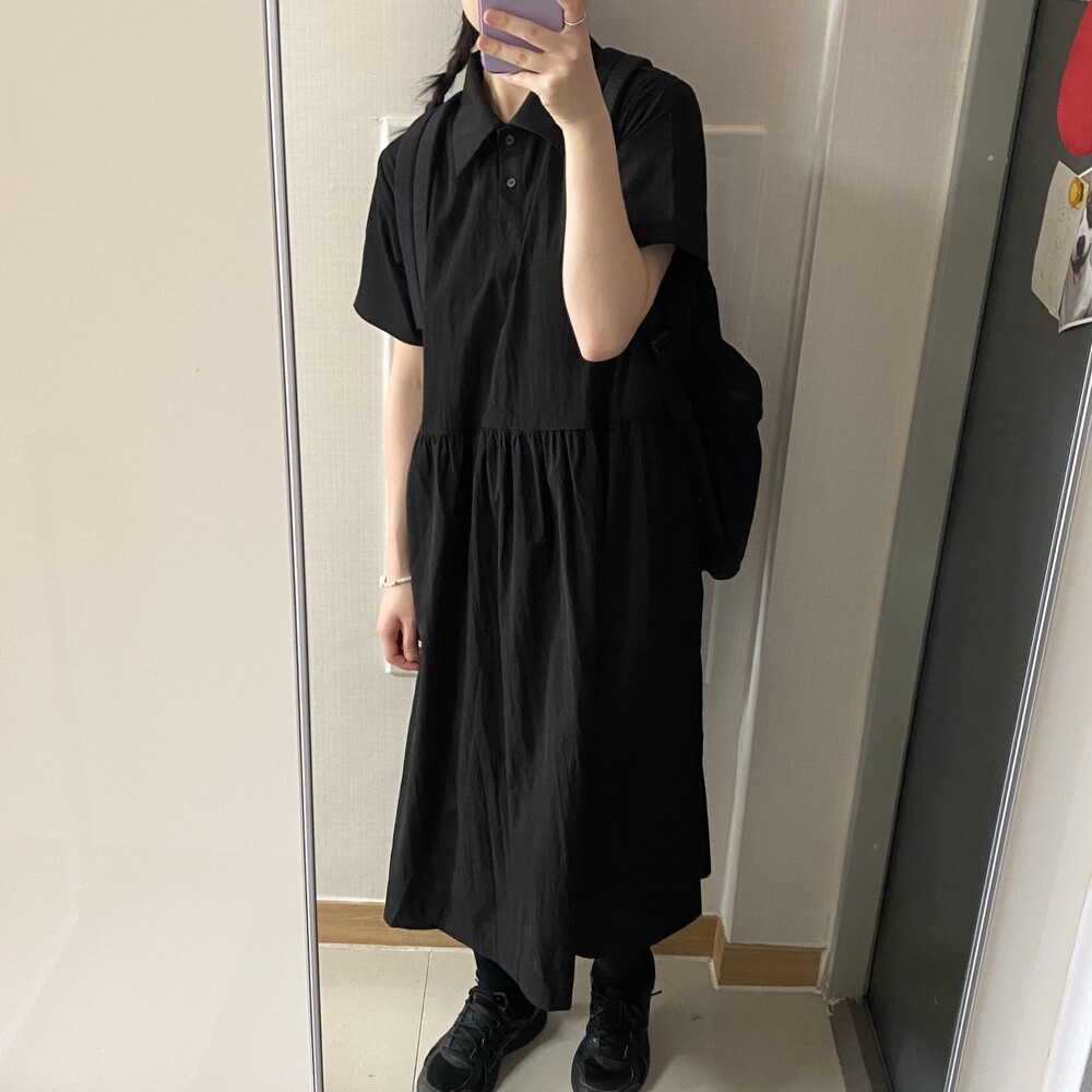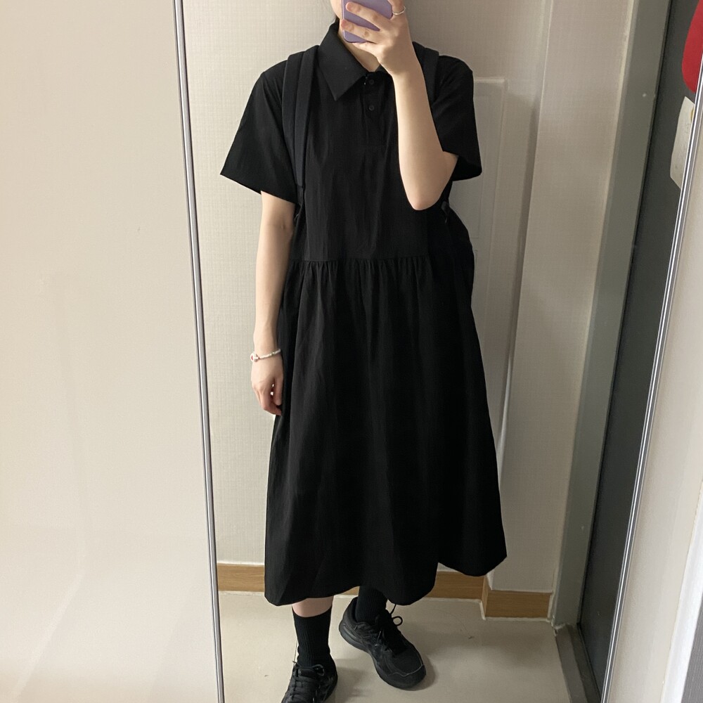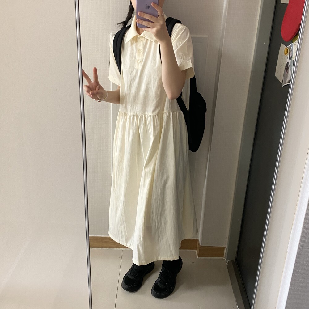 나일론 카라 롱원피스(3color)