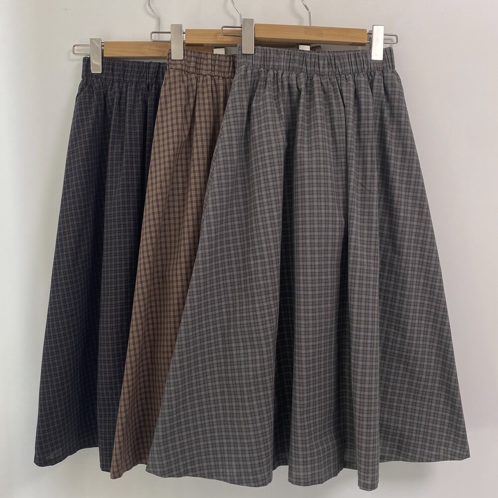 쿠키 체크 밴딩 롱스커트(3color)