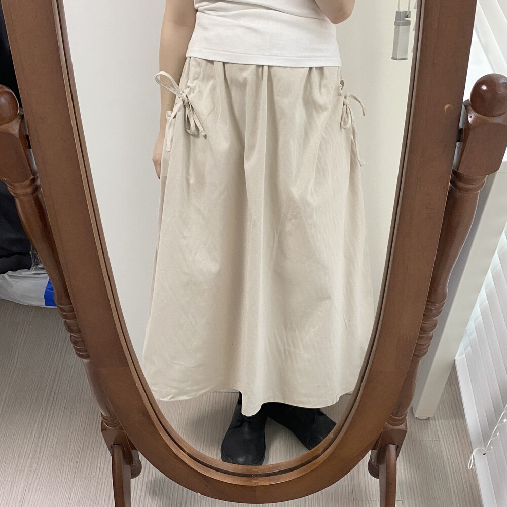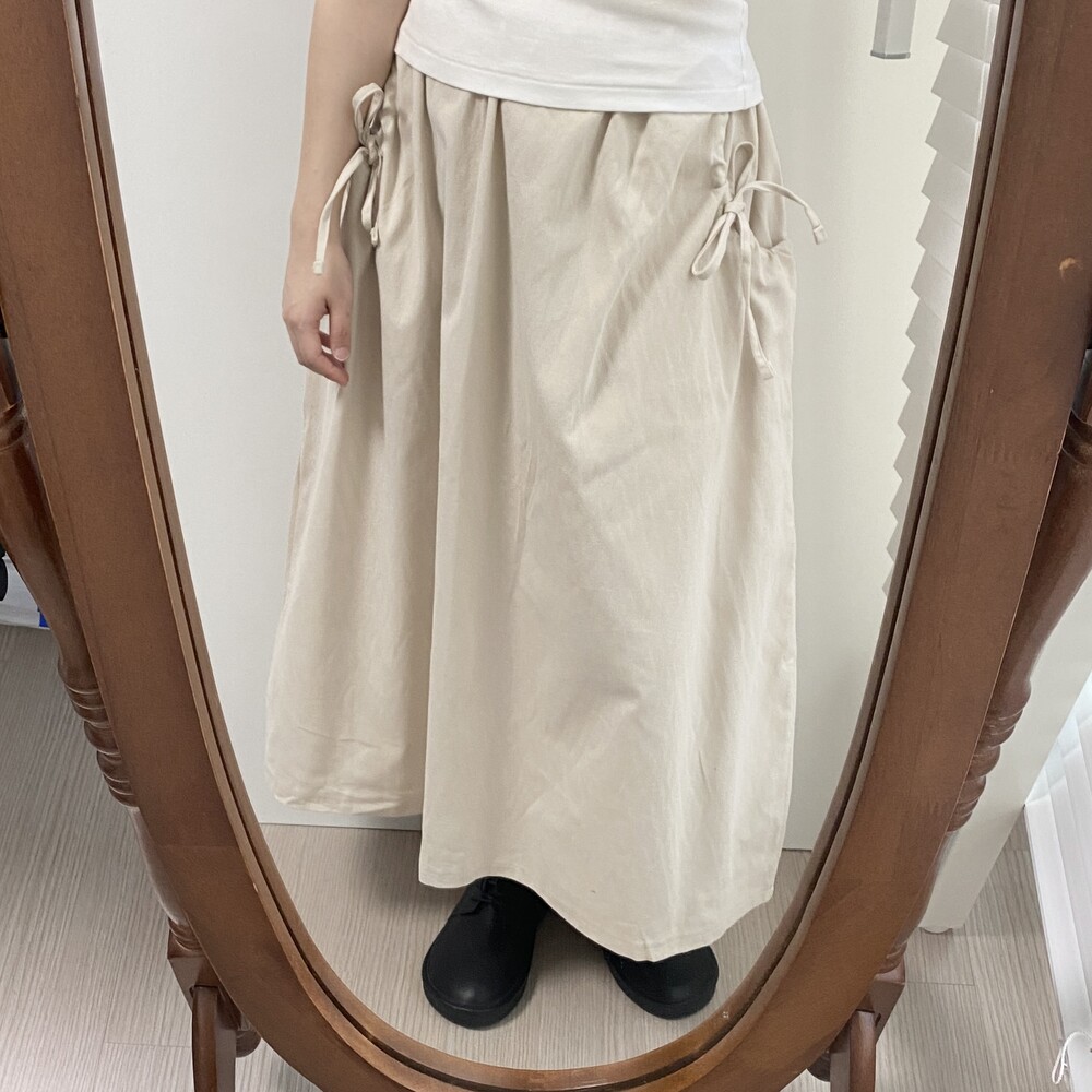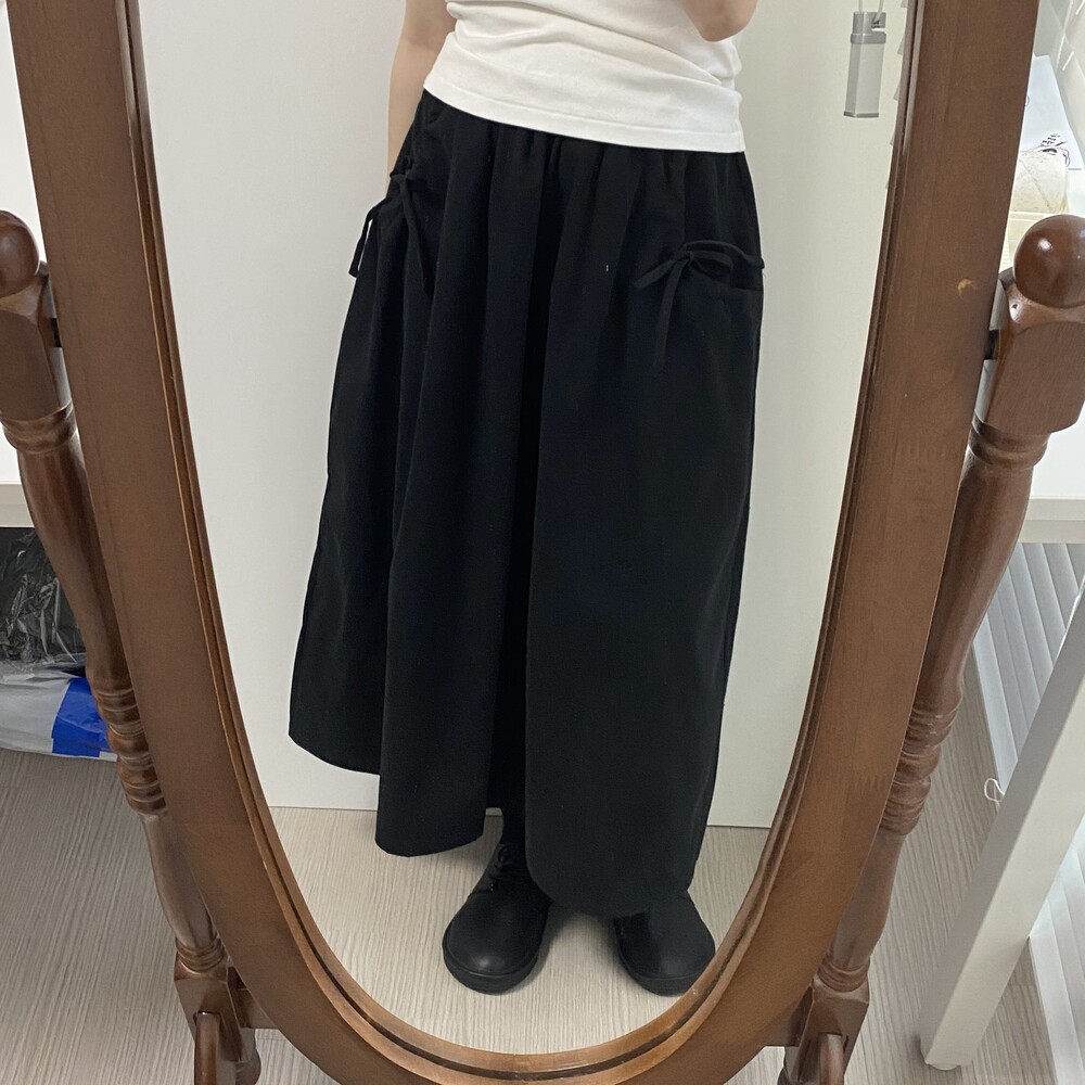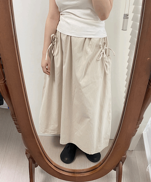 [겨울원단]피치 리본 아일렛 롱스커트(2color)