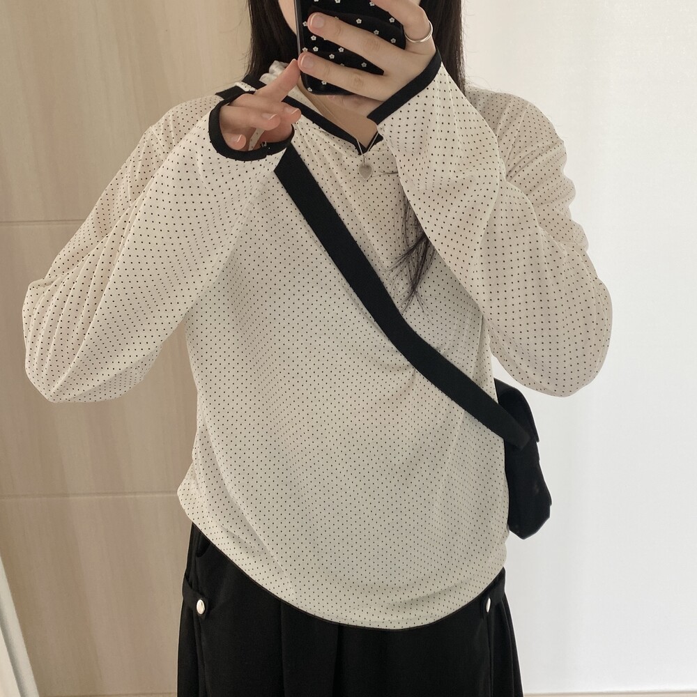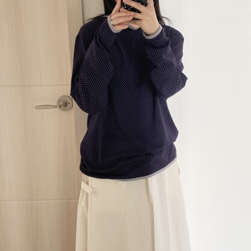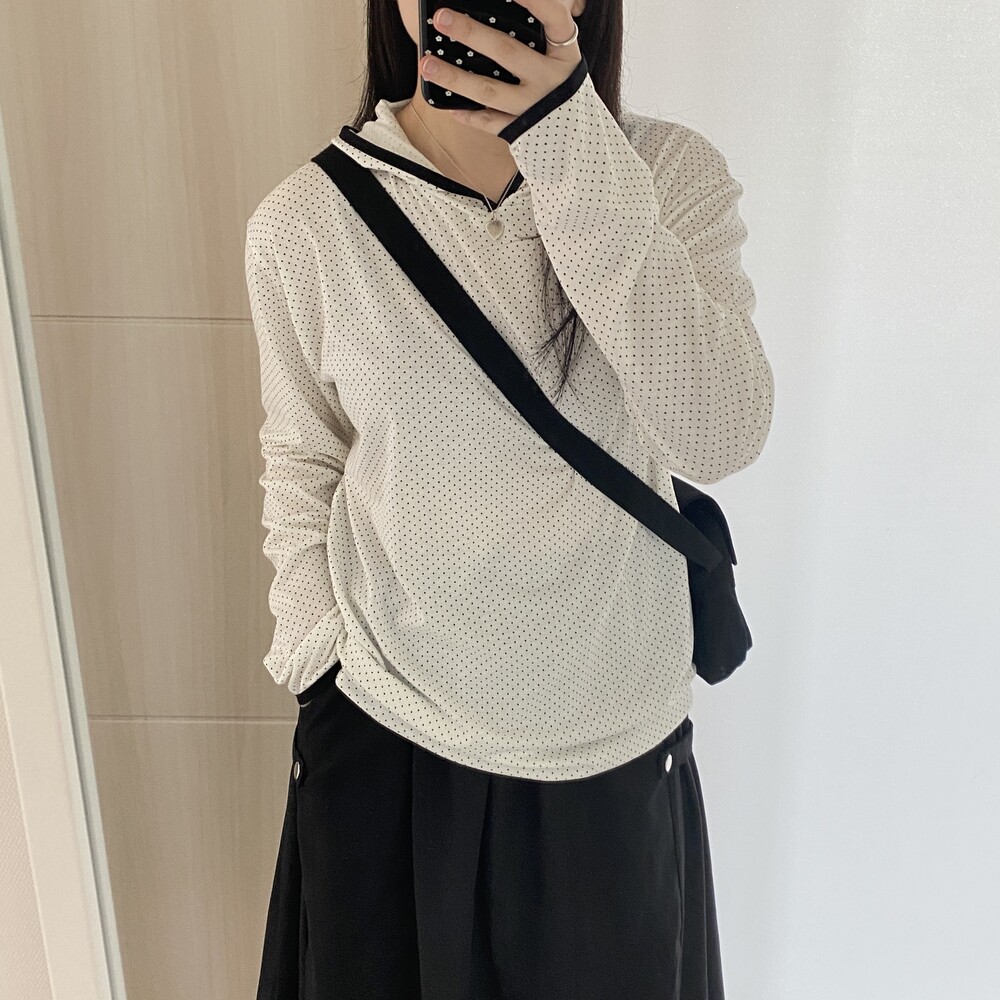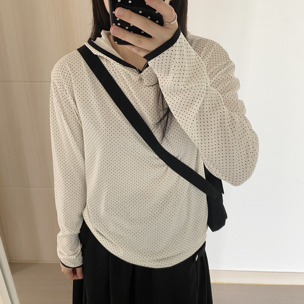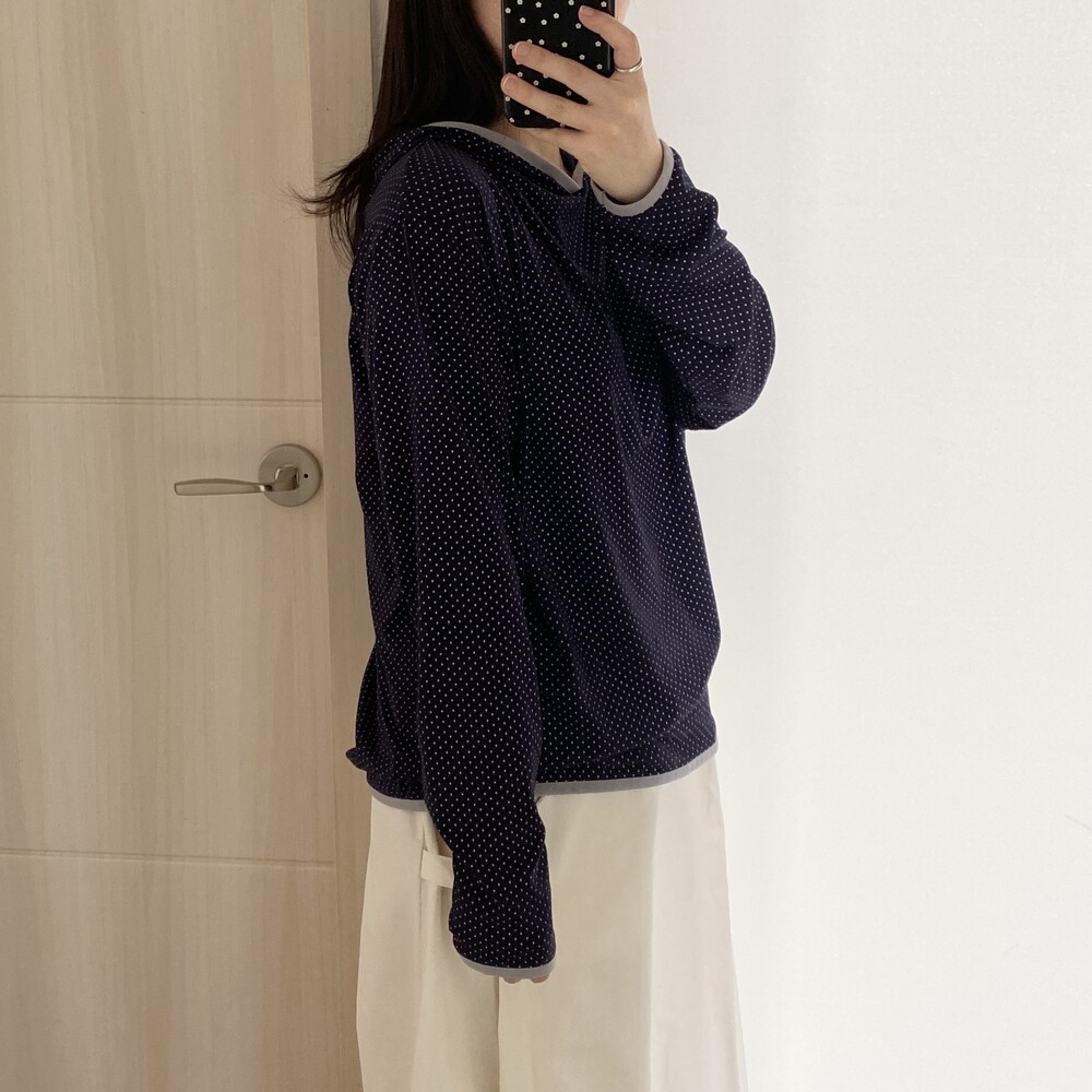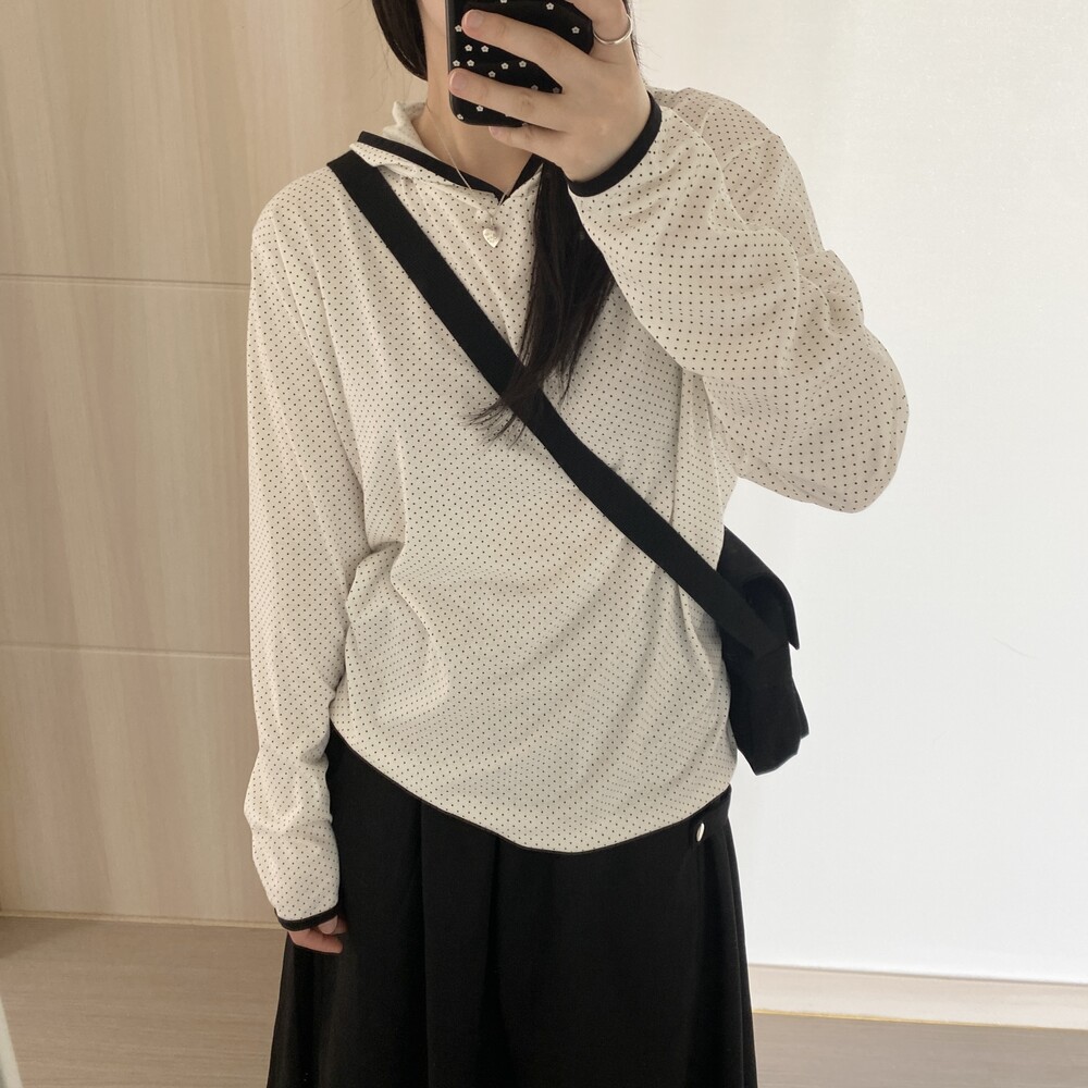 [살안타템]도트 땡땡이 후드 티셔츠(2color)