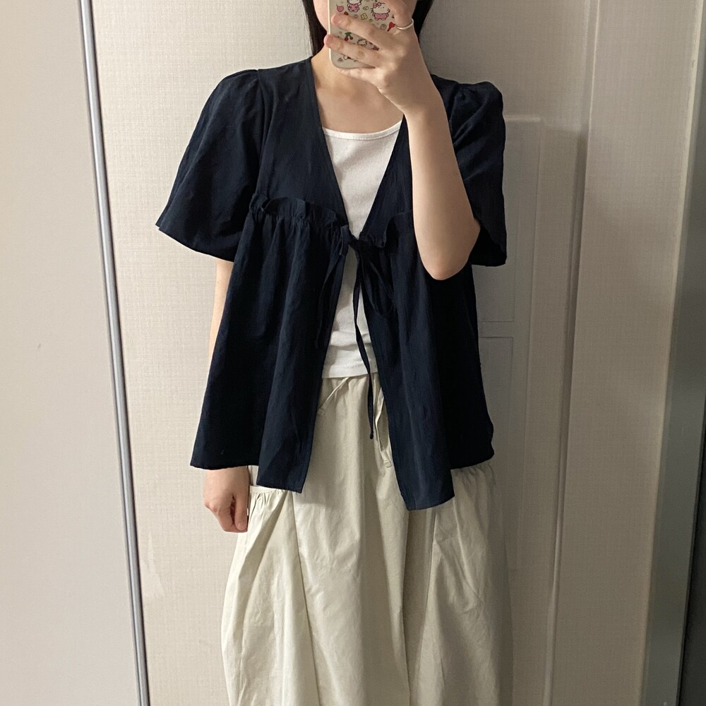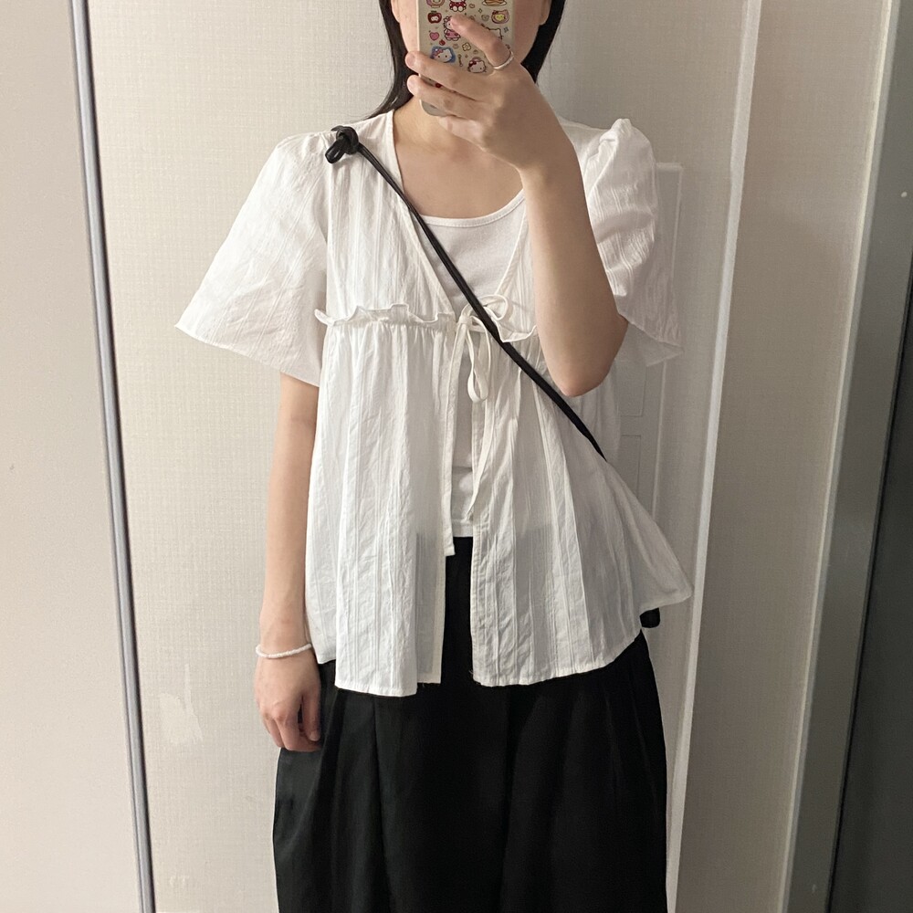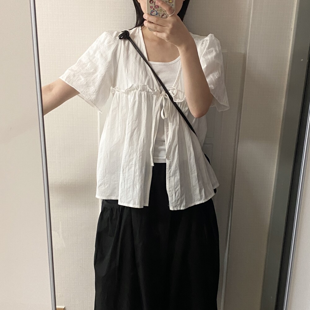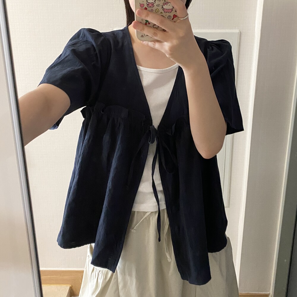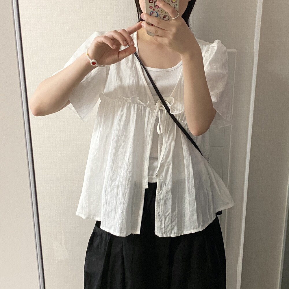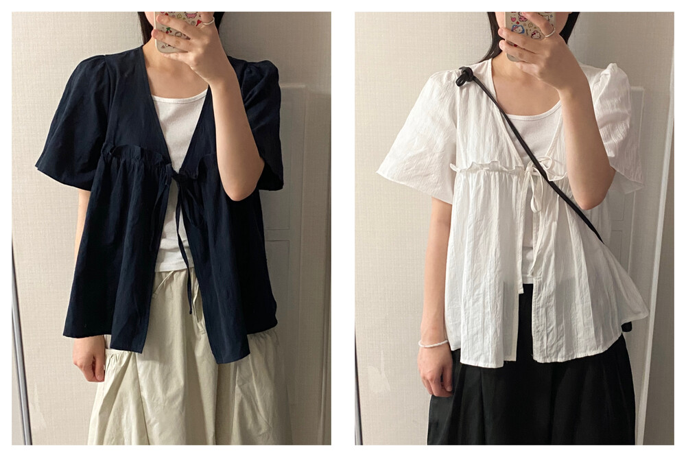 포인트가 되어줄 [리본 프릴 가디건 블라우스]
