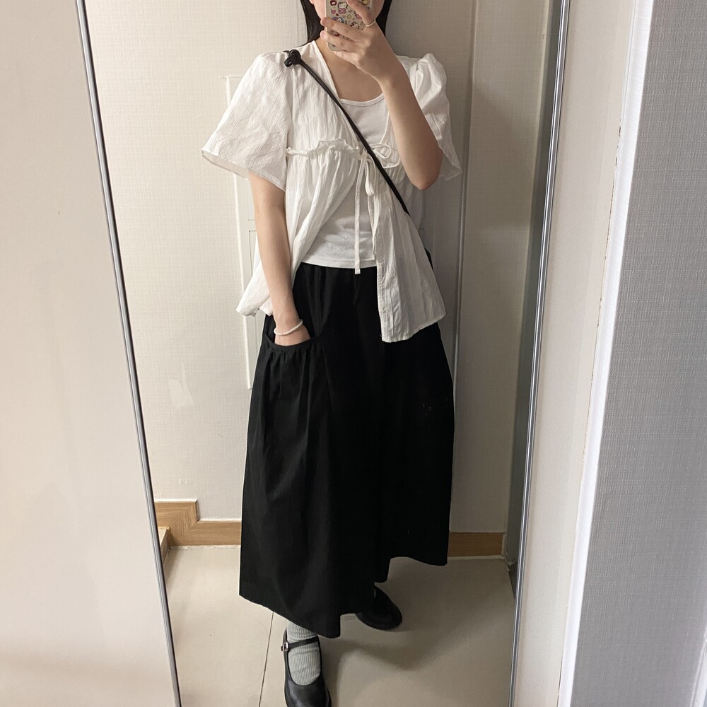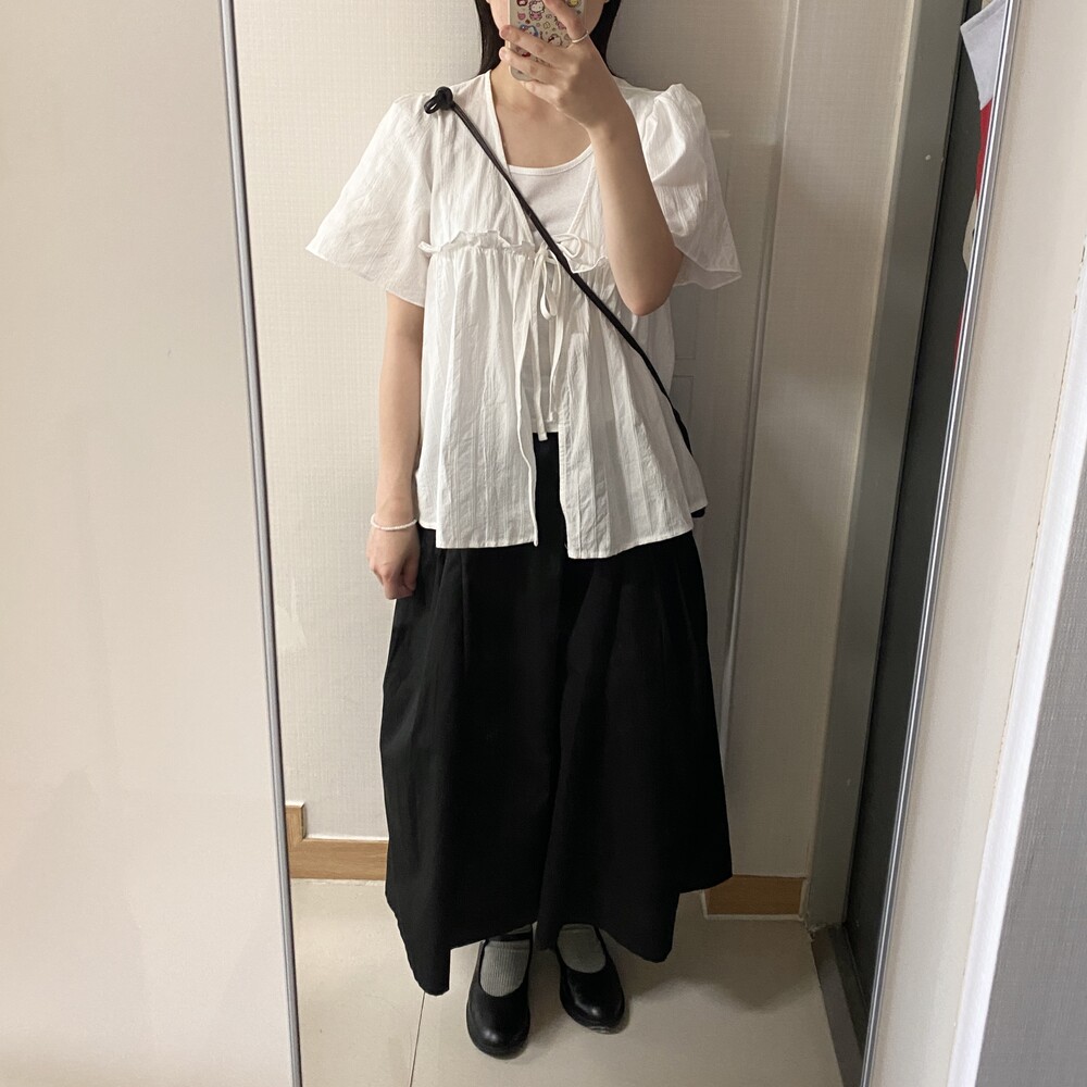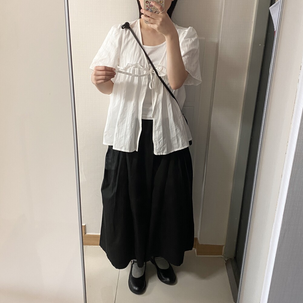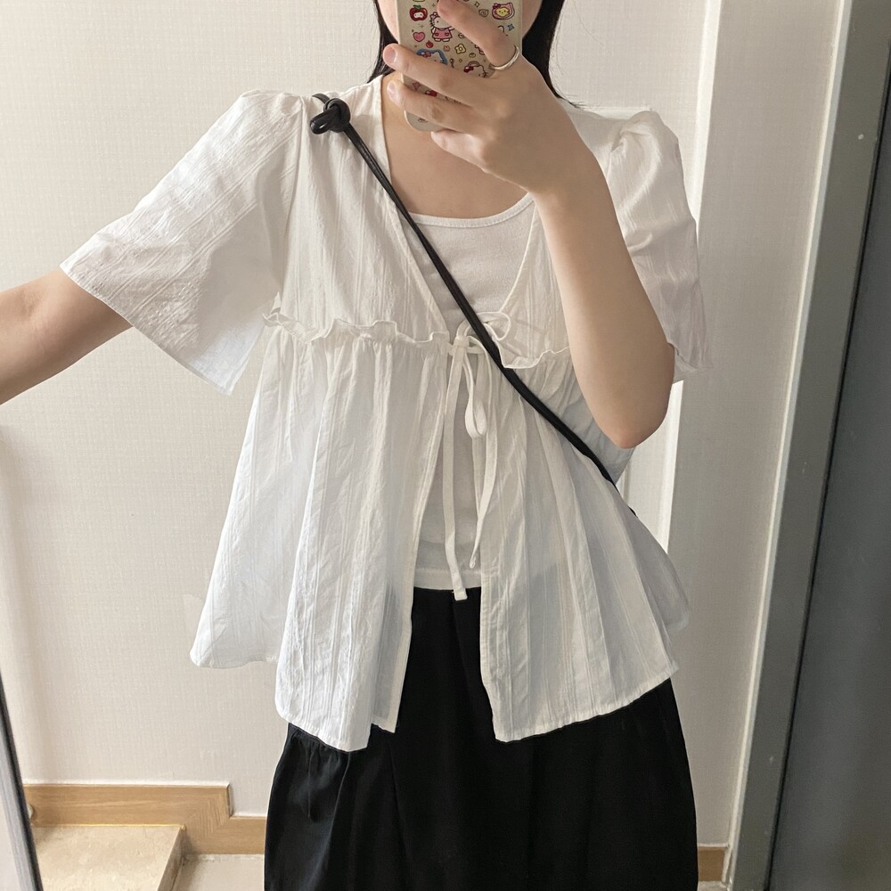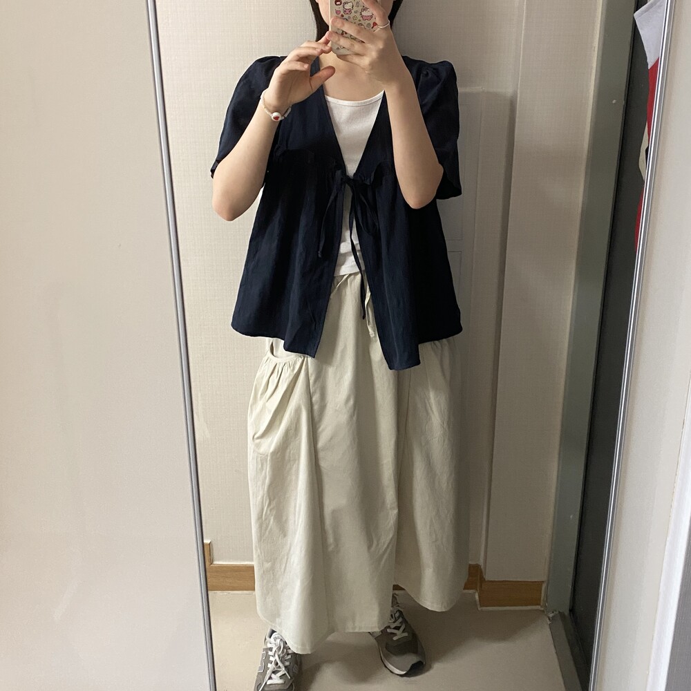포인트가 되어줄 [리본 프릴 가디건 블라우스]