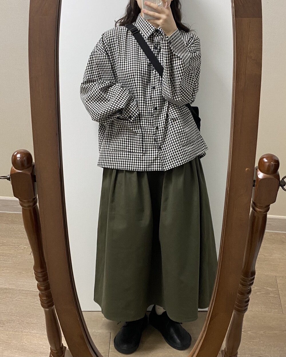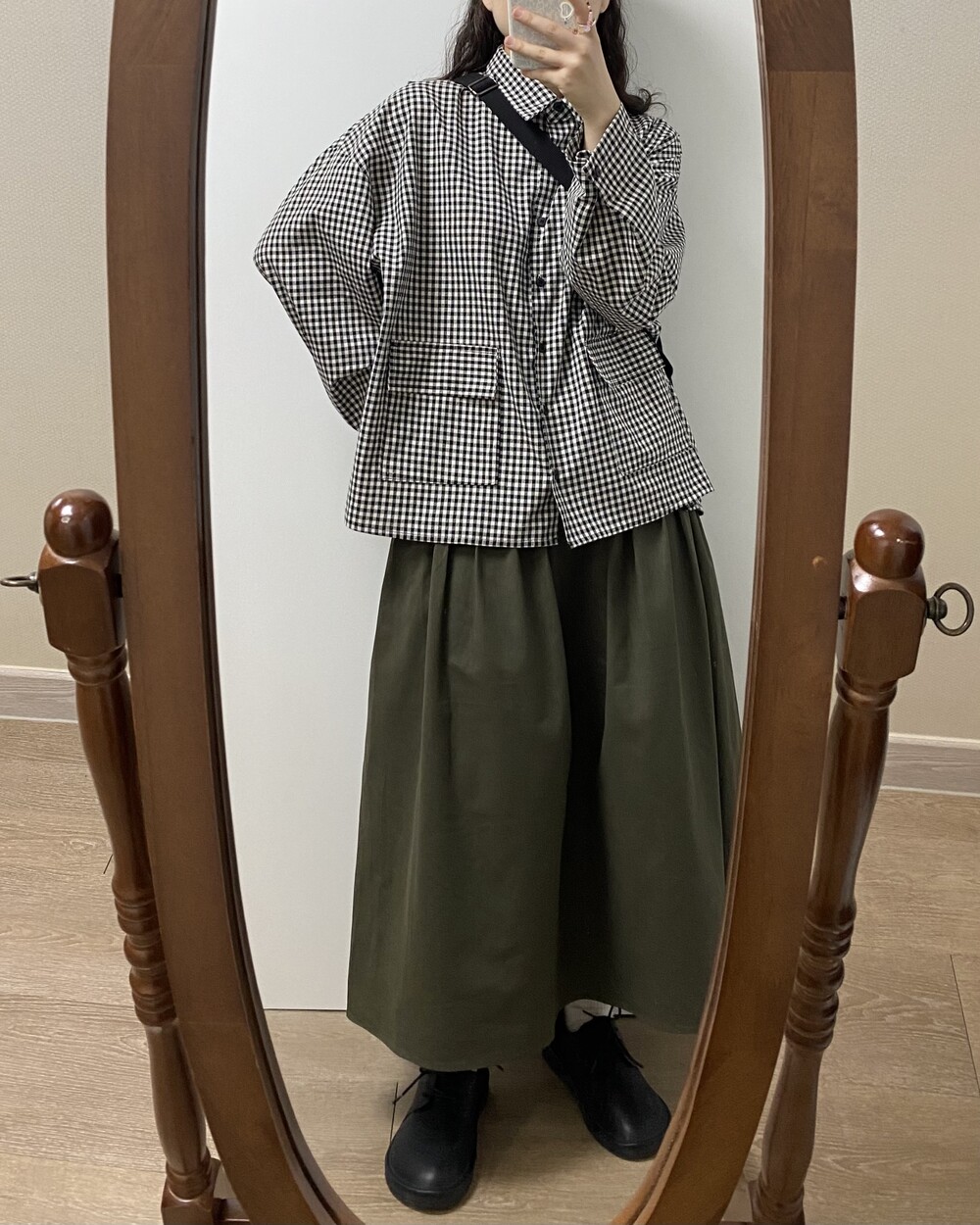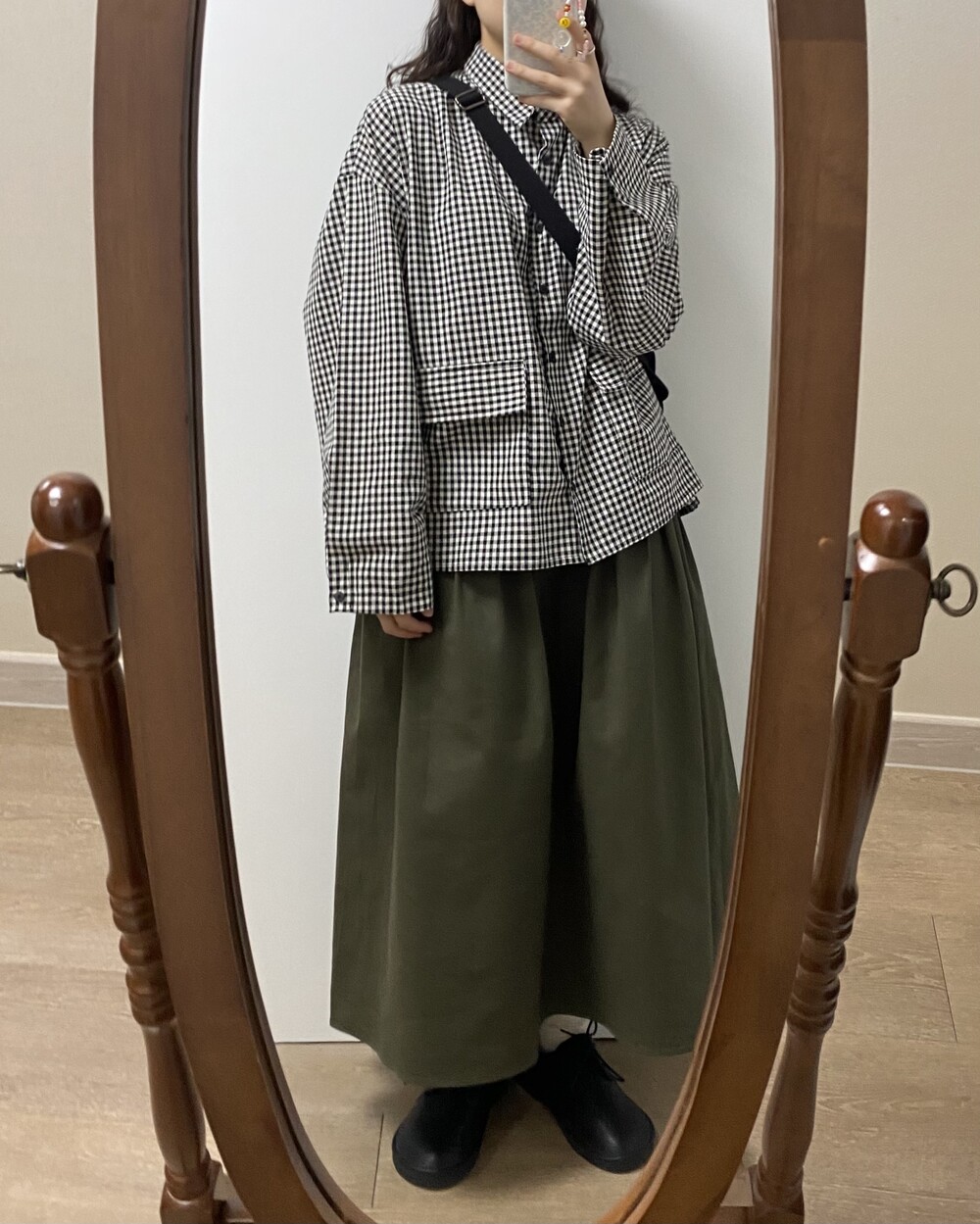 롱 스커트와 뿔테 안경까지 써주면 완벽한 아메카지룩 완성,,♥