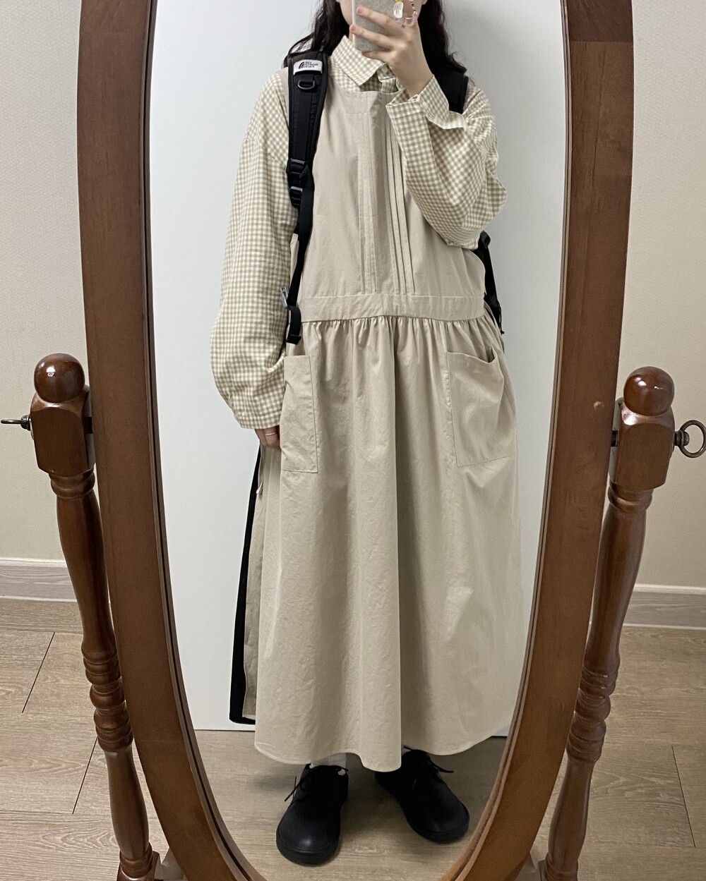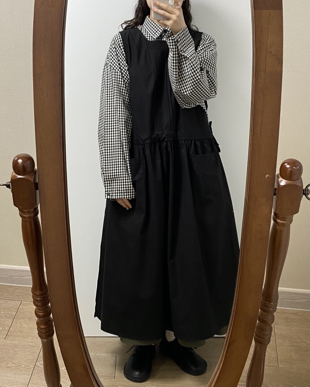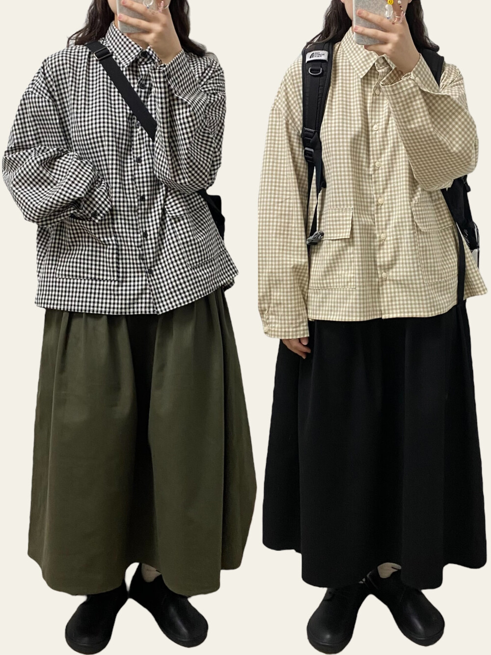 롱 스커트와 뿔테 안경까지 써주면 완벽한 아메카지룩 완성,,♥