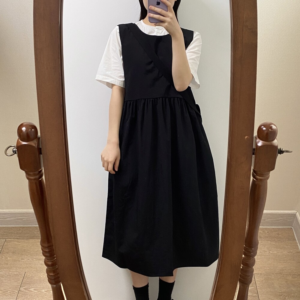 리본 나일론 롱원피스(3color)