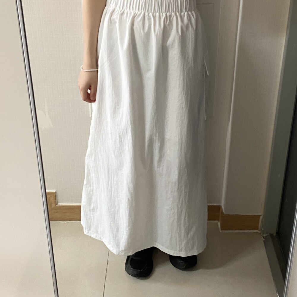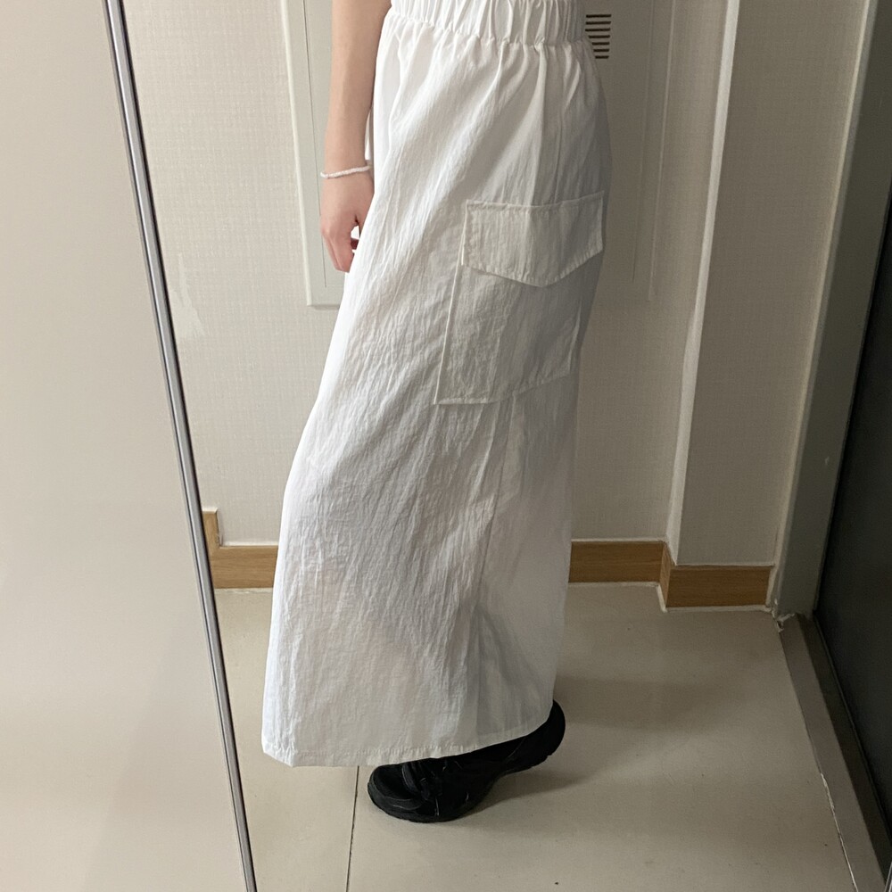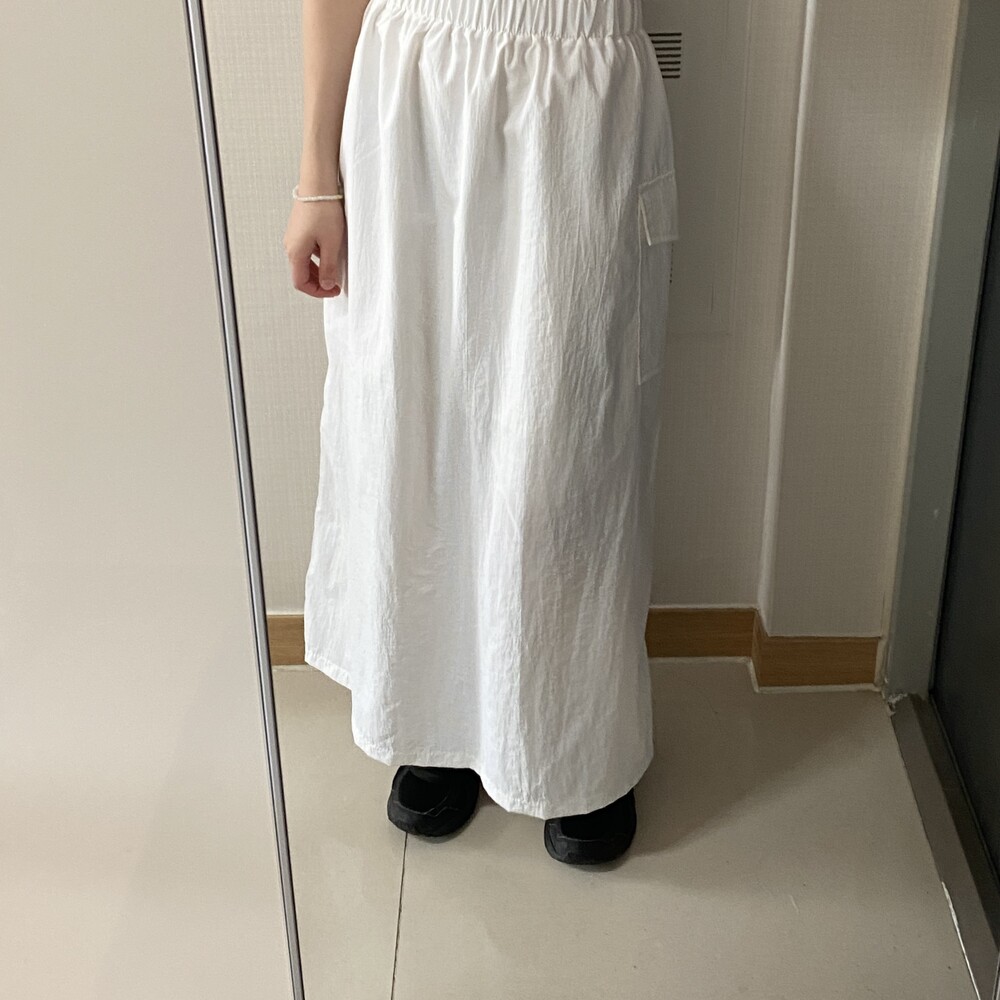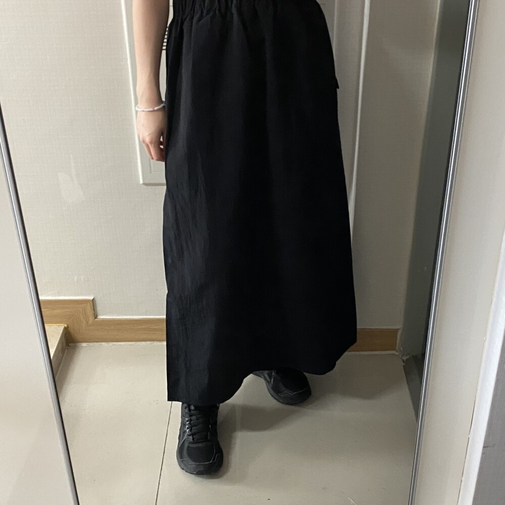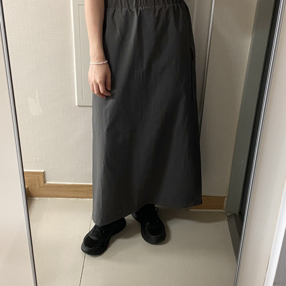 원포켓 나일론 롱스커트(3color)