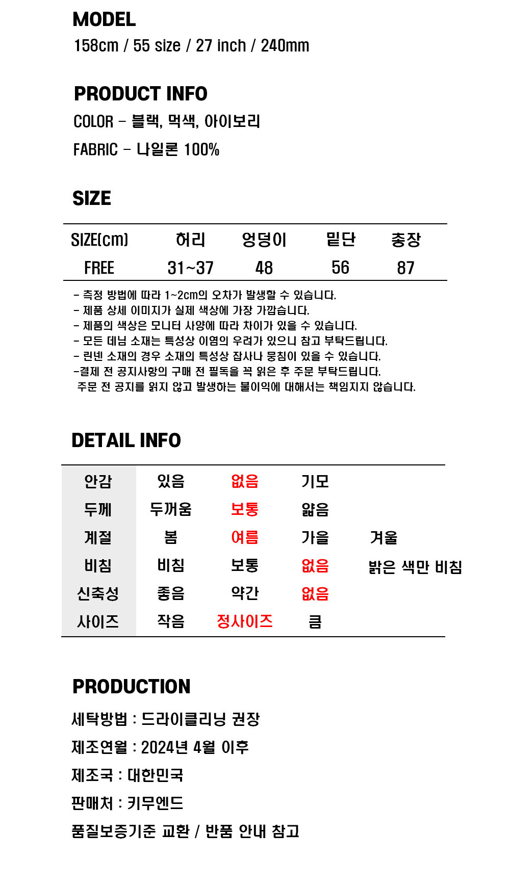 블랙 / 먹색 / 아이보리