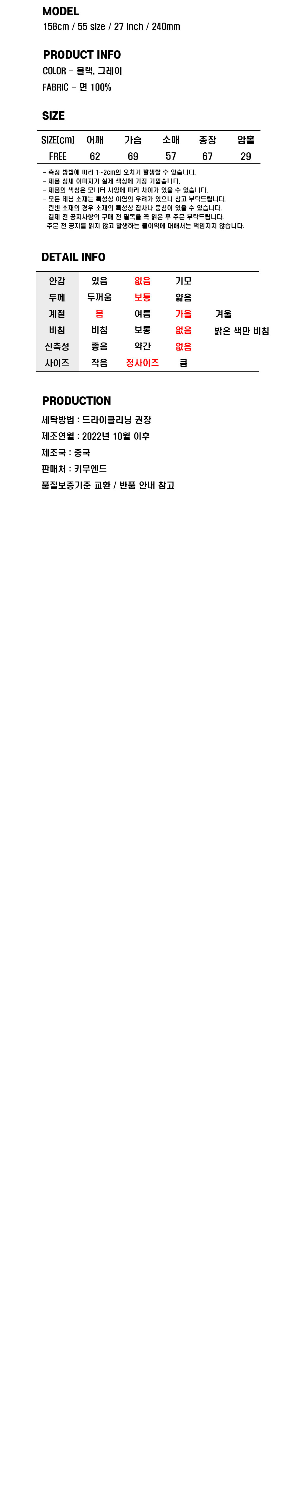 블랙 색상 - 이너후드 차콜 컬러