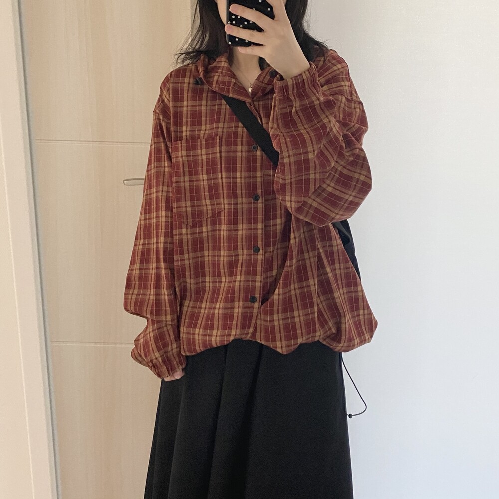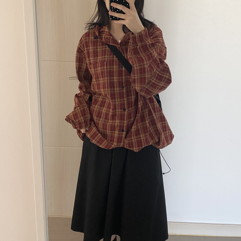 [unisex]후르츠 체크 후드 셔츠(2color)