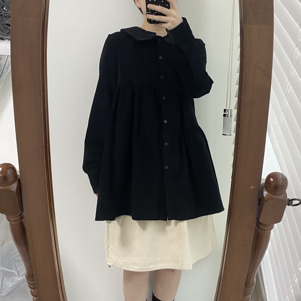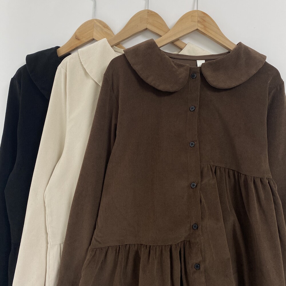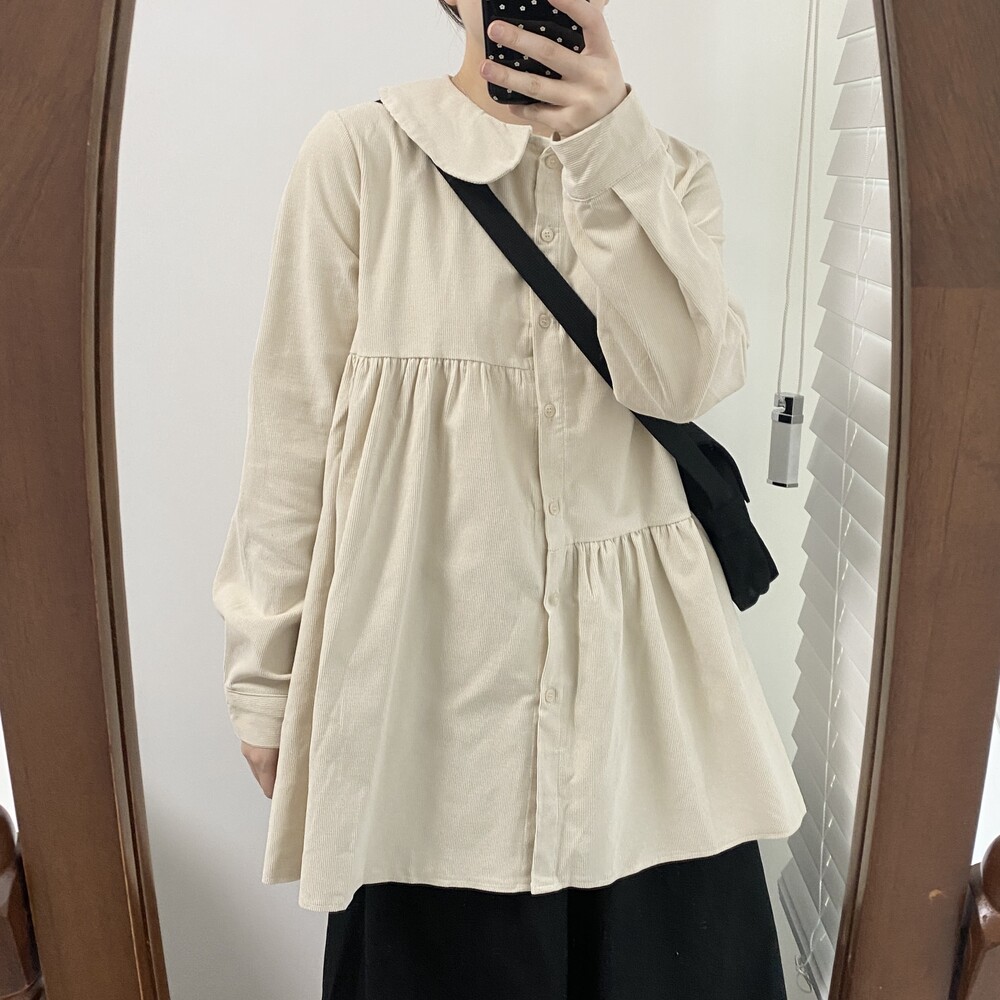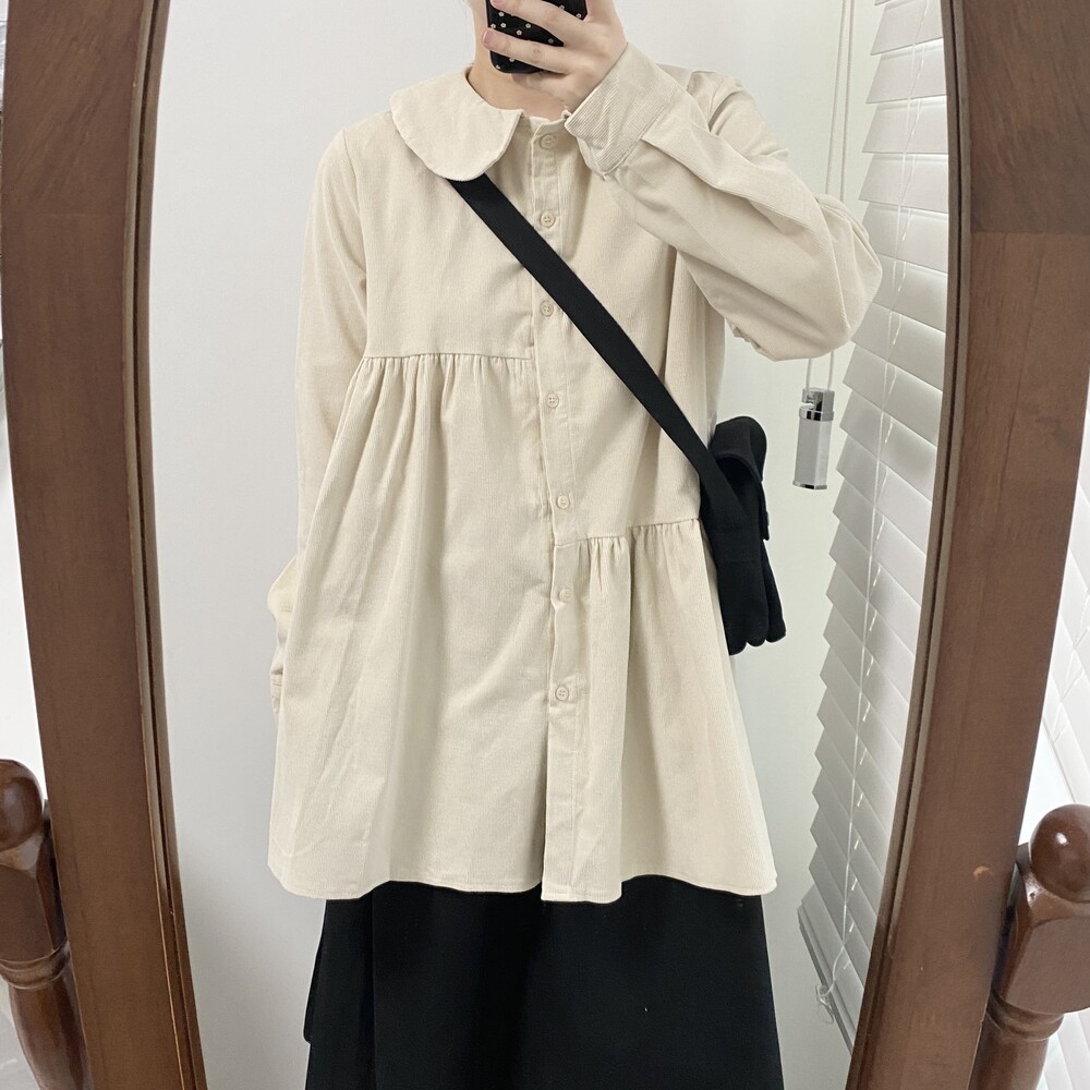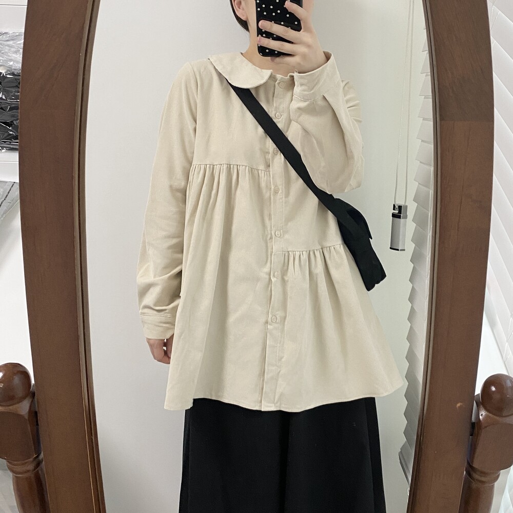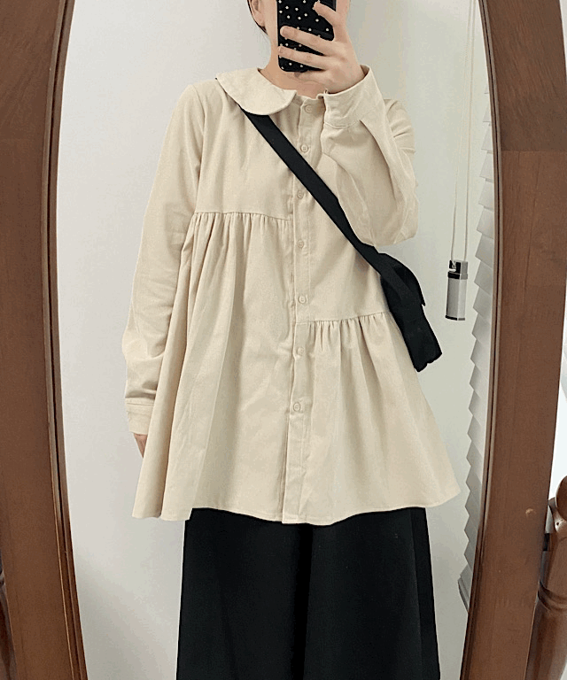 코듀로이 라운드 카라 언발 셔츠(3color)