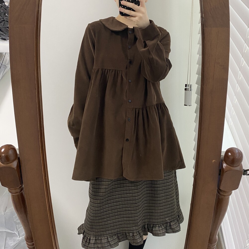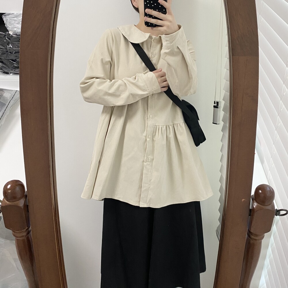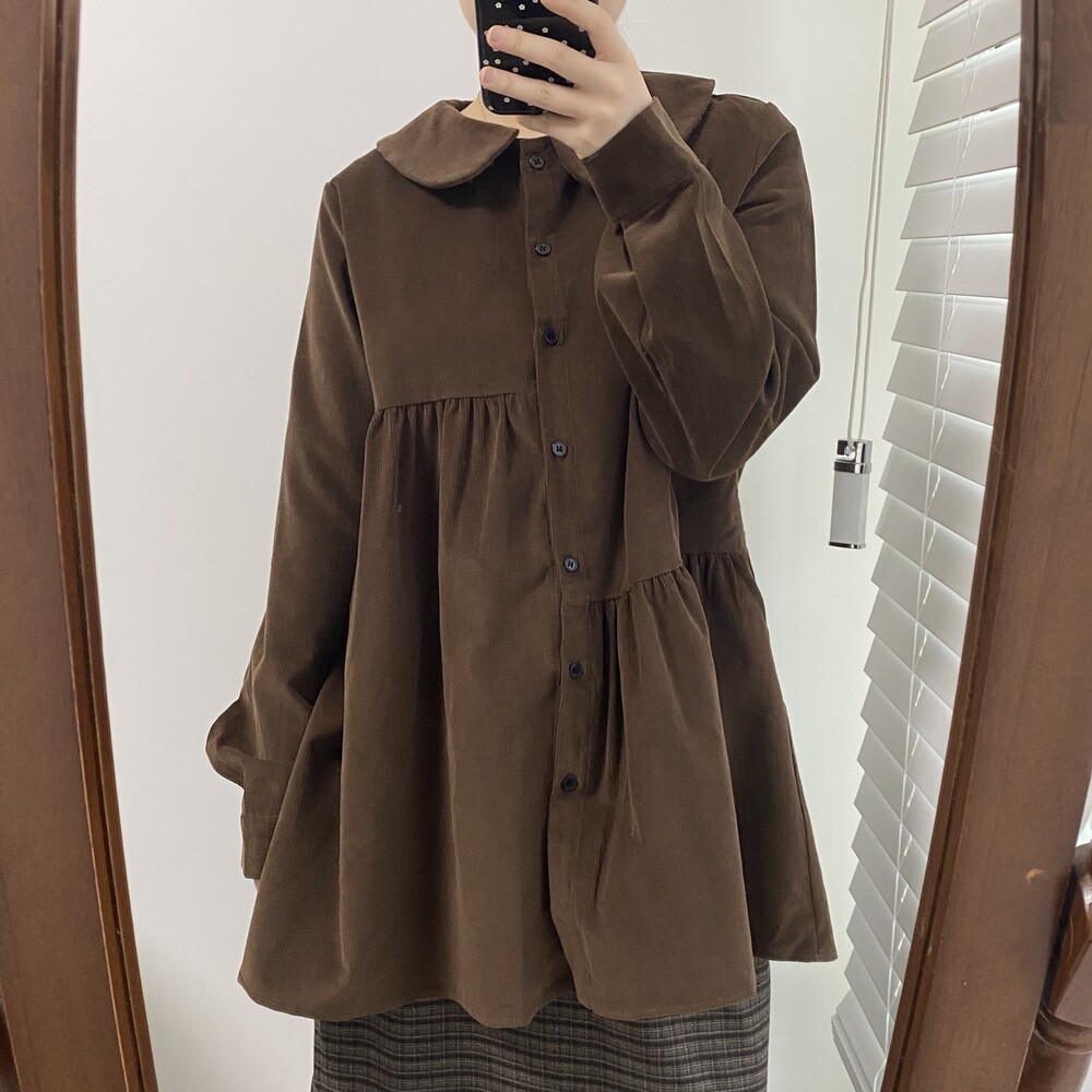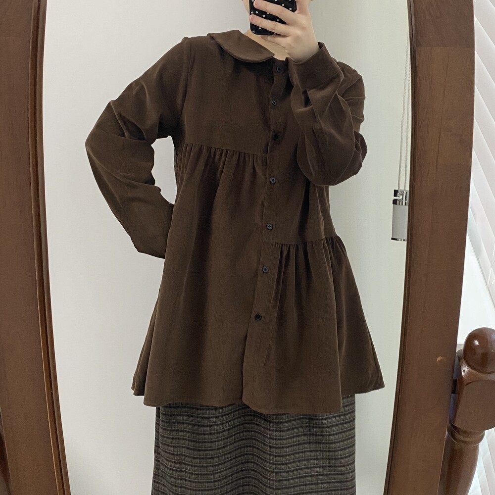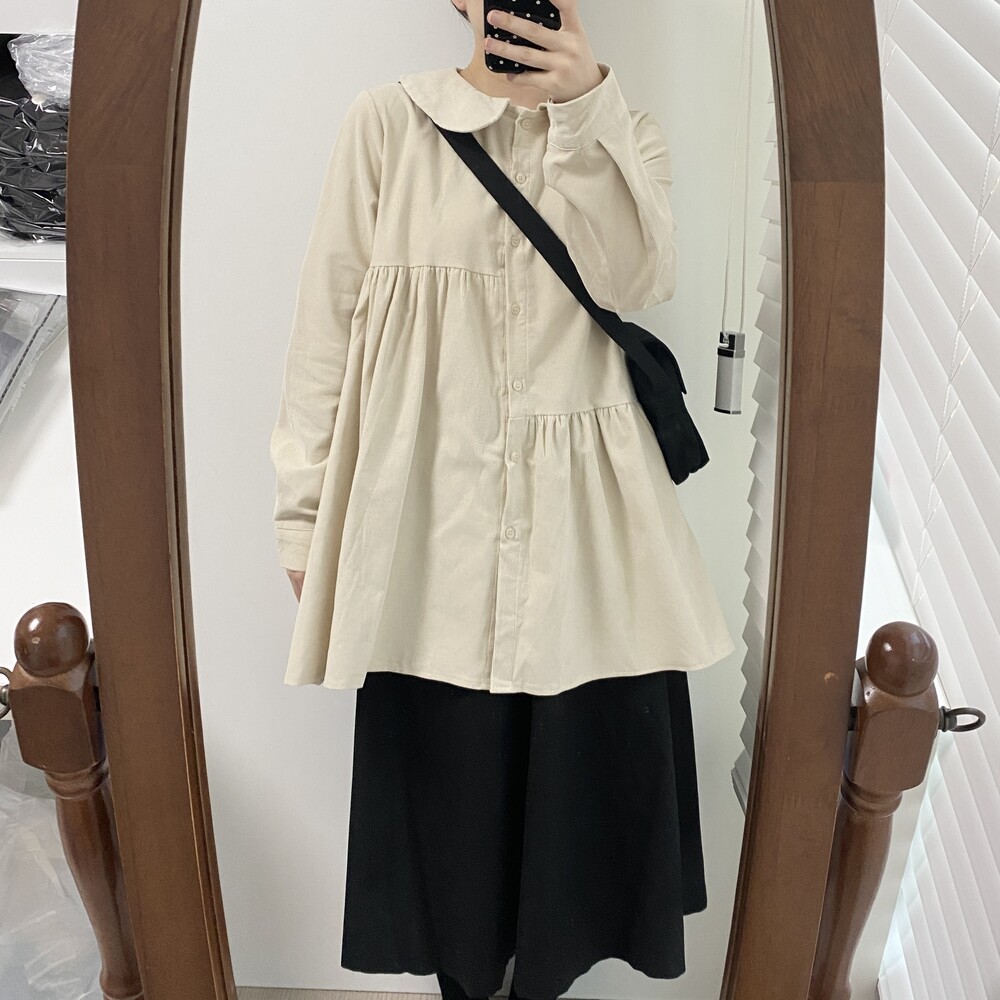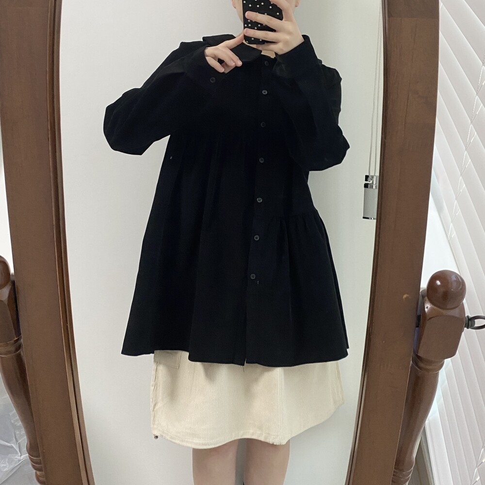 코듀로이 라운드 카라 언발 셔츠(3color)