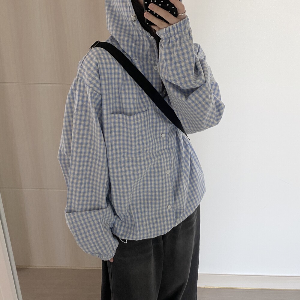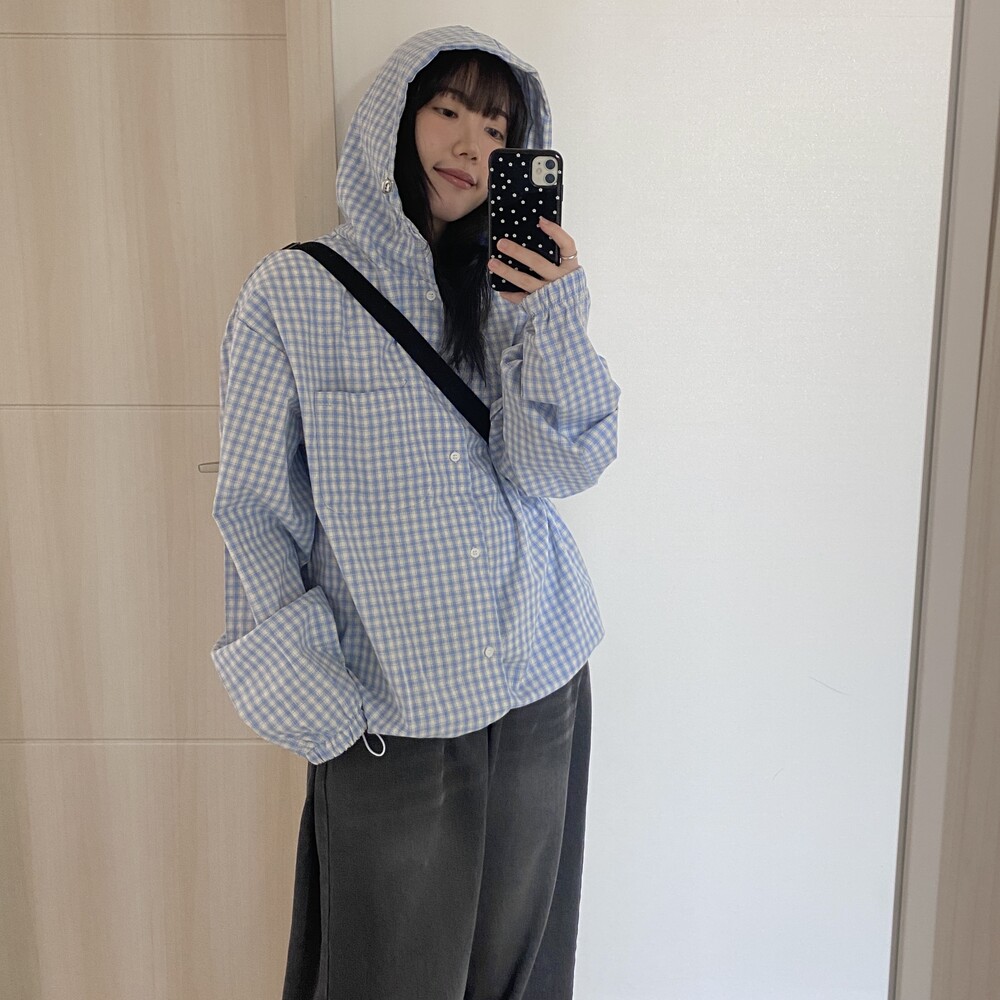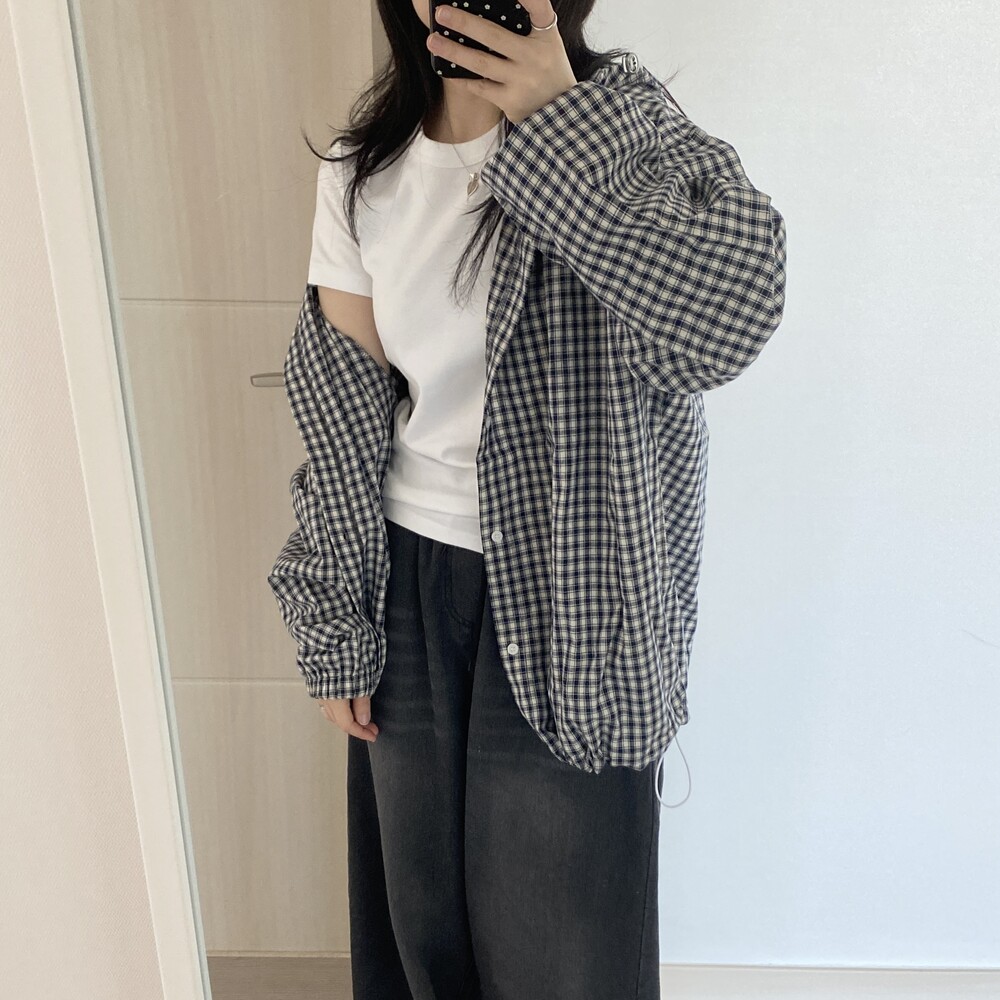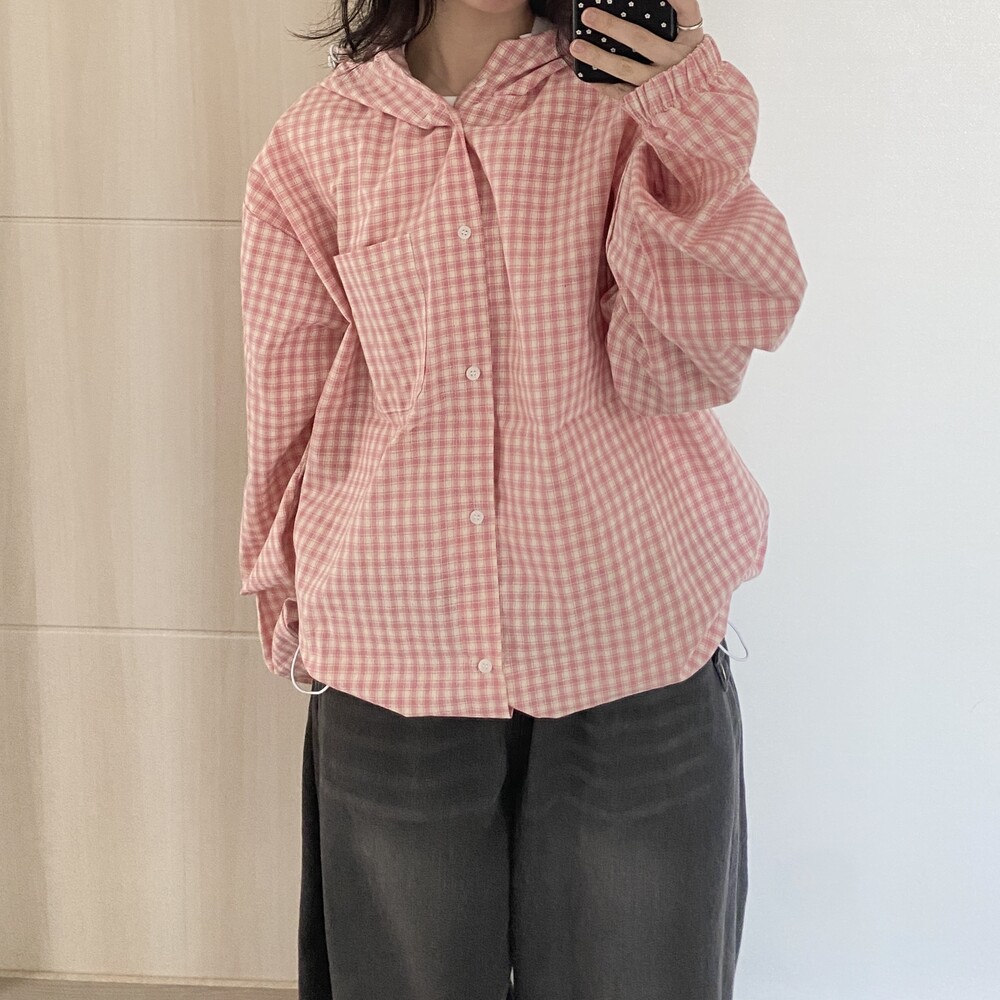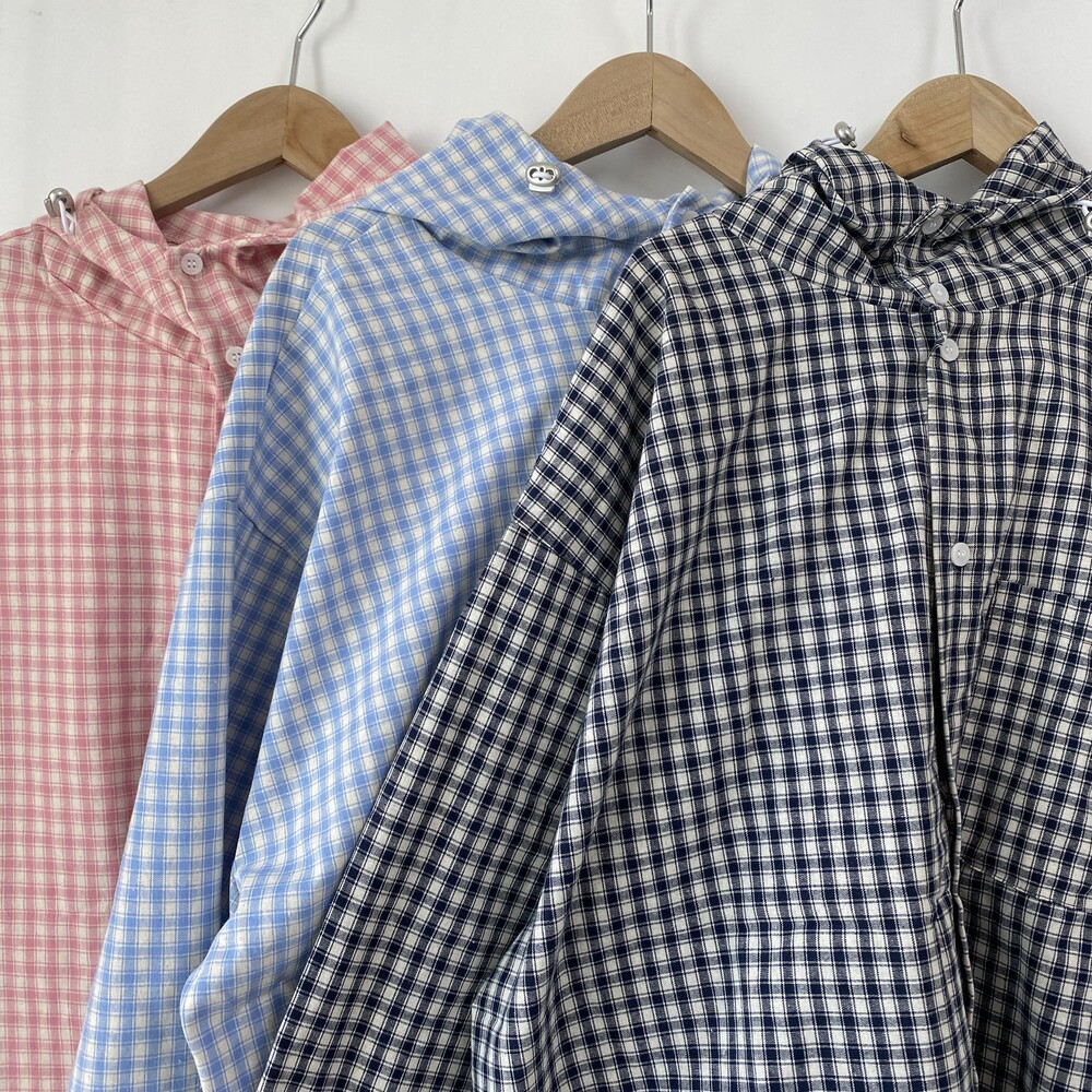[살안타템]체크 스트링 후드 셔츠(3color)