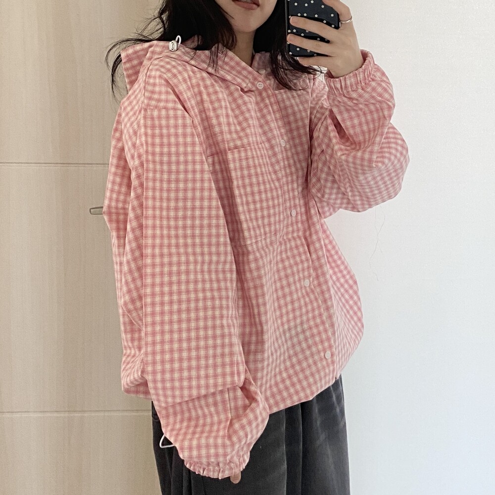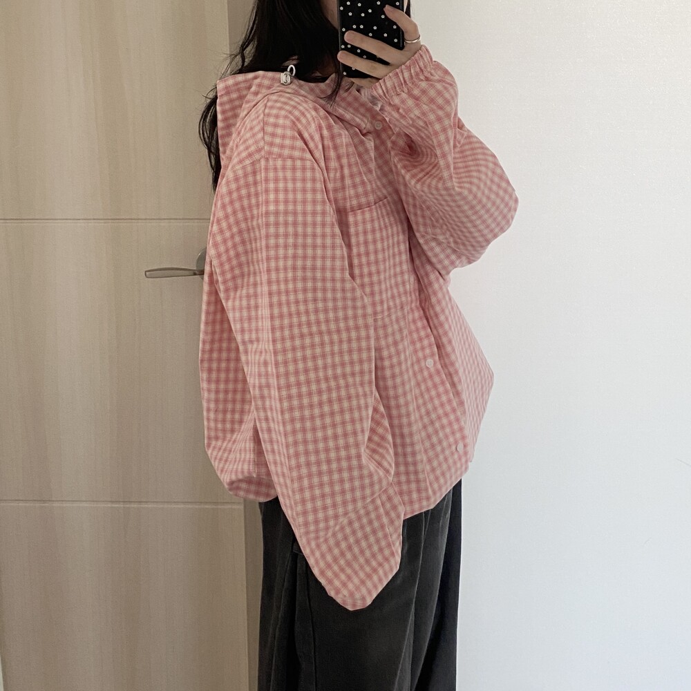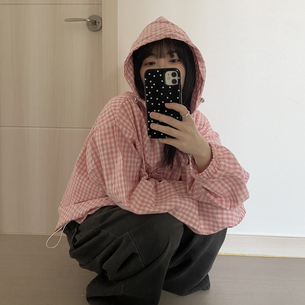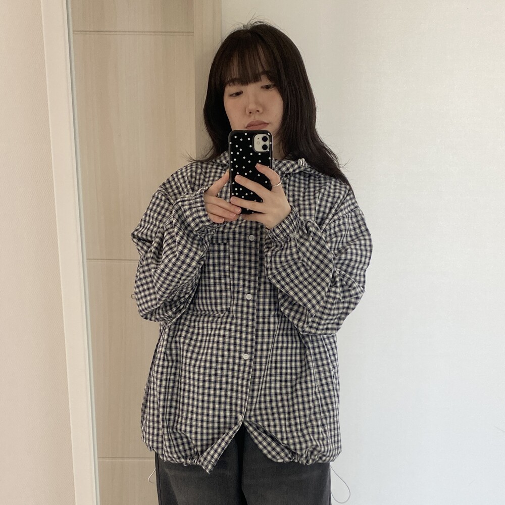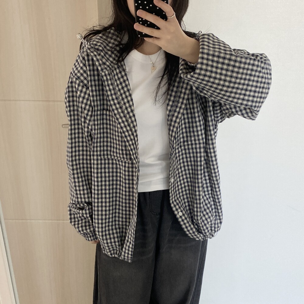[살안타템]체크 스트링 후드 셔츠(3color)