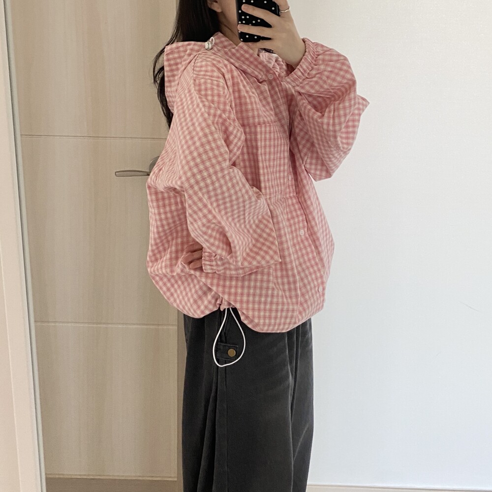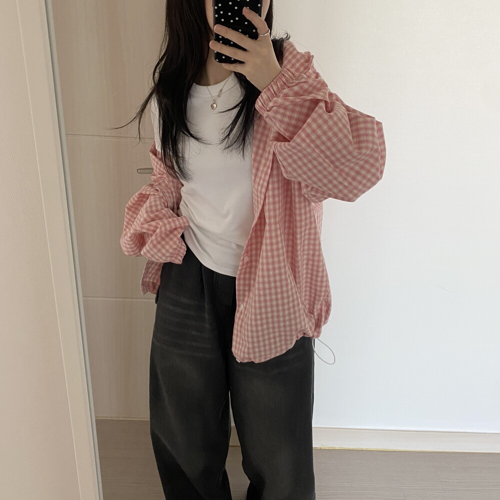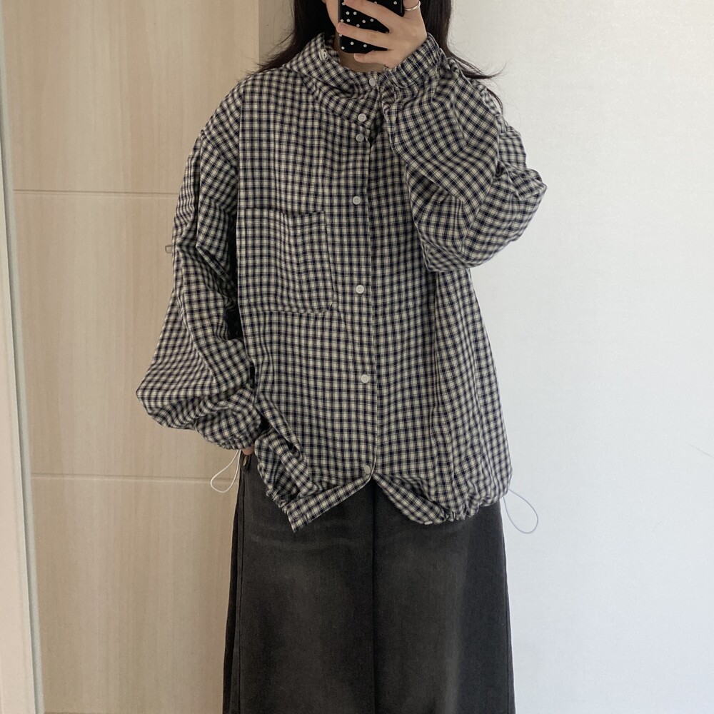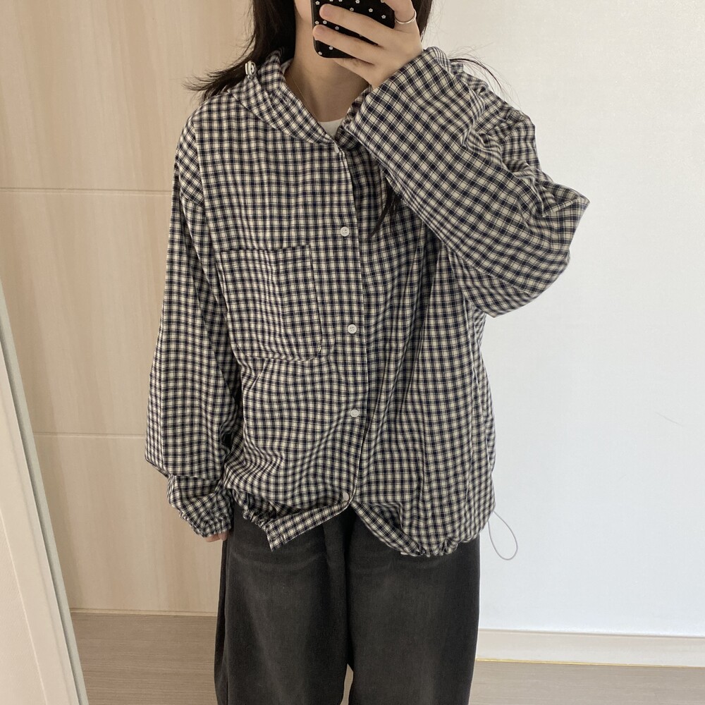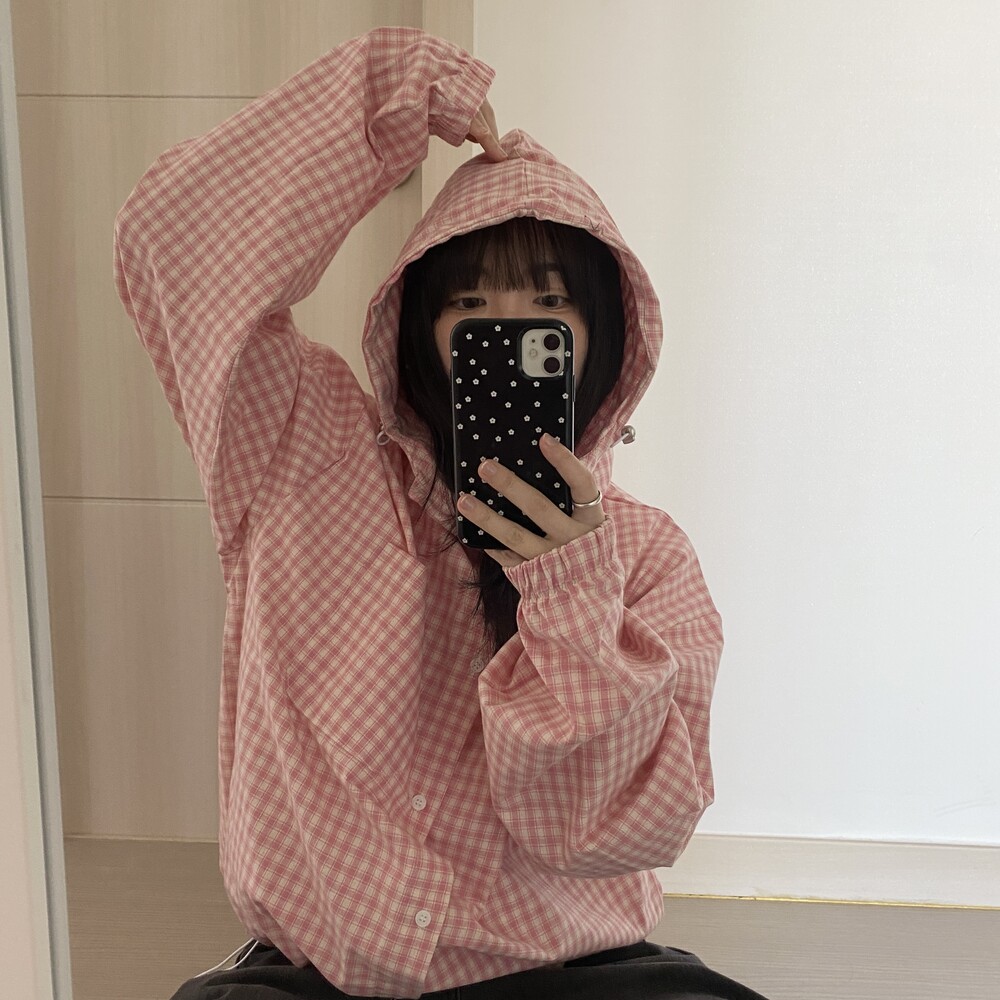 [살안타템]체크 스트링 후드 셔츠(3color)