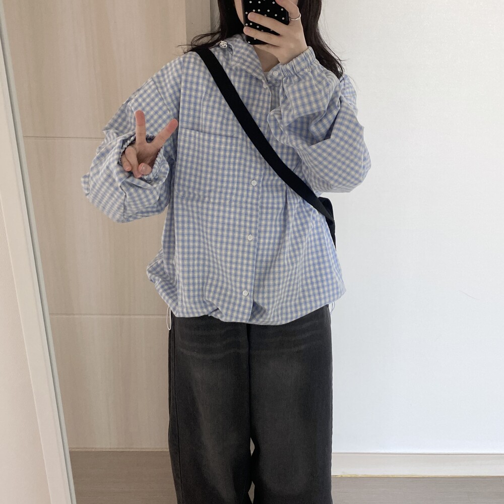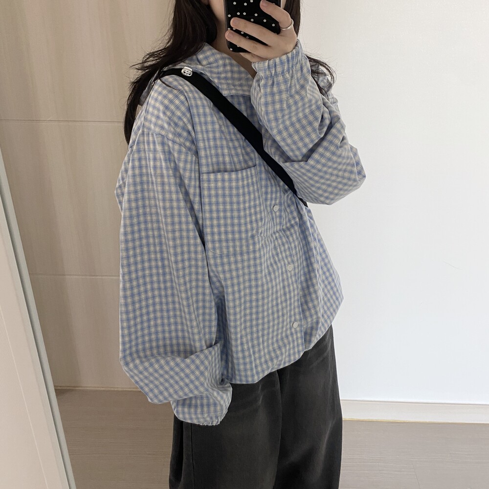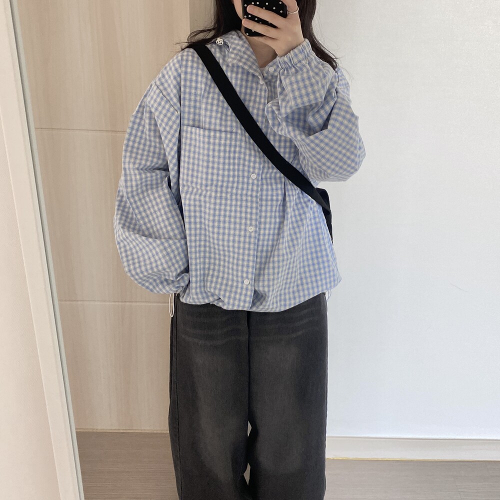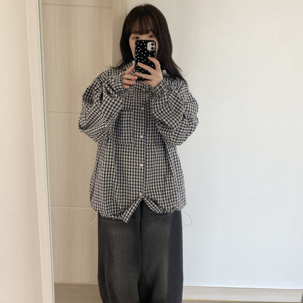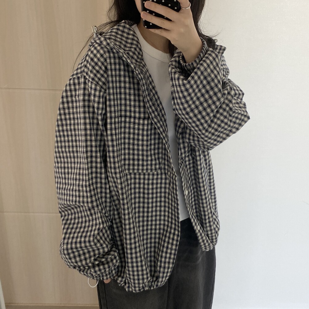 [살안타템]체크 스트링 후드 셔츠(3color)