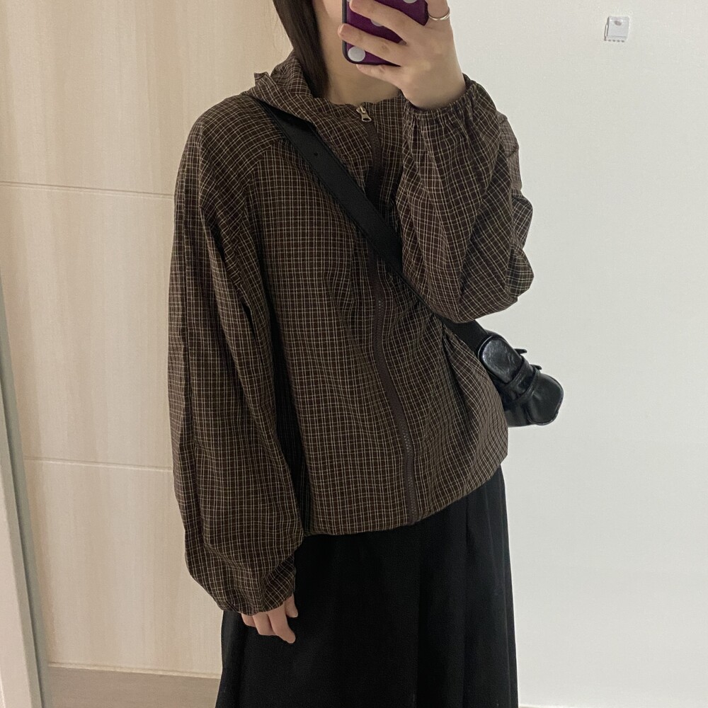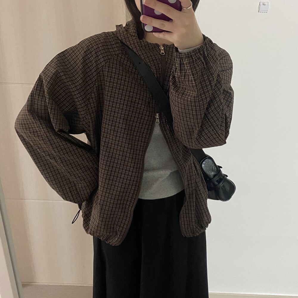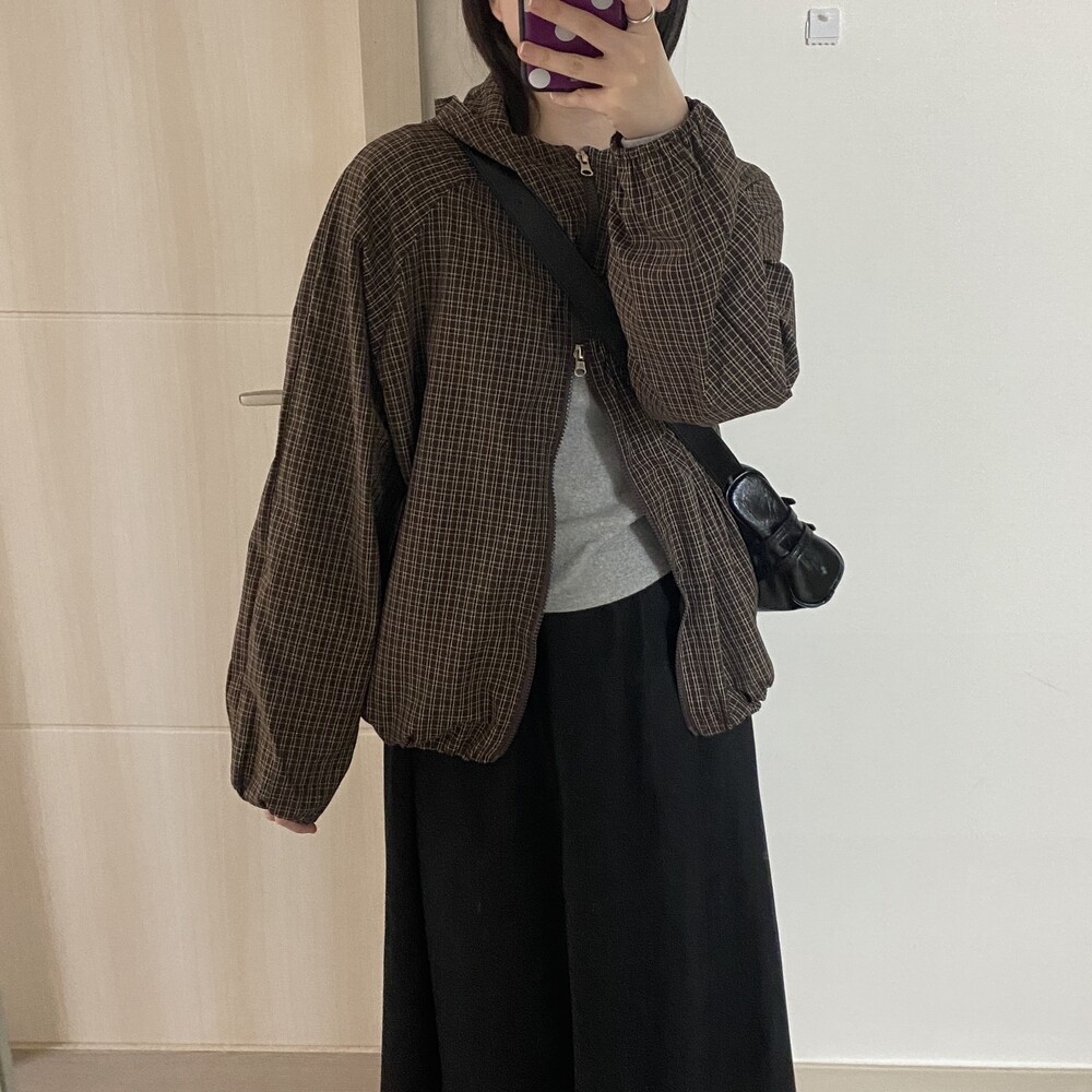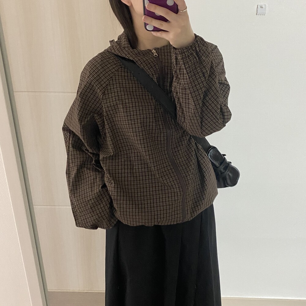 몽블랑 체크 후드 바람막이(2color)