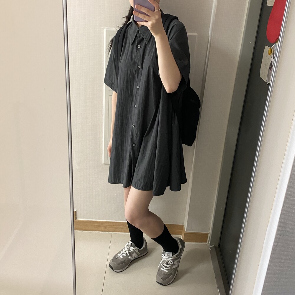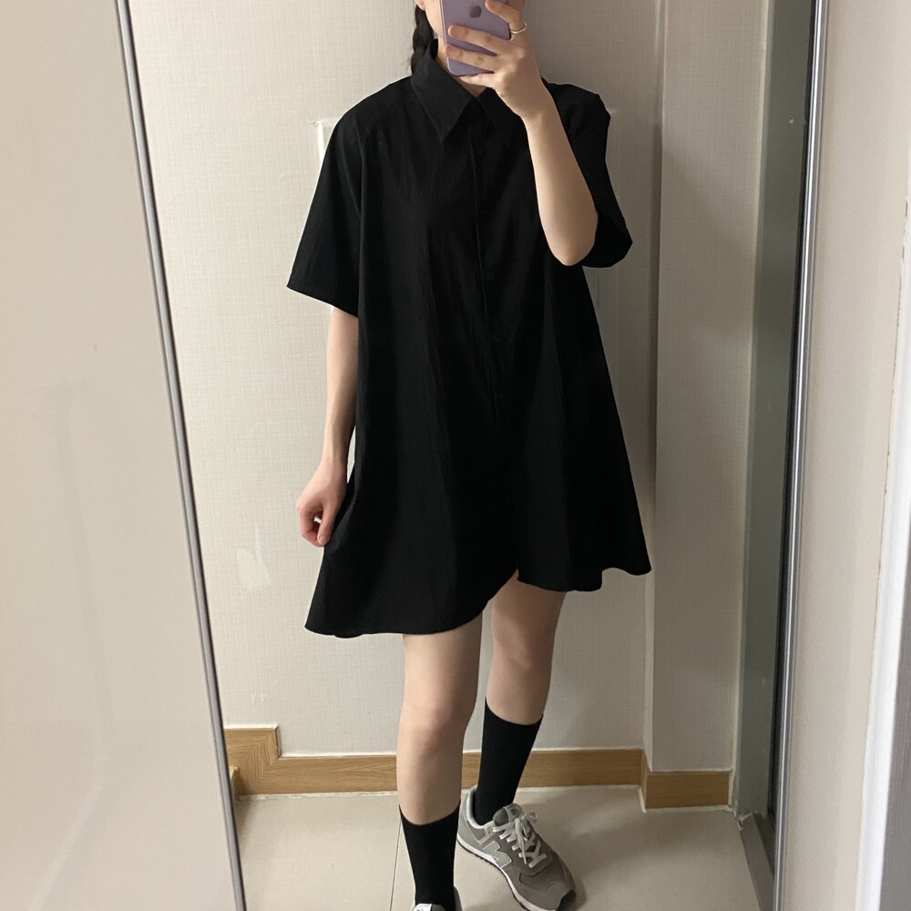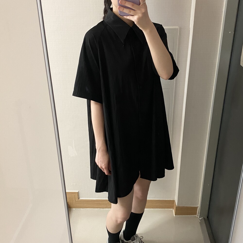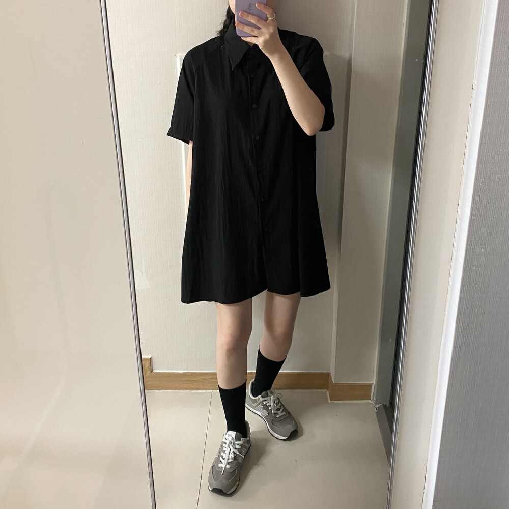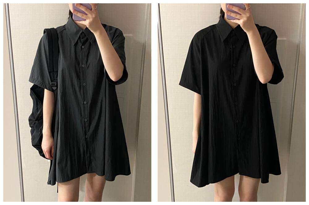 미니 기장감의 러블리한 플레어 셔츠 원피스로