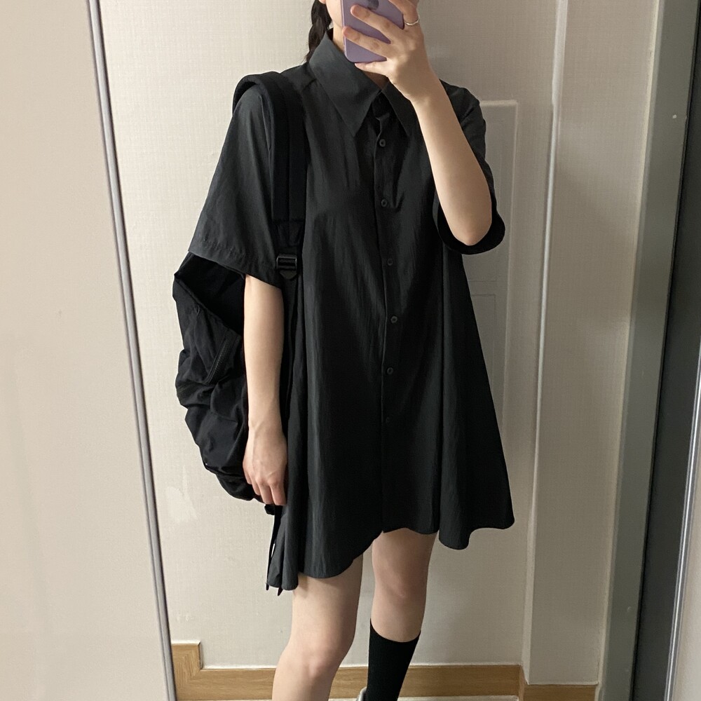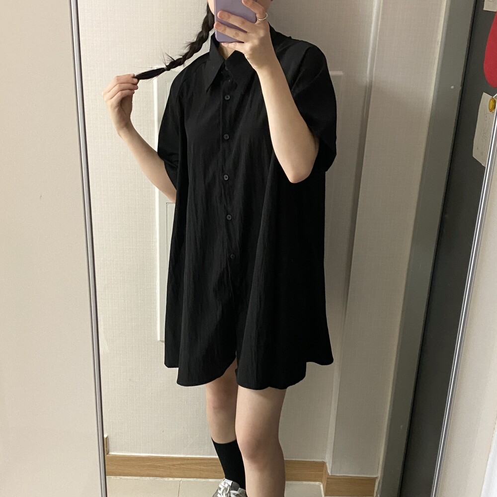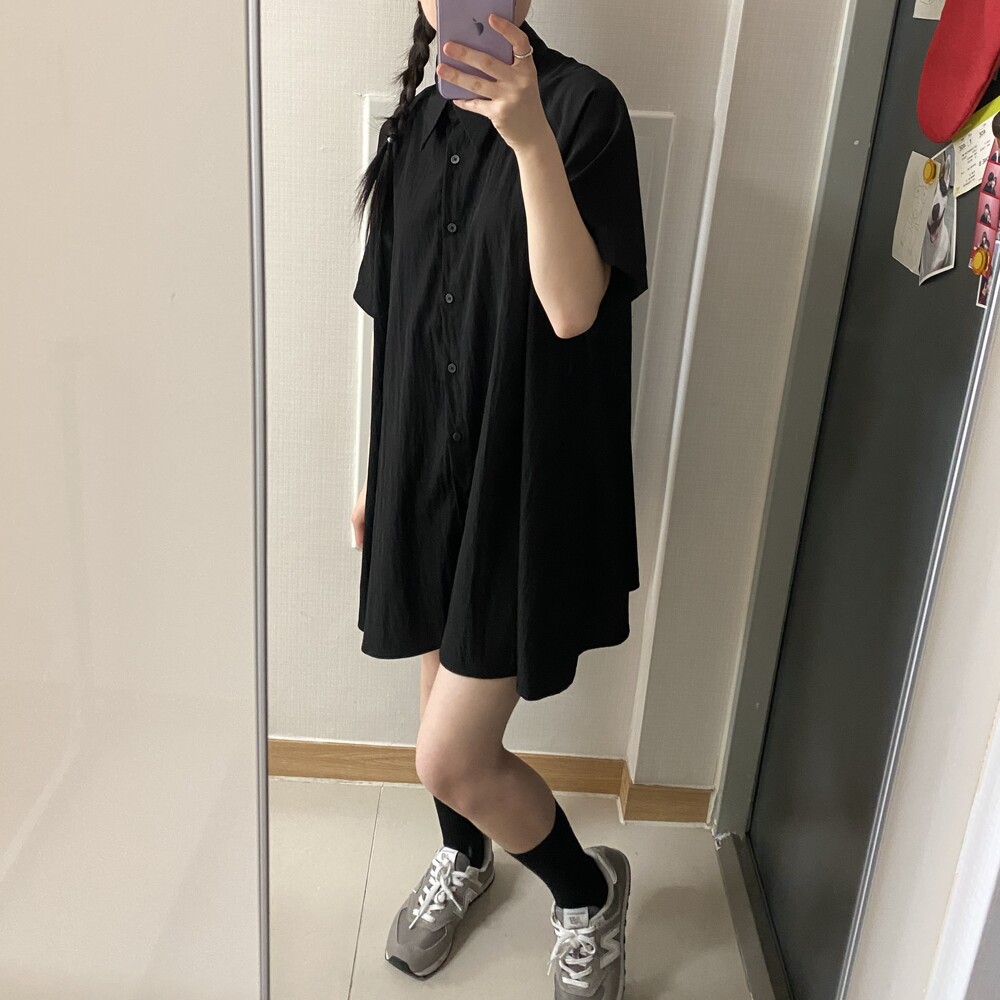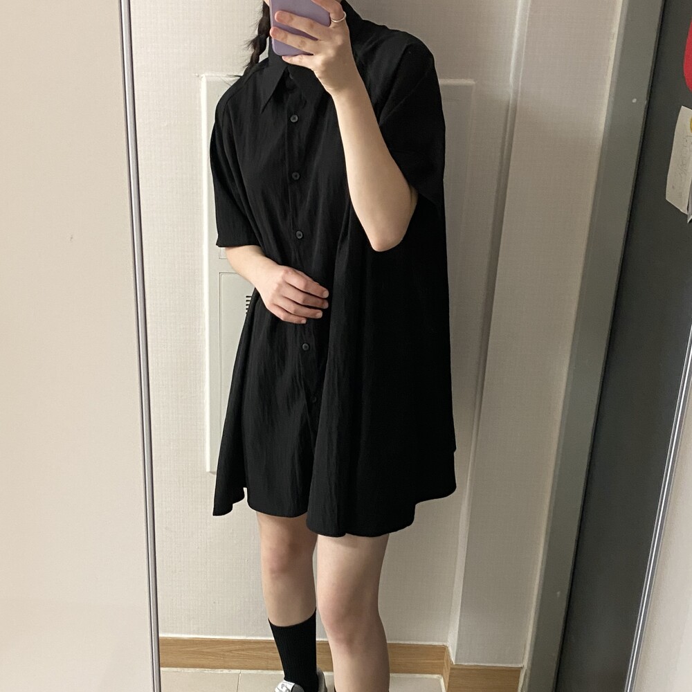 미니 기장감의 러블리한 플레어 셔츠 원피스로
