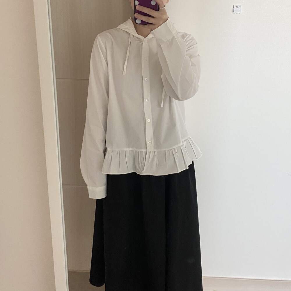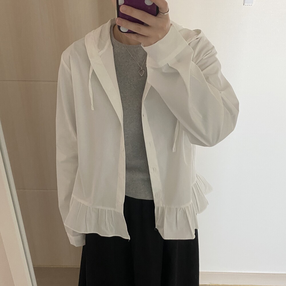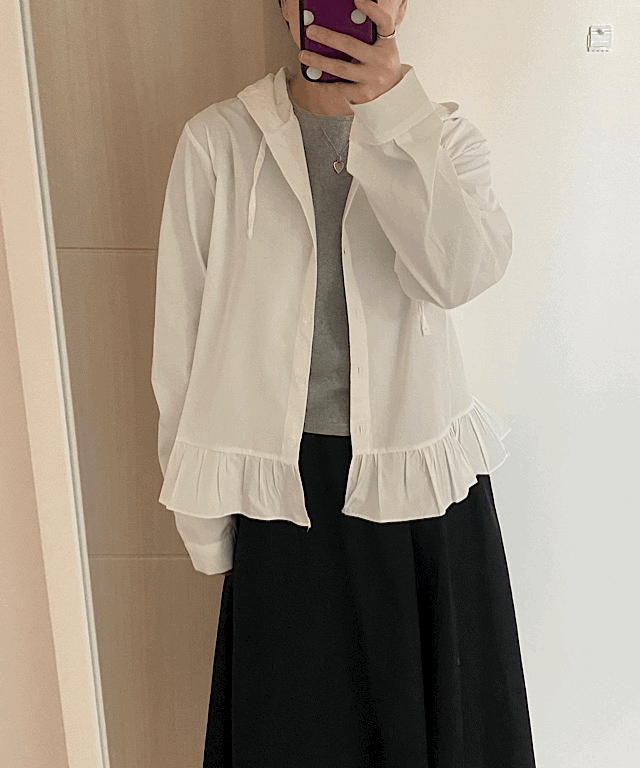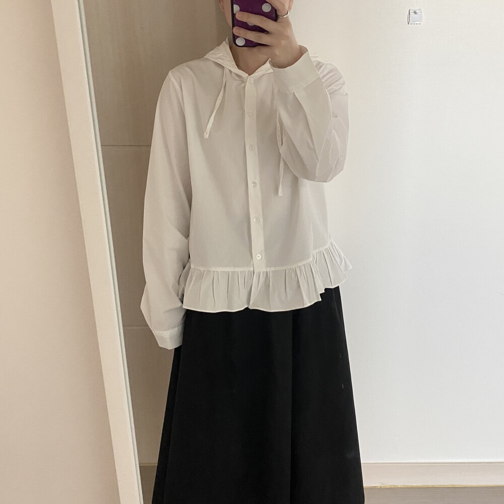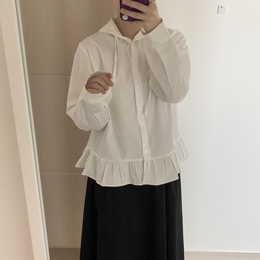 프릴 후드 셔츠(2color)