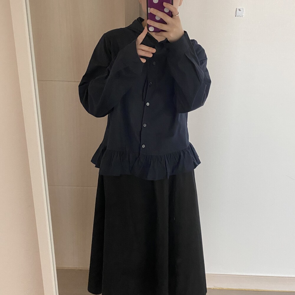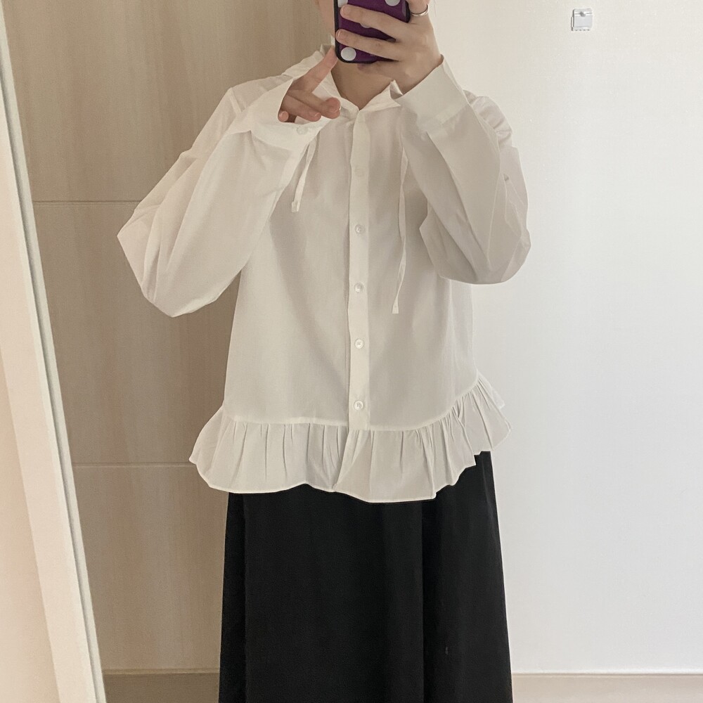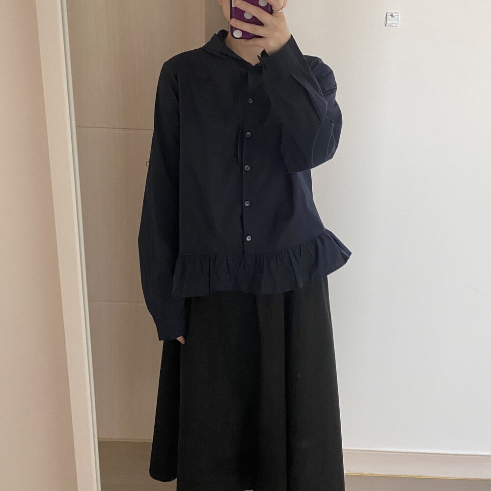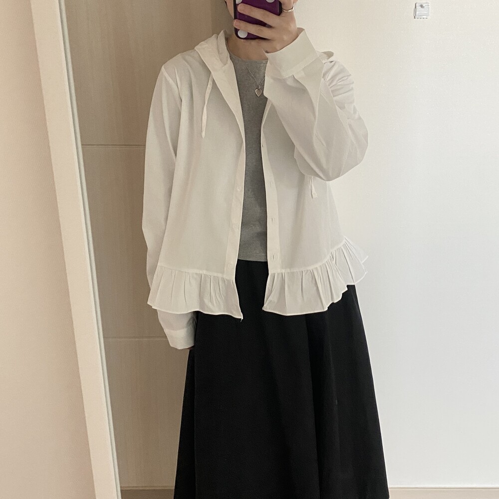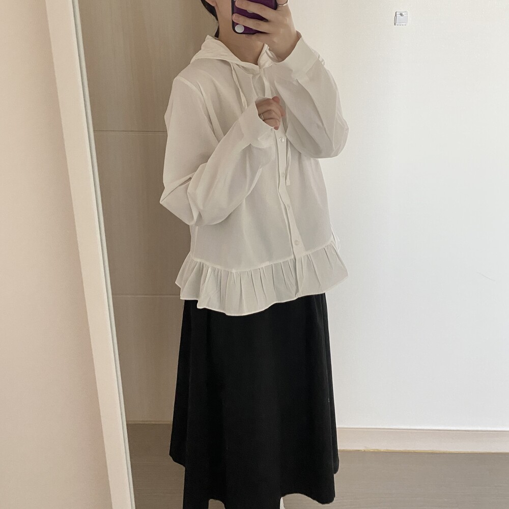 프릴 후드 셔츠(2color)