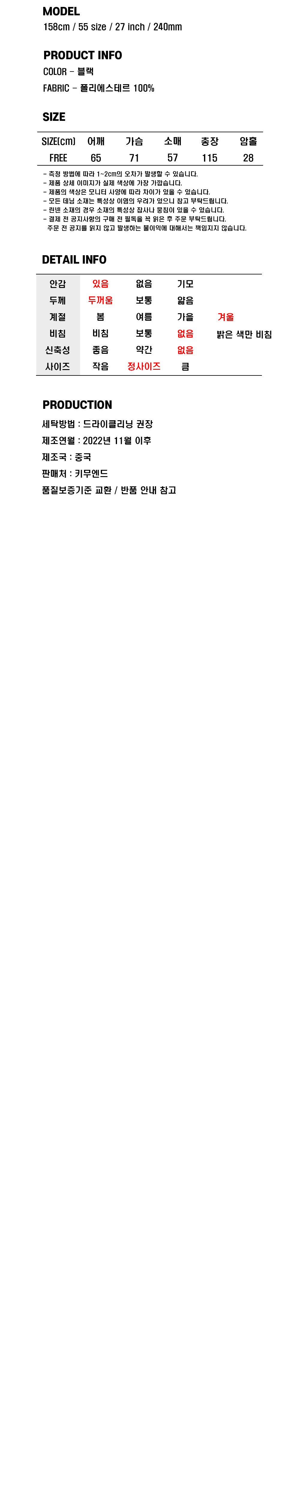 손목 밴딩과 뒤쪽 밑단 트임으로 편하게 착용 가능하세요 :)
