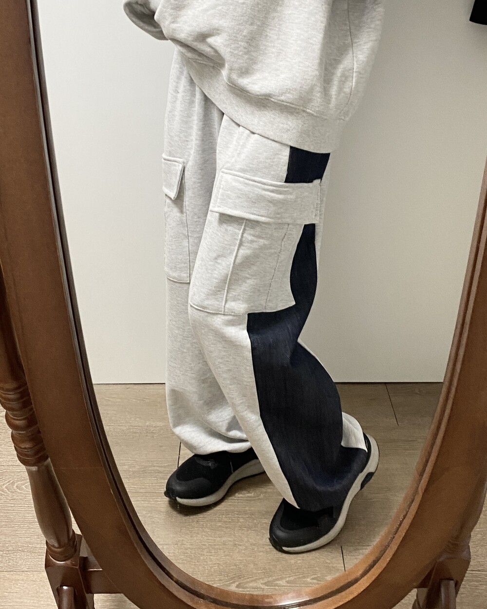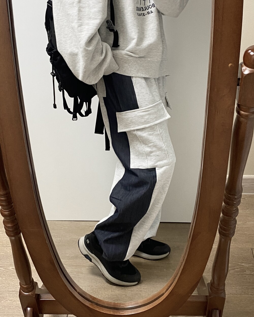 3단 쭈리 원단에 바이오 워싱 면 10수 원단으로 포인트를 준