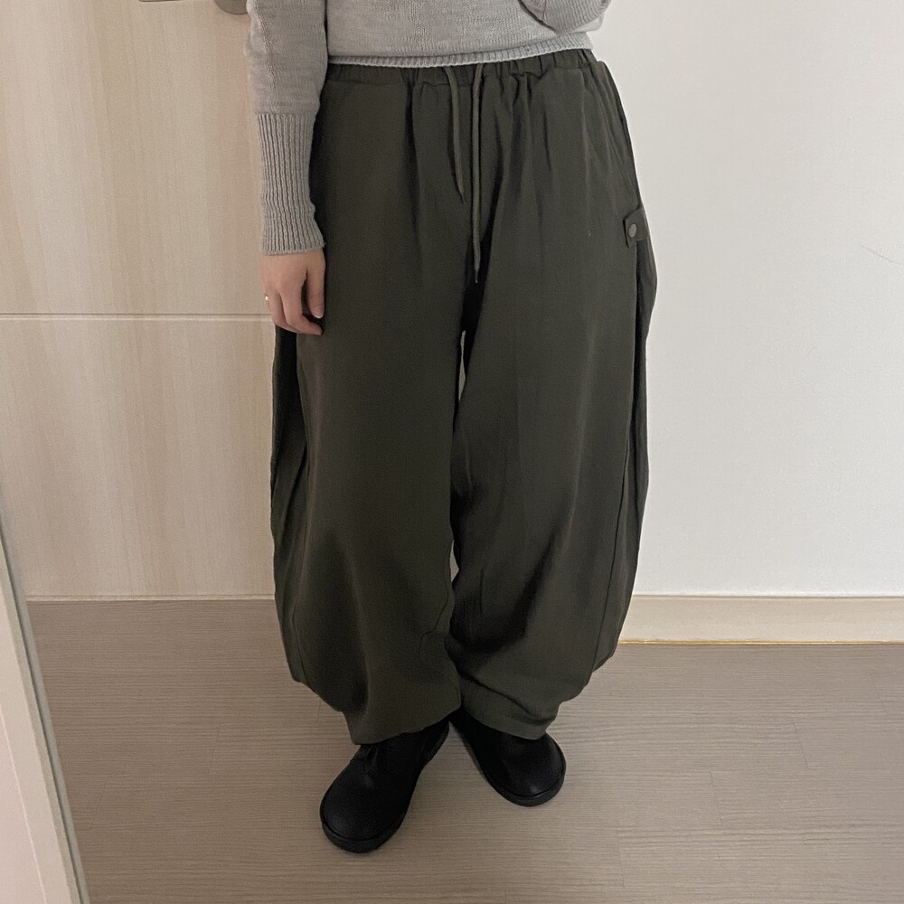 [변형가능]밴딩 버튼 벌룬 와이드 코튼 팬츠(3color)