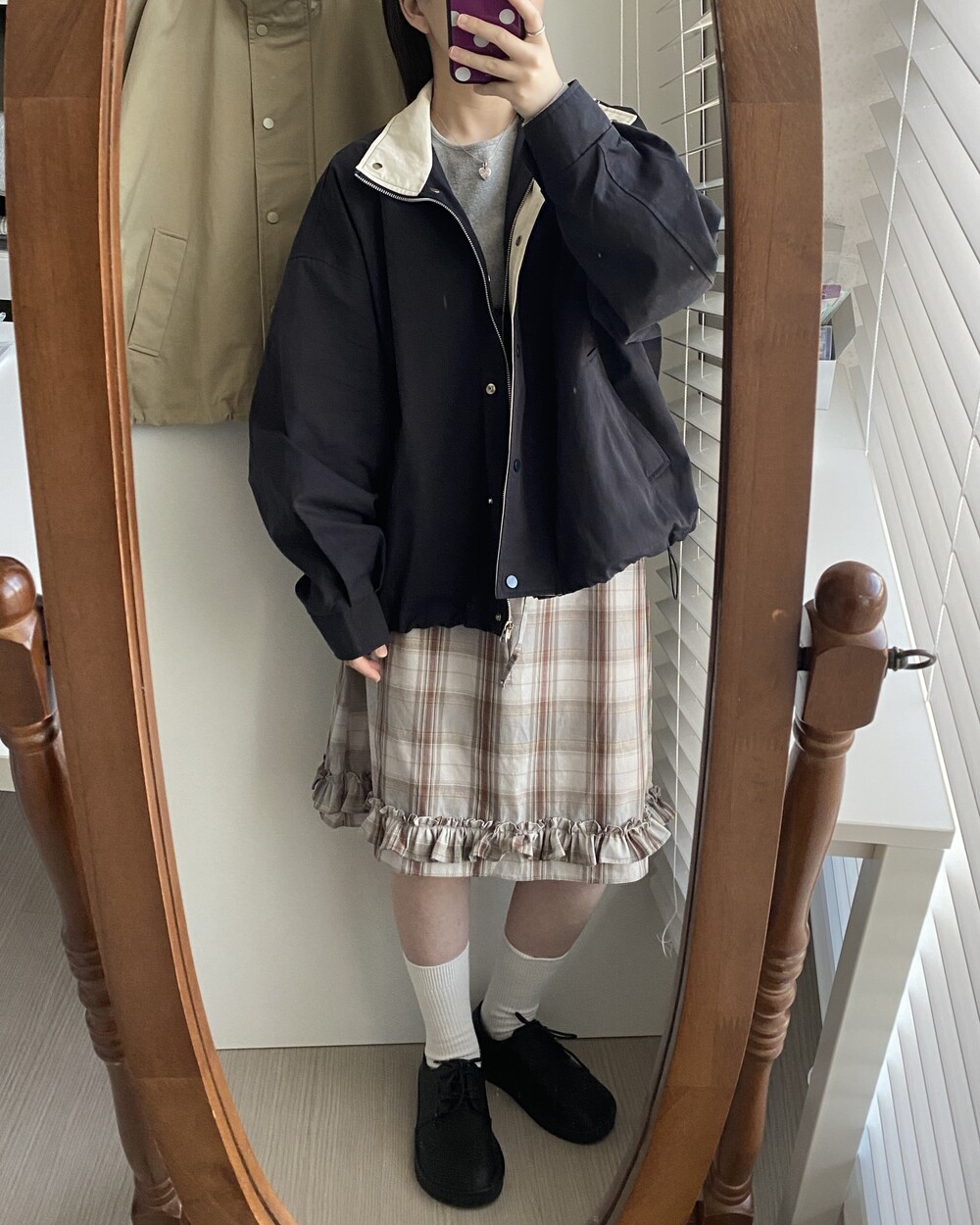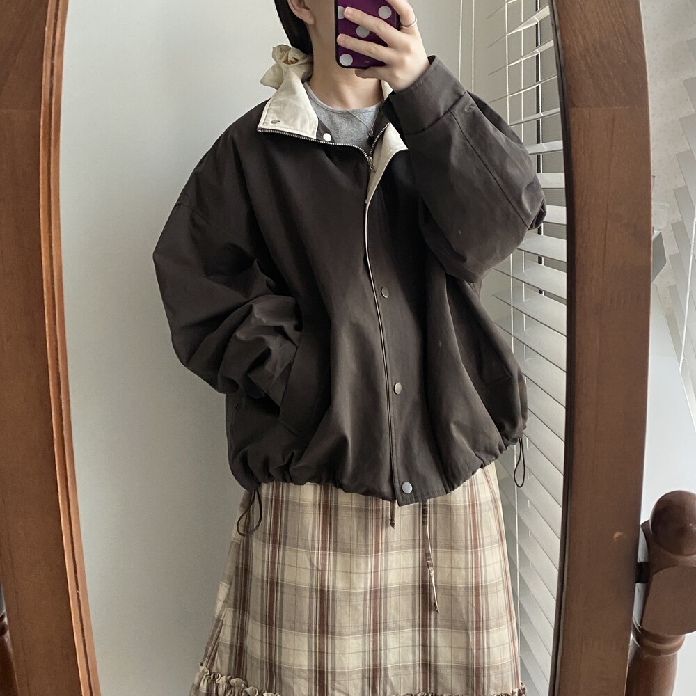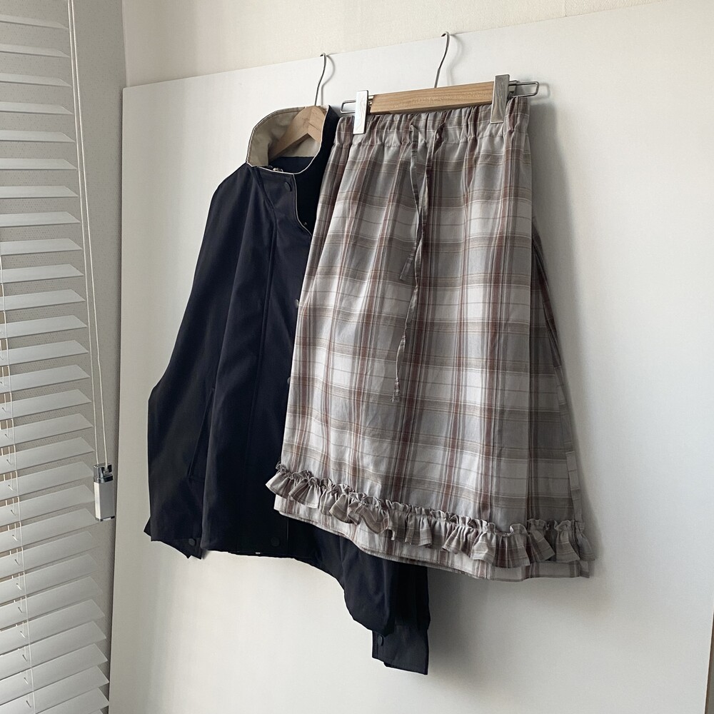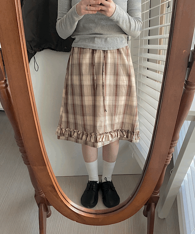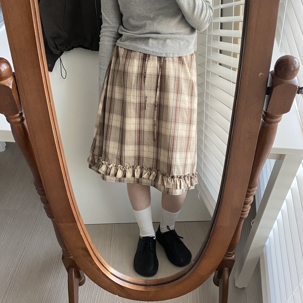 오브 체크 밴딩 미디 스커트(2color)