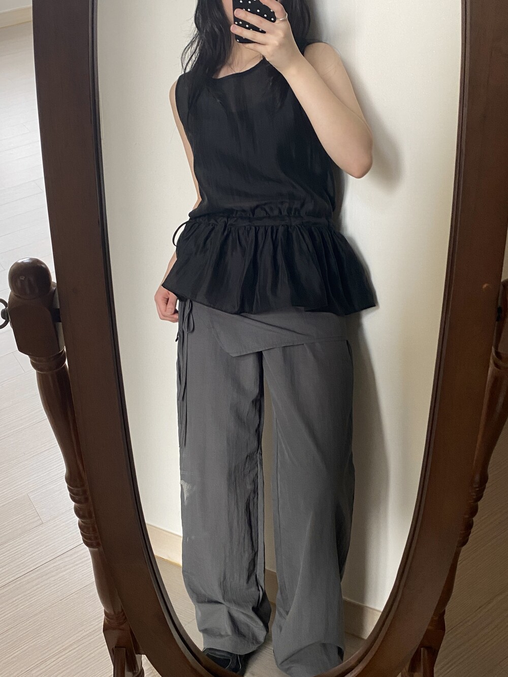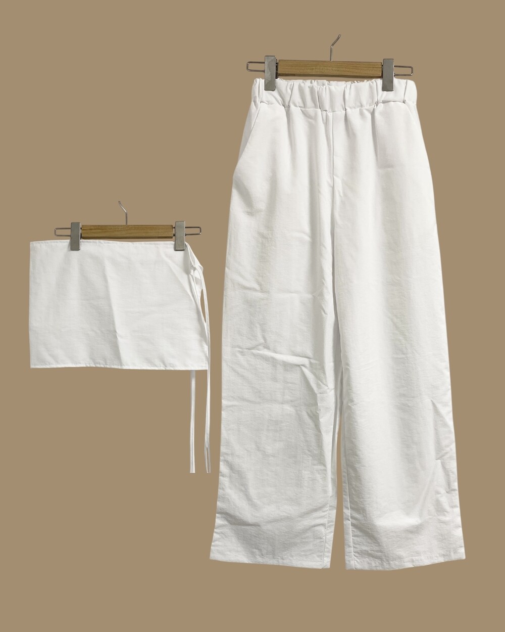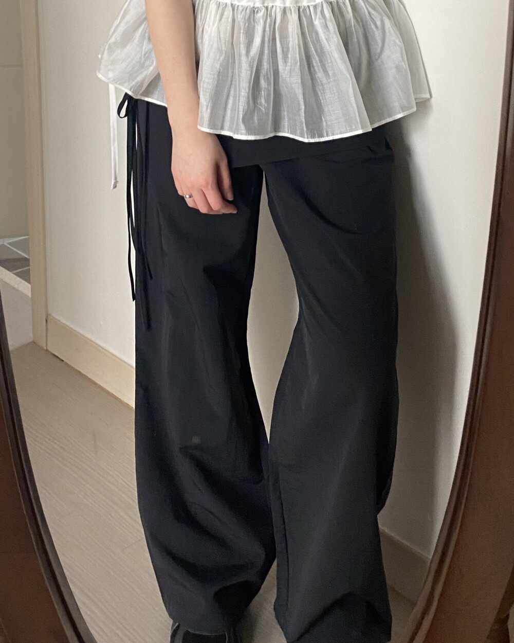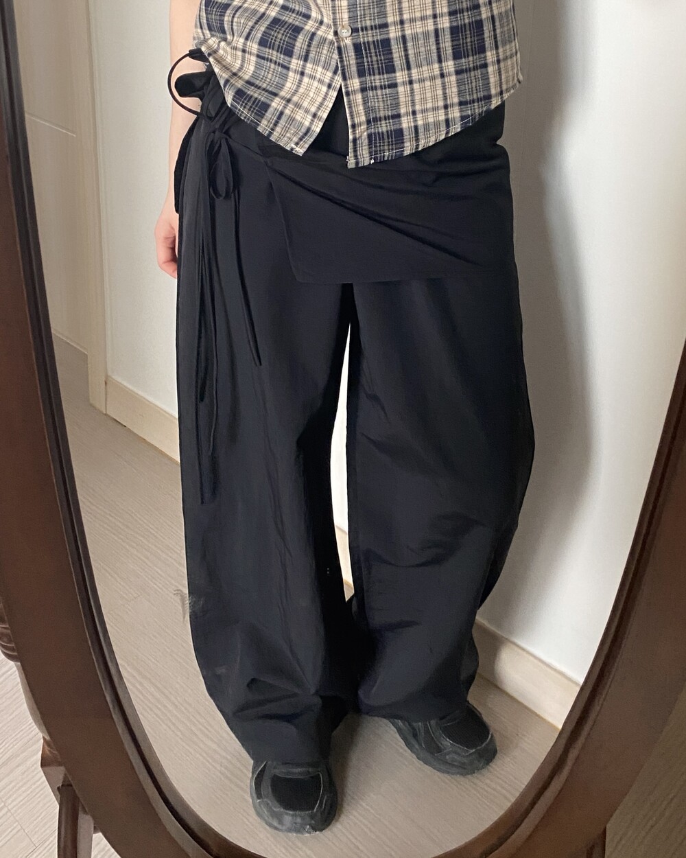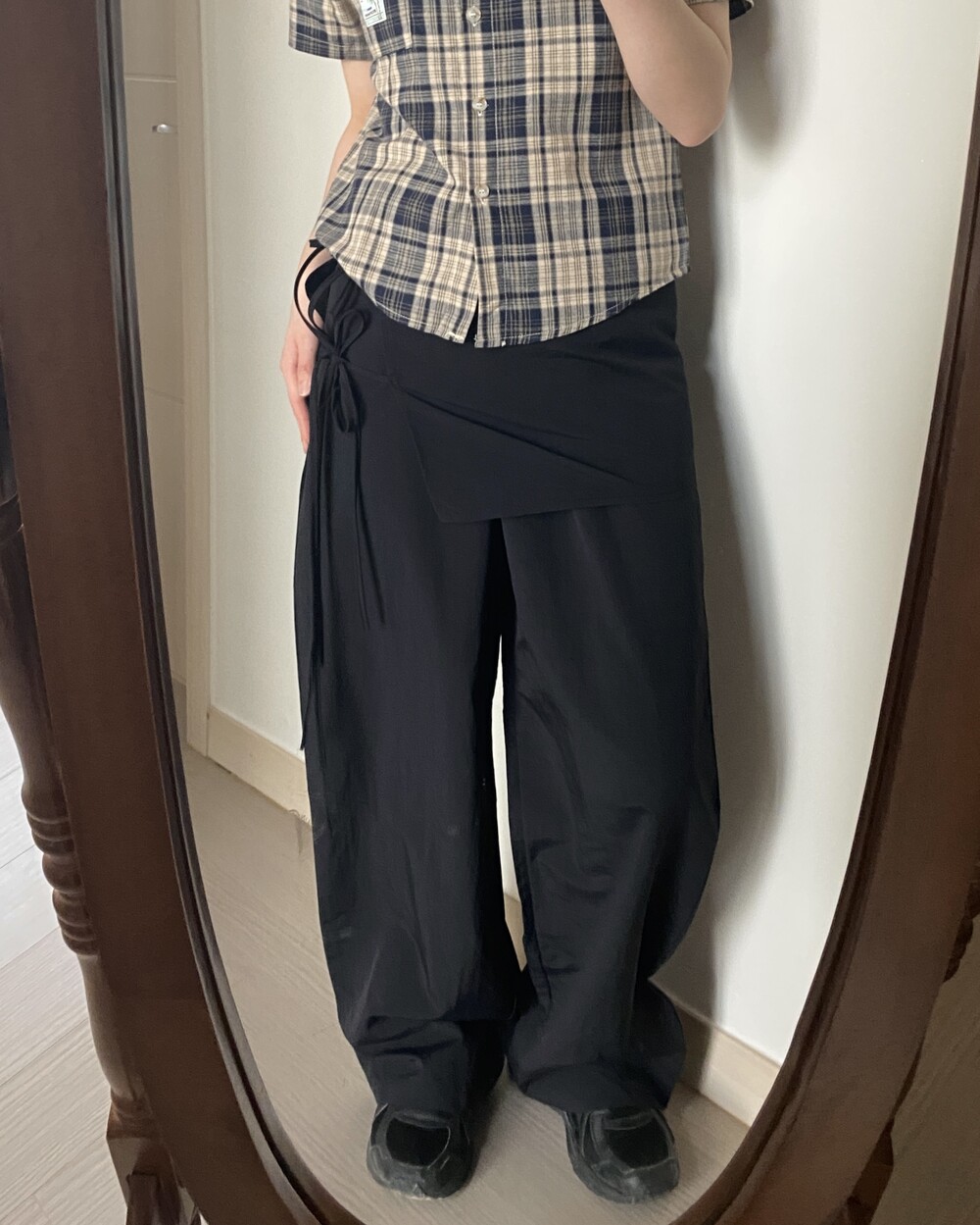[set]나일론 레이어드 랩 스커트 와이드 팬츠(3color)