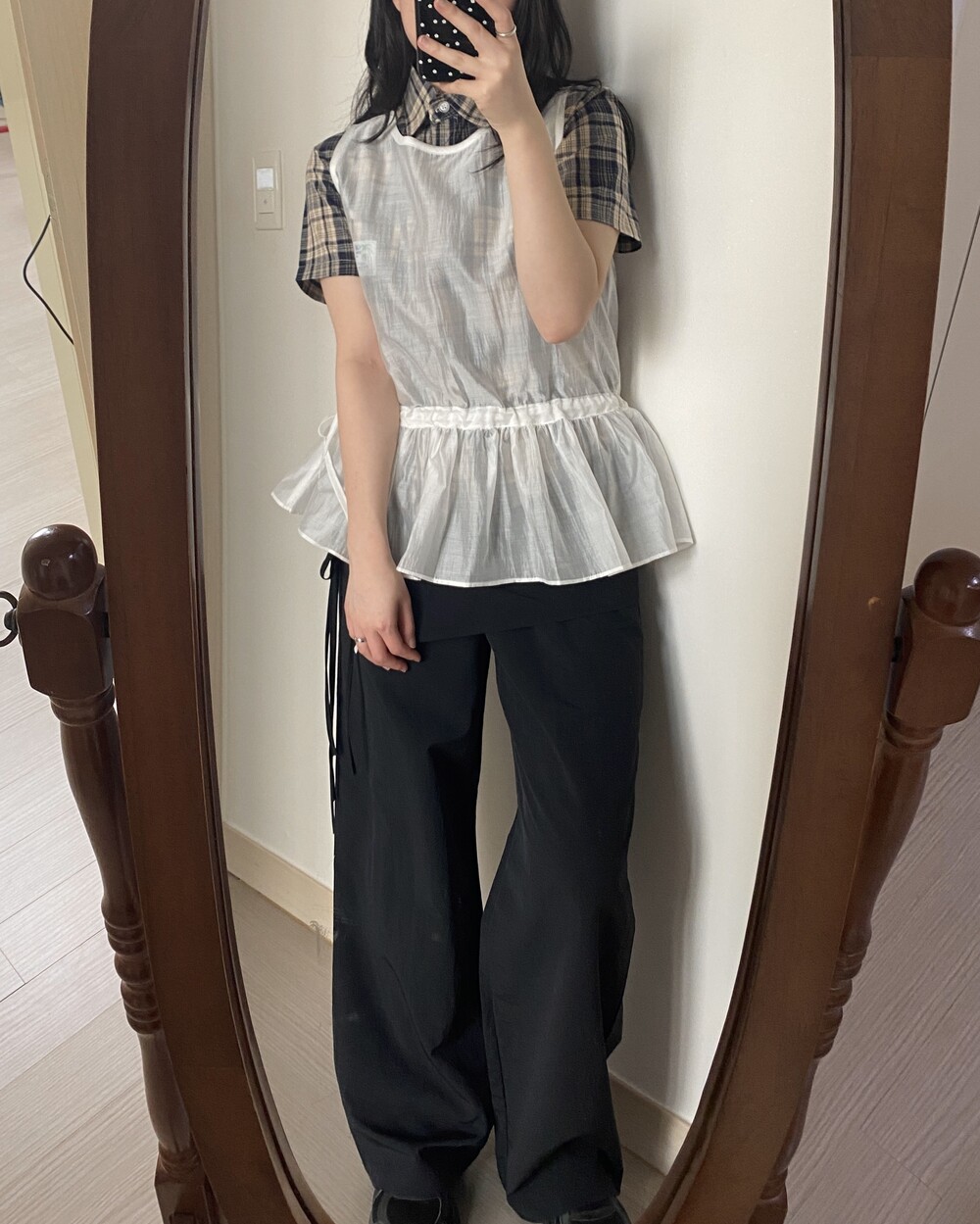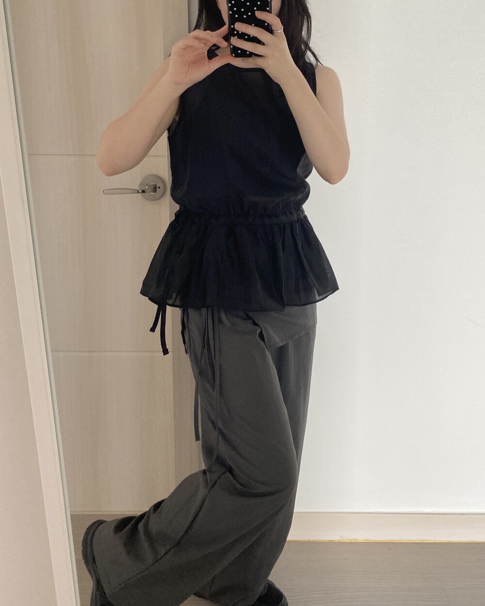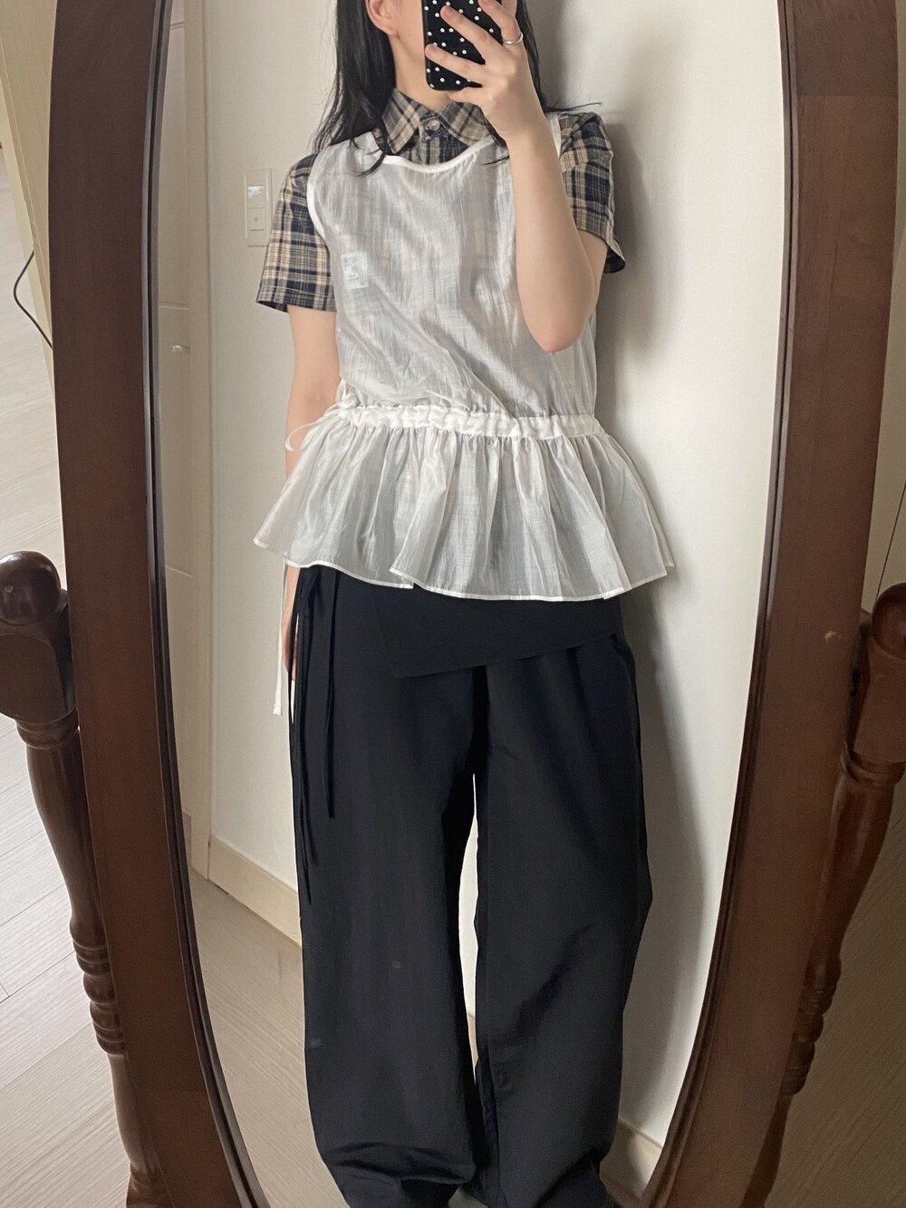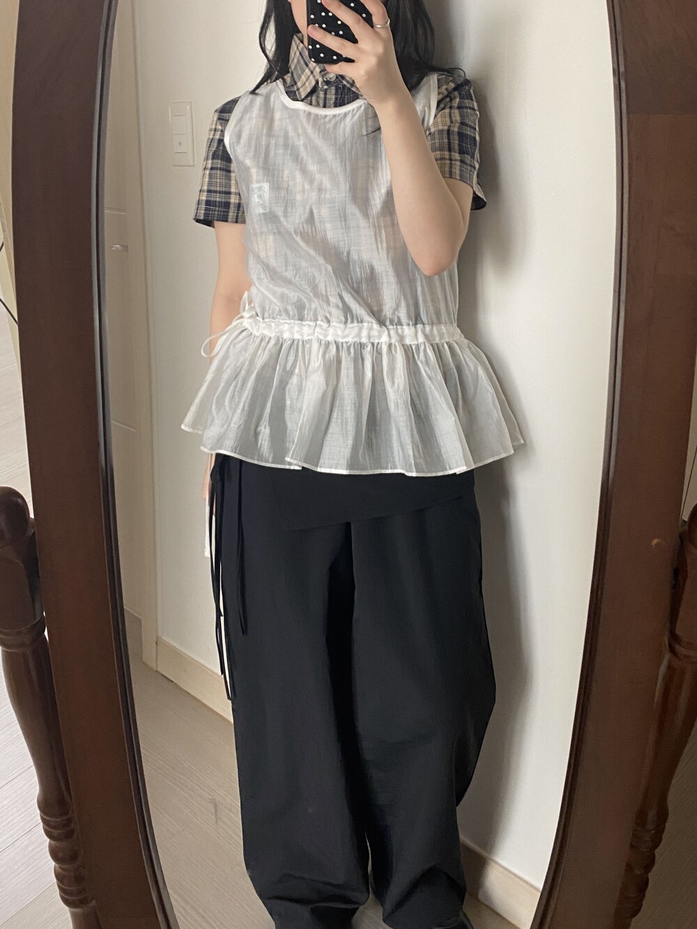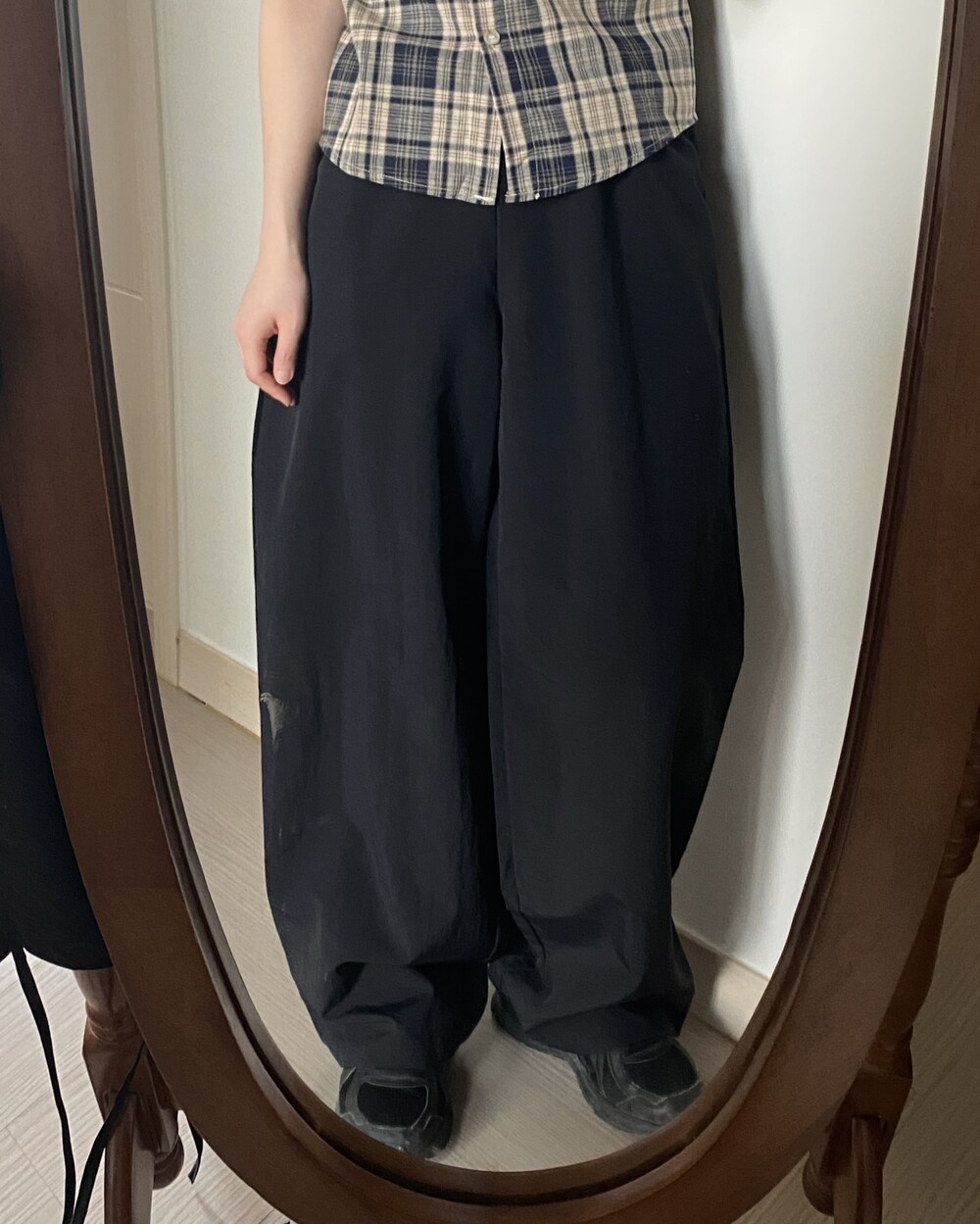 [set]나일론 레이어드 랩 스커트 와이드 팬츠(3color)