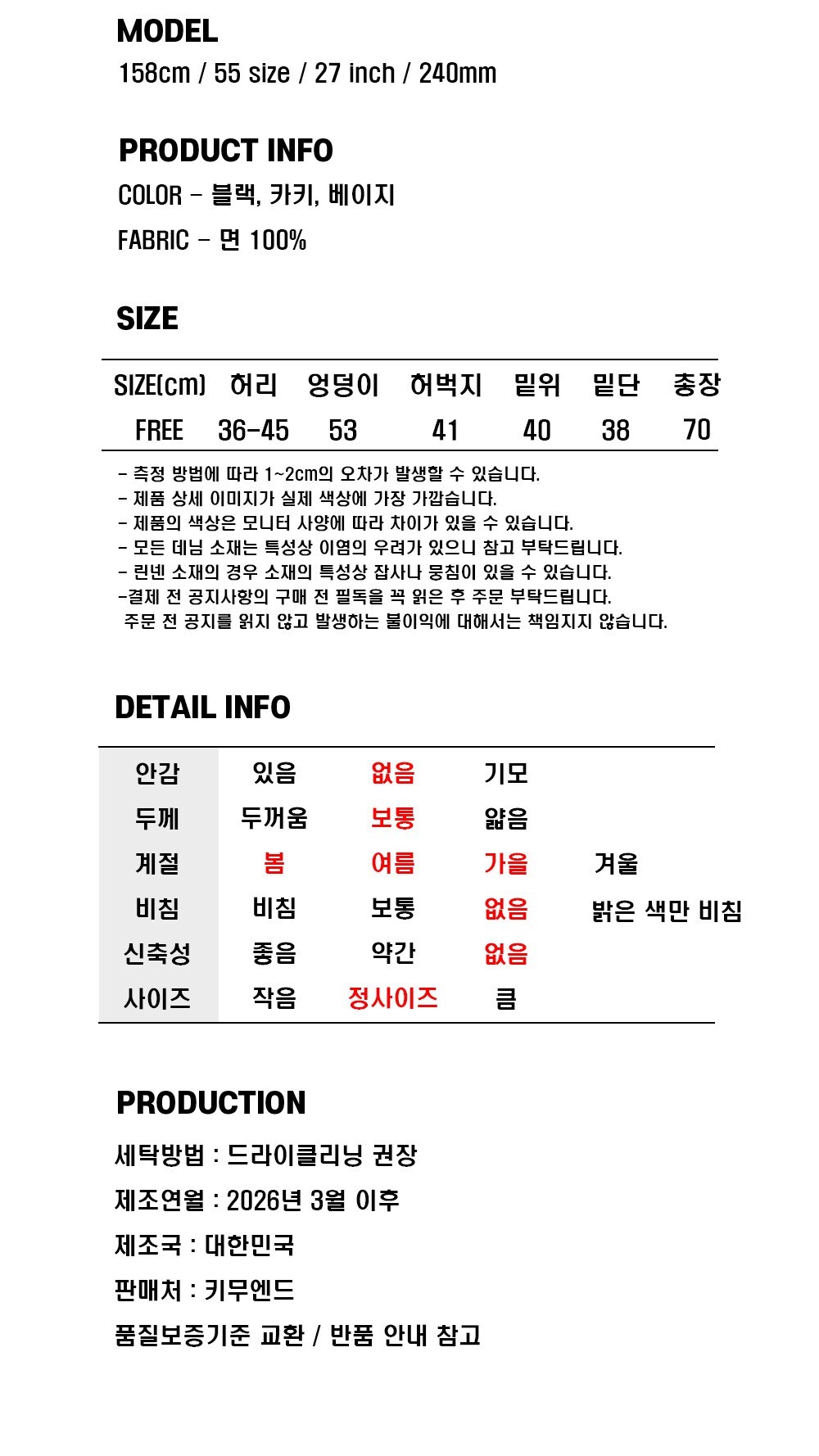 블랙, 베이지, 카키