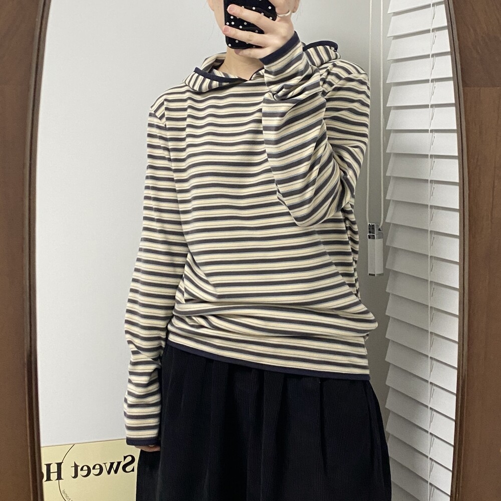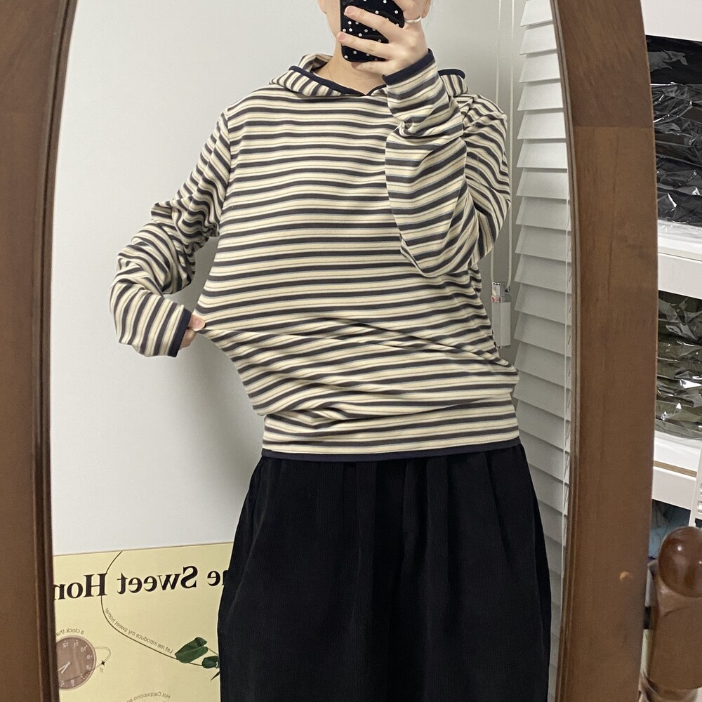 [MD추천]모찌 기모 스트라이프 후드티