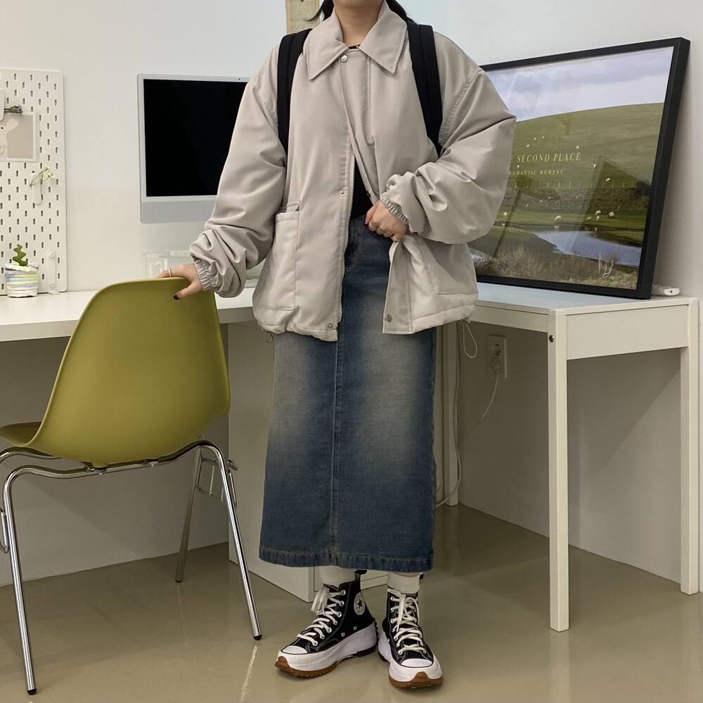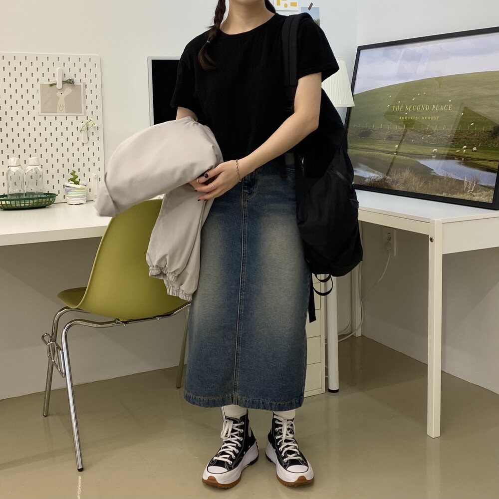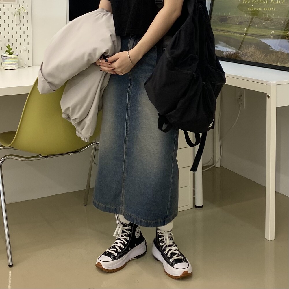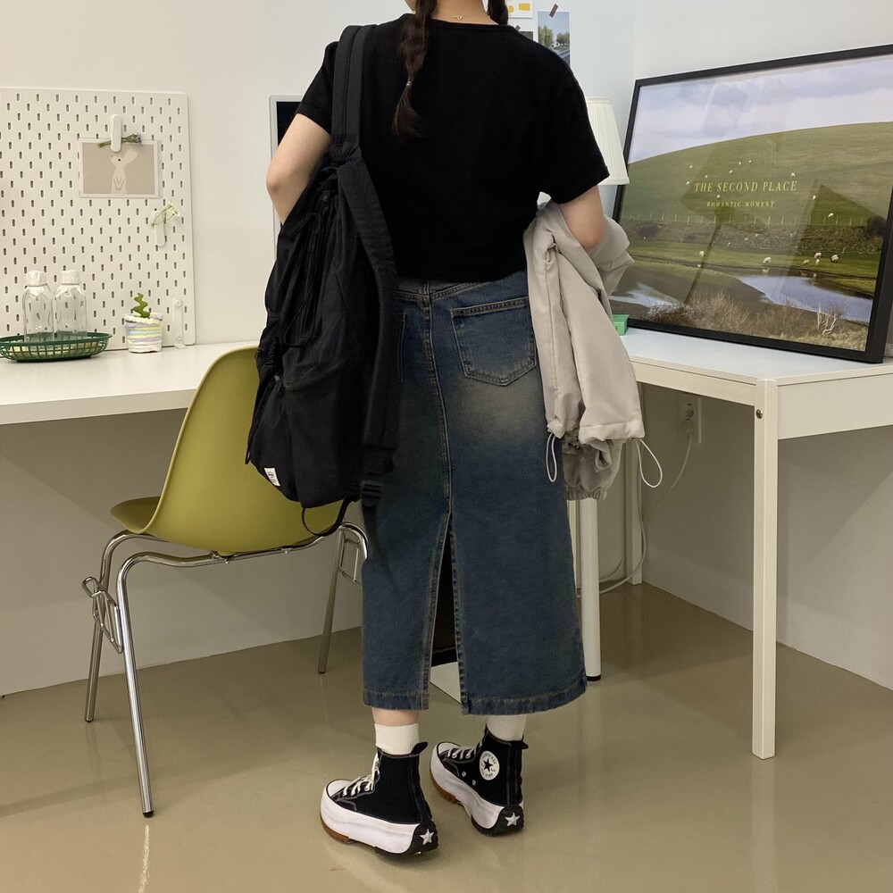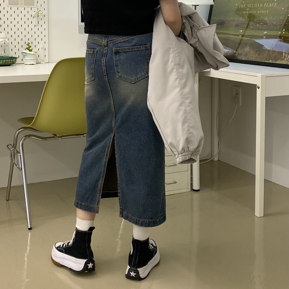 뒷부분 트임이 있어서 활동성이 좋은 데님 스커트입니다!