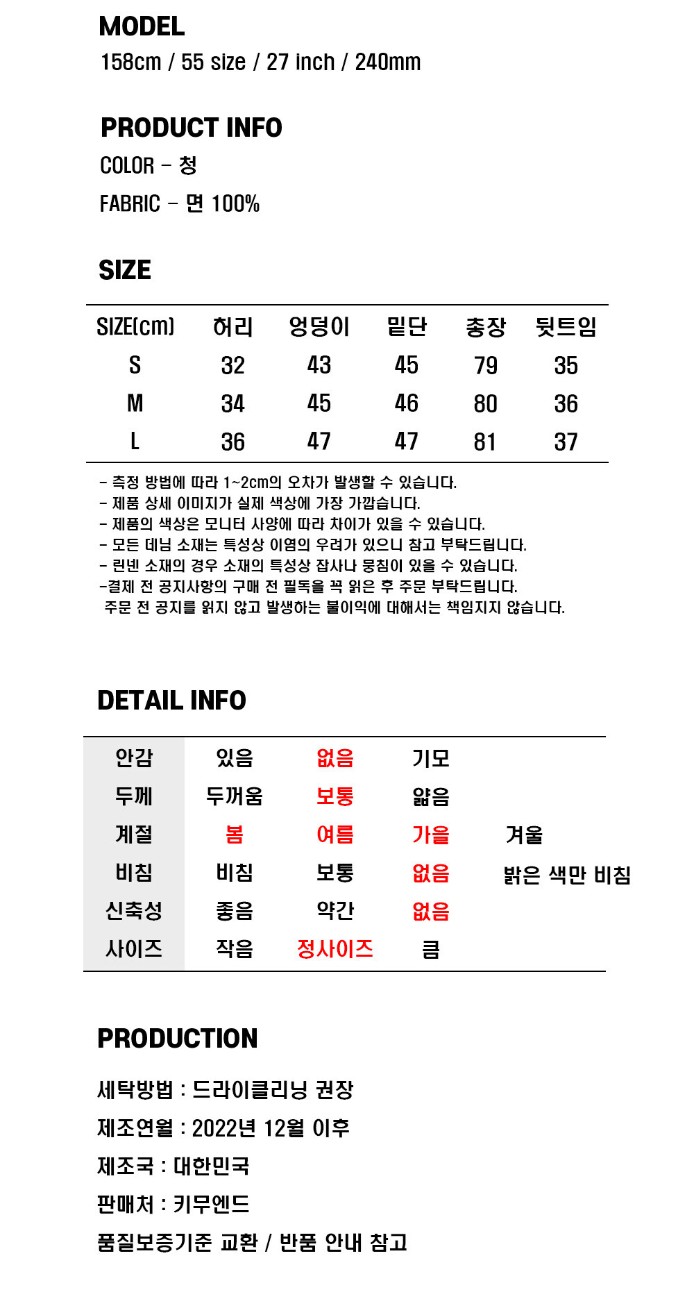 모델의 경우 158cm / 48kg 로 S사이즈 착용했으나