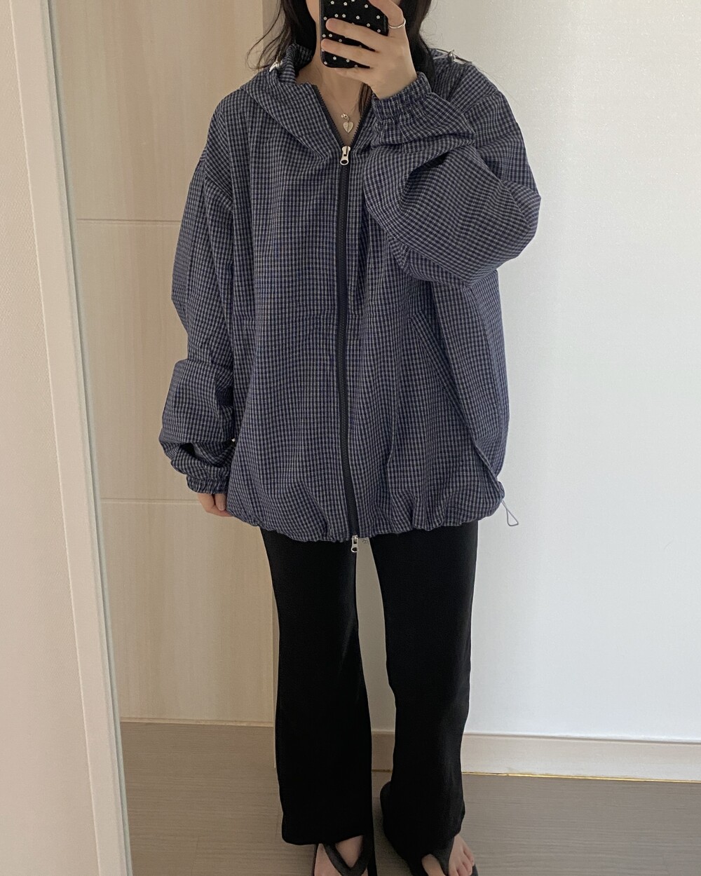 [여름까지 쭉]미츠하 체크 후드 집업(3color)