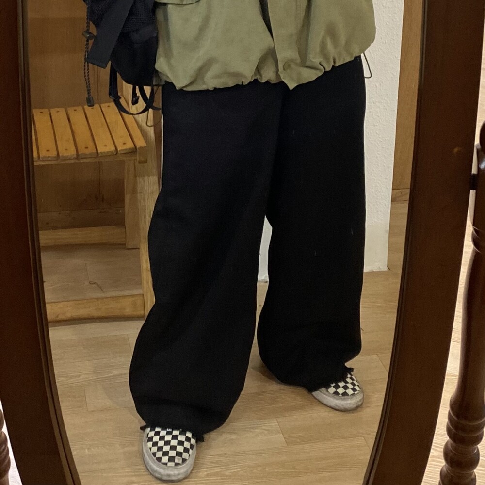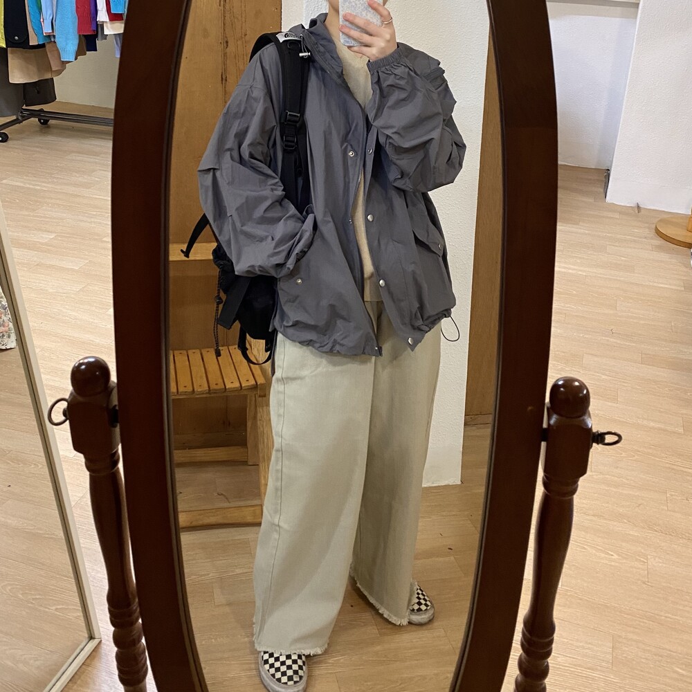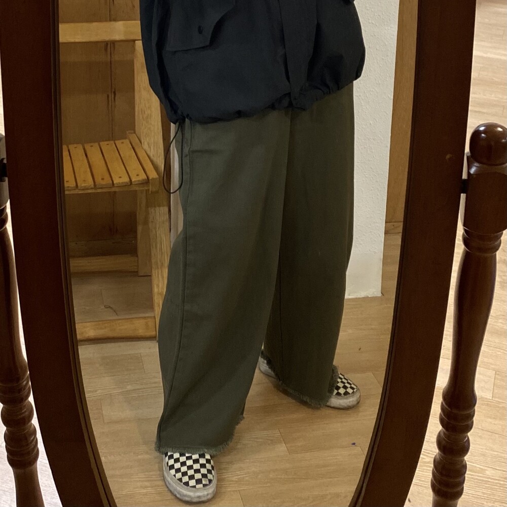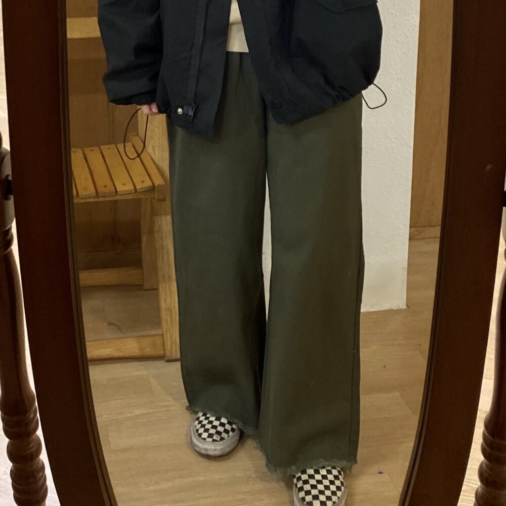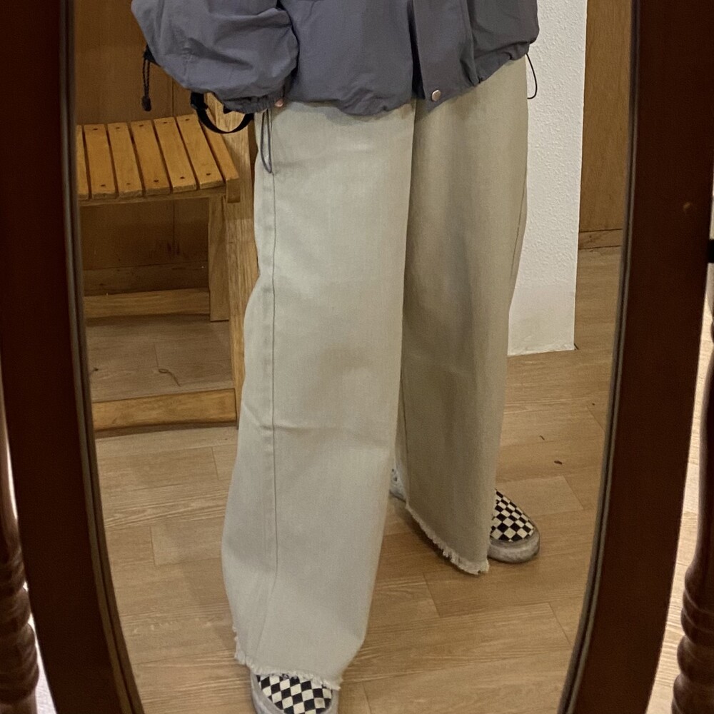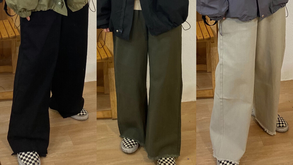 밑단 컷팅으로 은은한 포인트가 돋보이는 와이드 팬츠입니다.