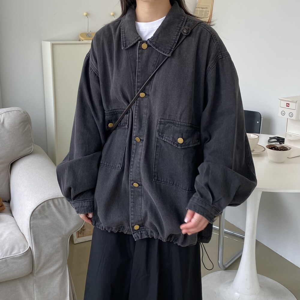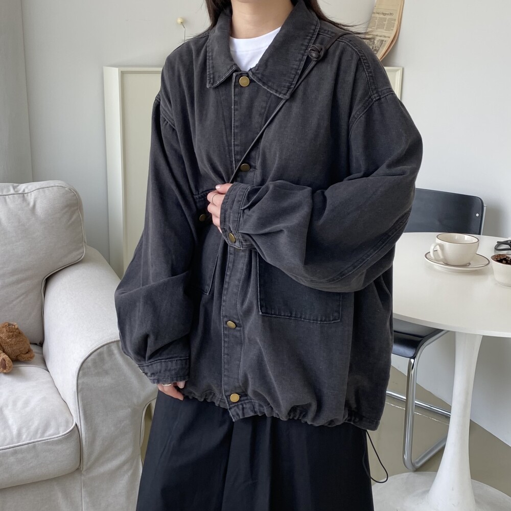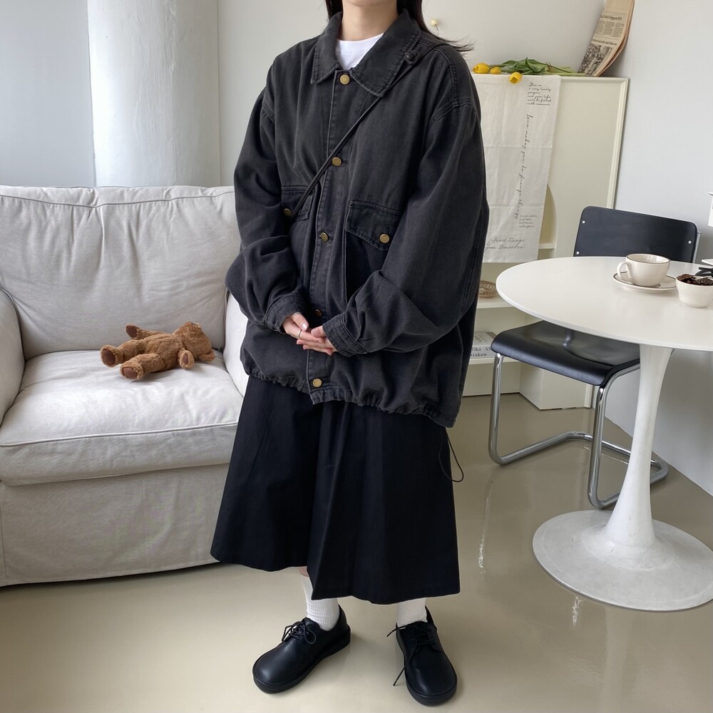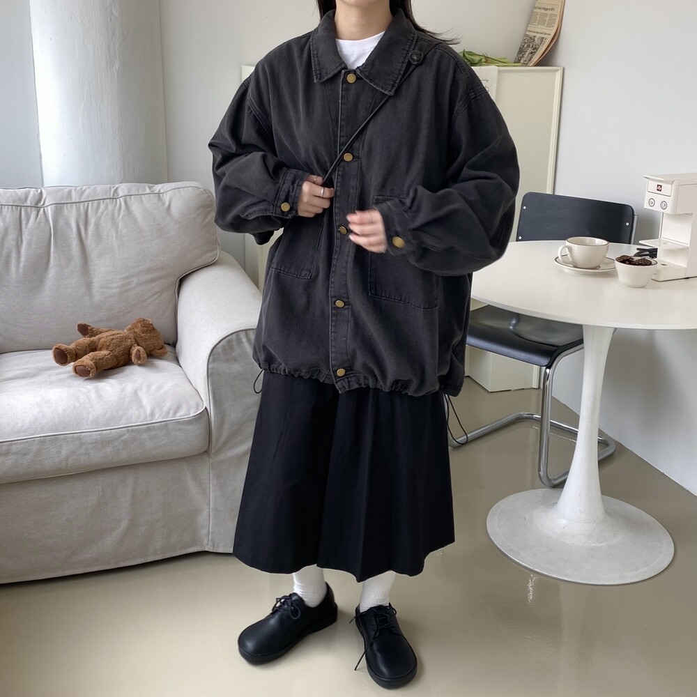 낭낭한 사이즈에 밑단 스트링이 있어 다양한 핏으로 연출 가능합니다♥