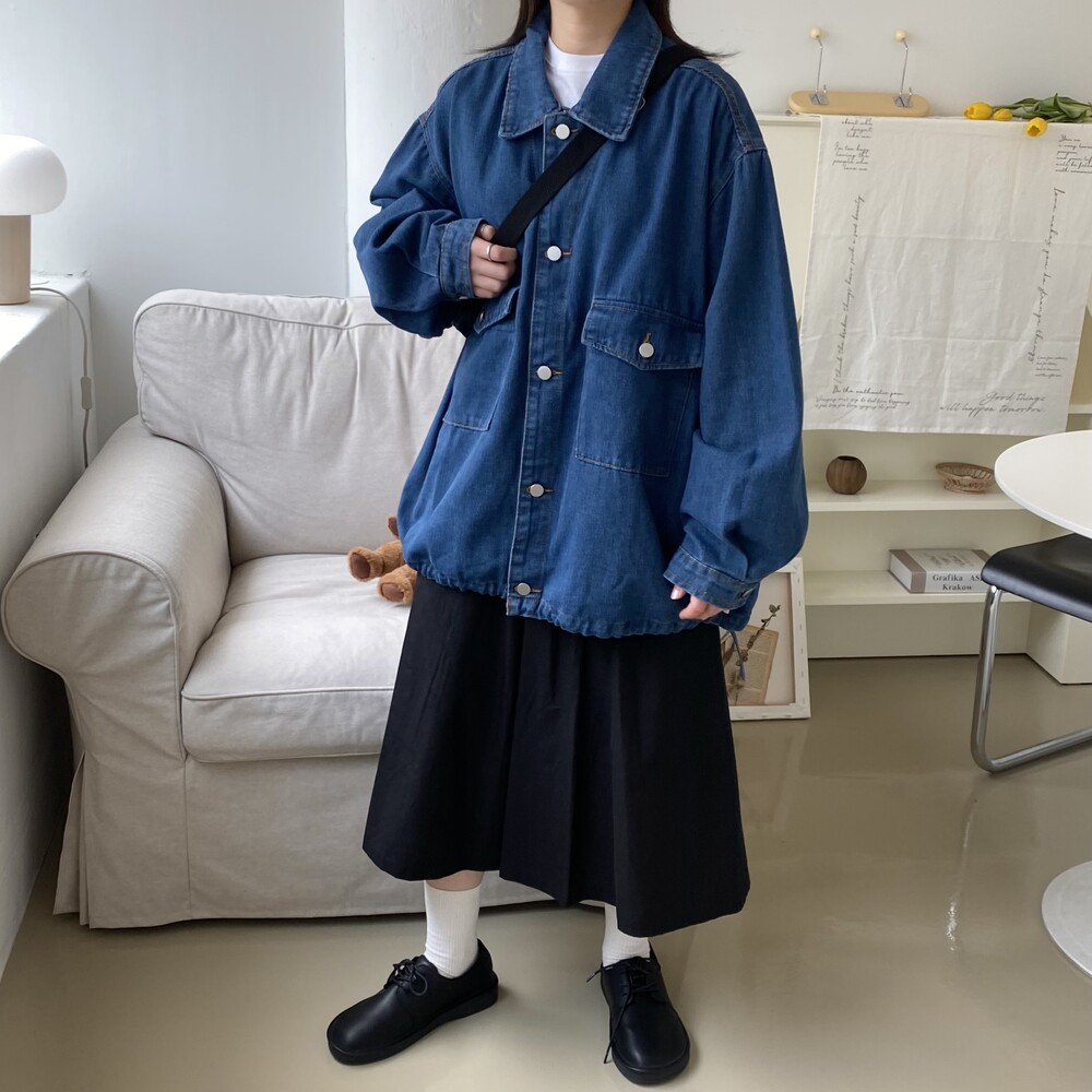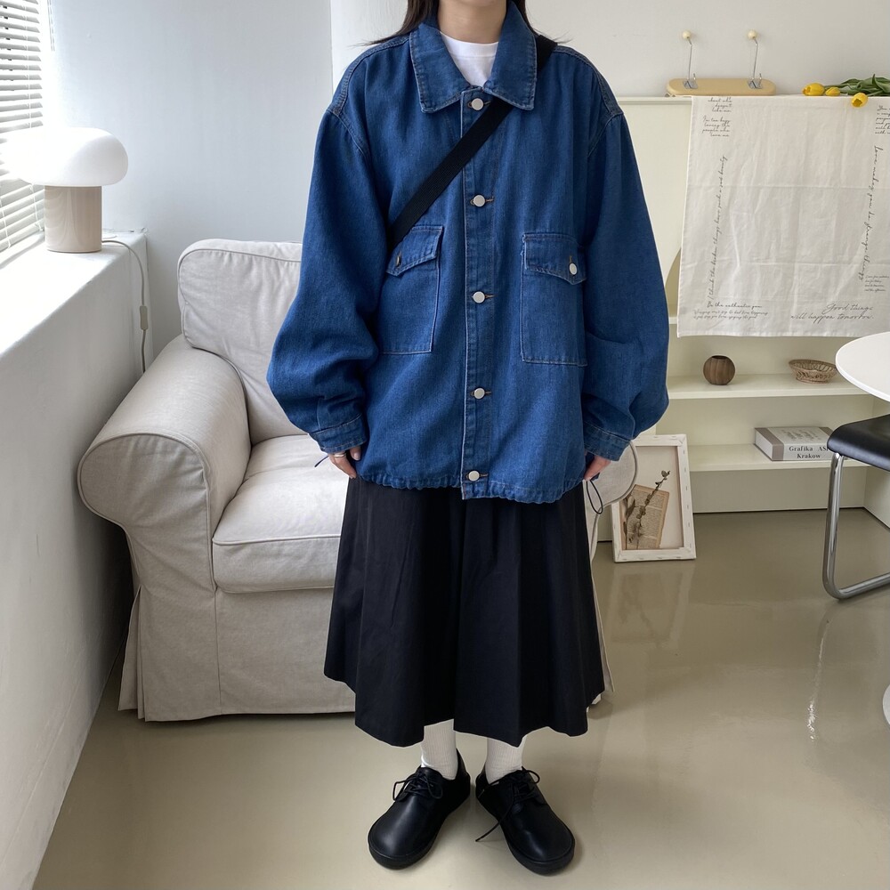 일반적인 빳빳한 느낌의 청자켓이 아닌 약간 부들부들한 데님 소재라