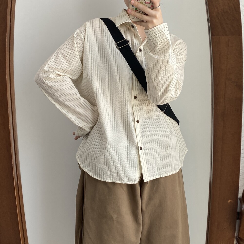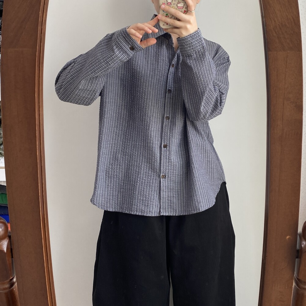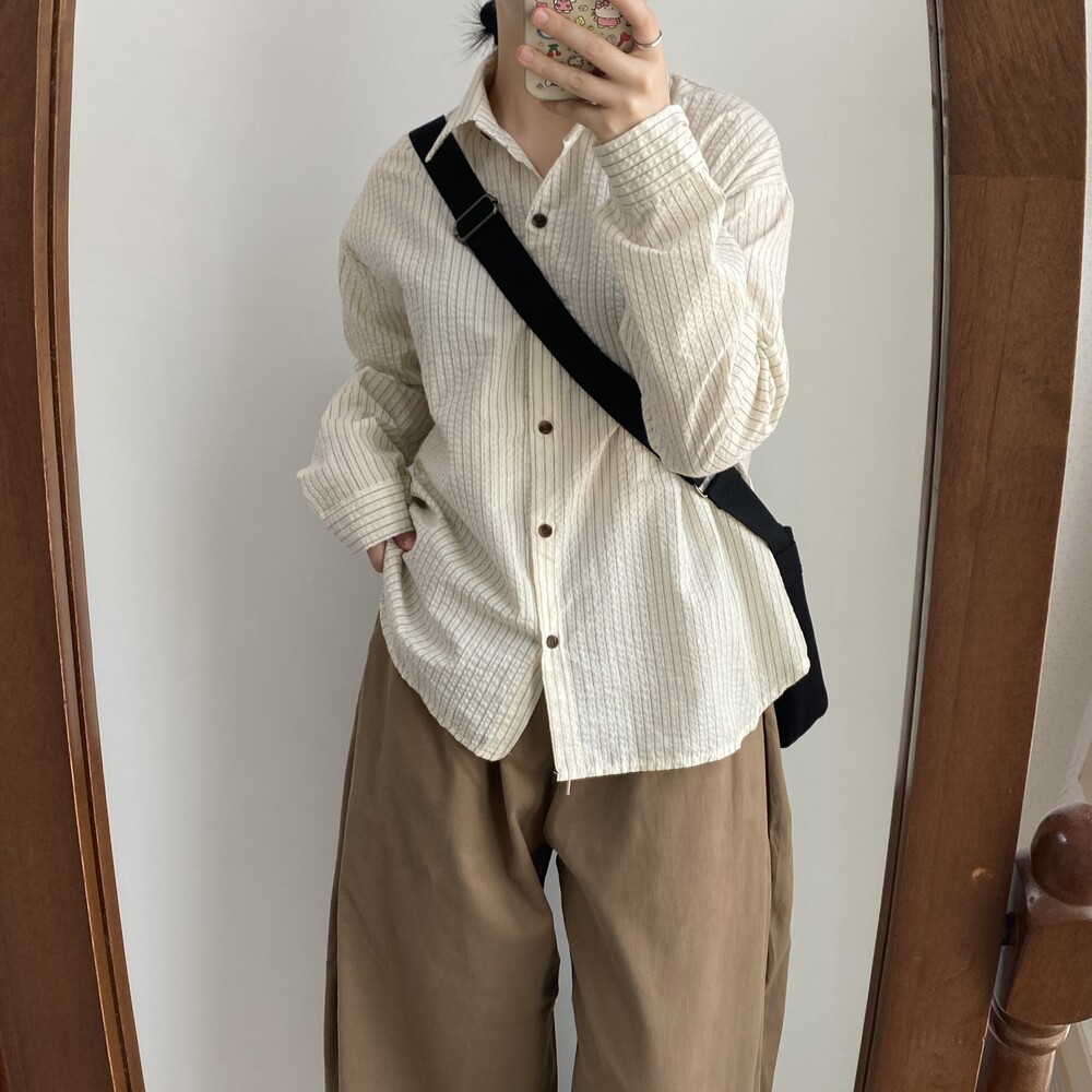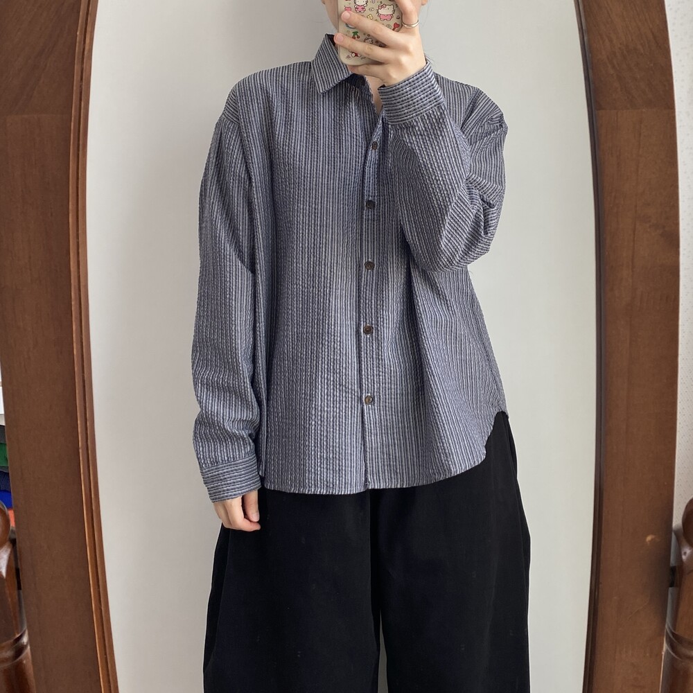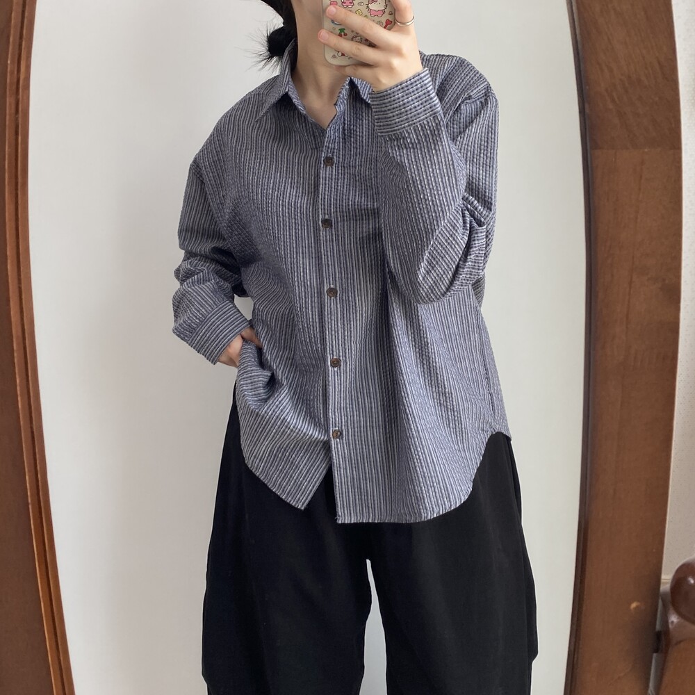 쭈그리 스트라이프 긴팔 셔츠(2color)