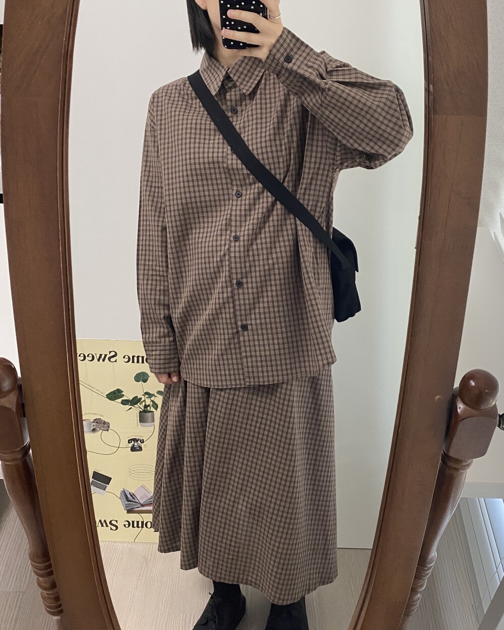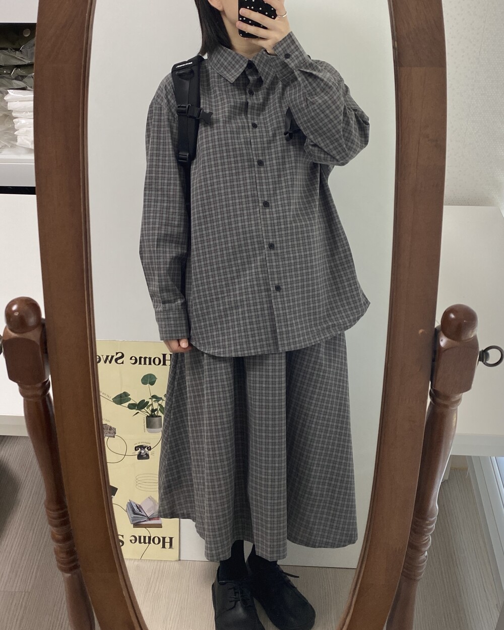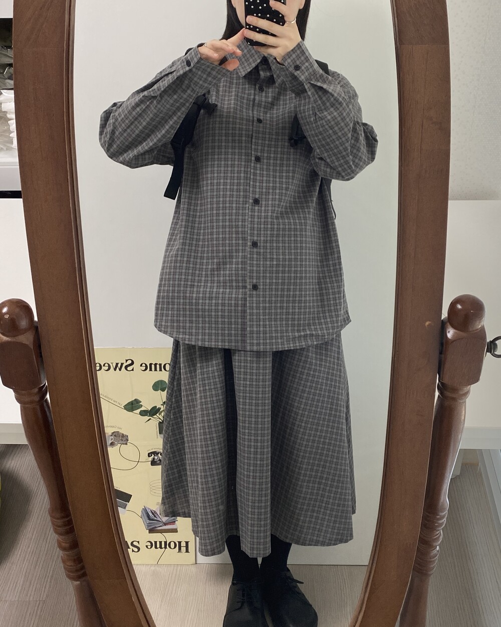쿠키 체크 셔츠 스커트 셋업(3color)