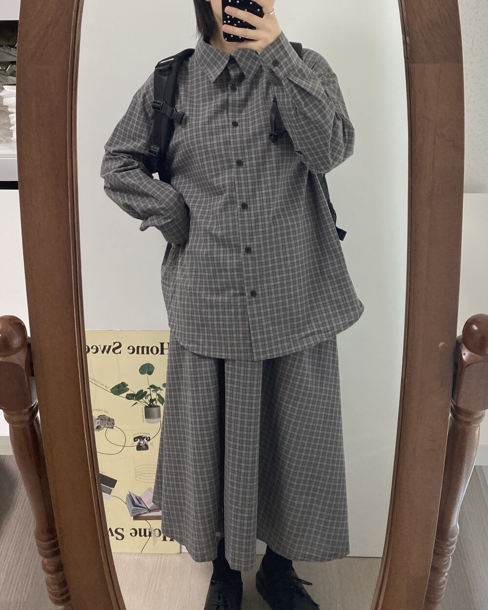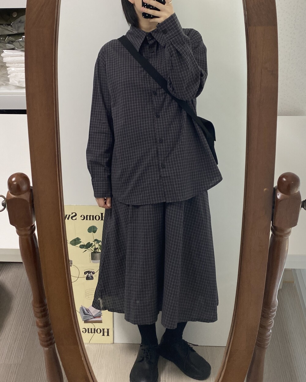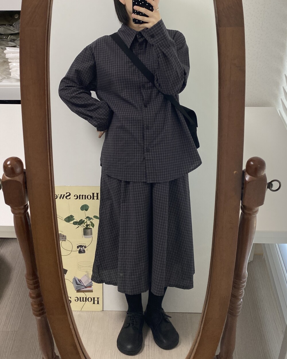 쿠키 체크 셔츠 스커트 셋업(3color)