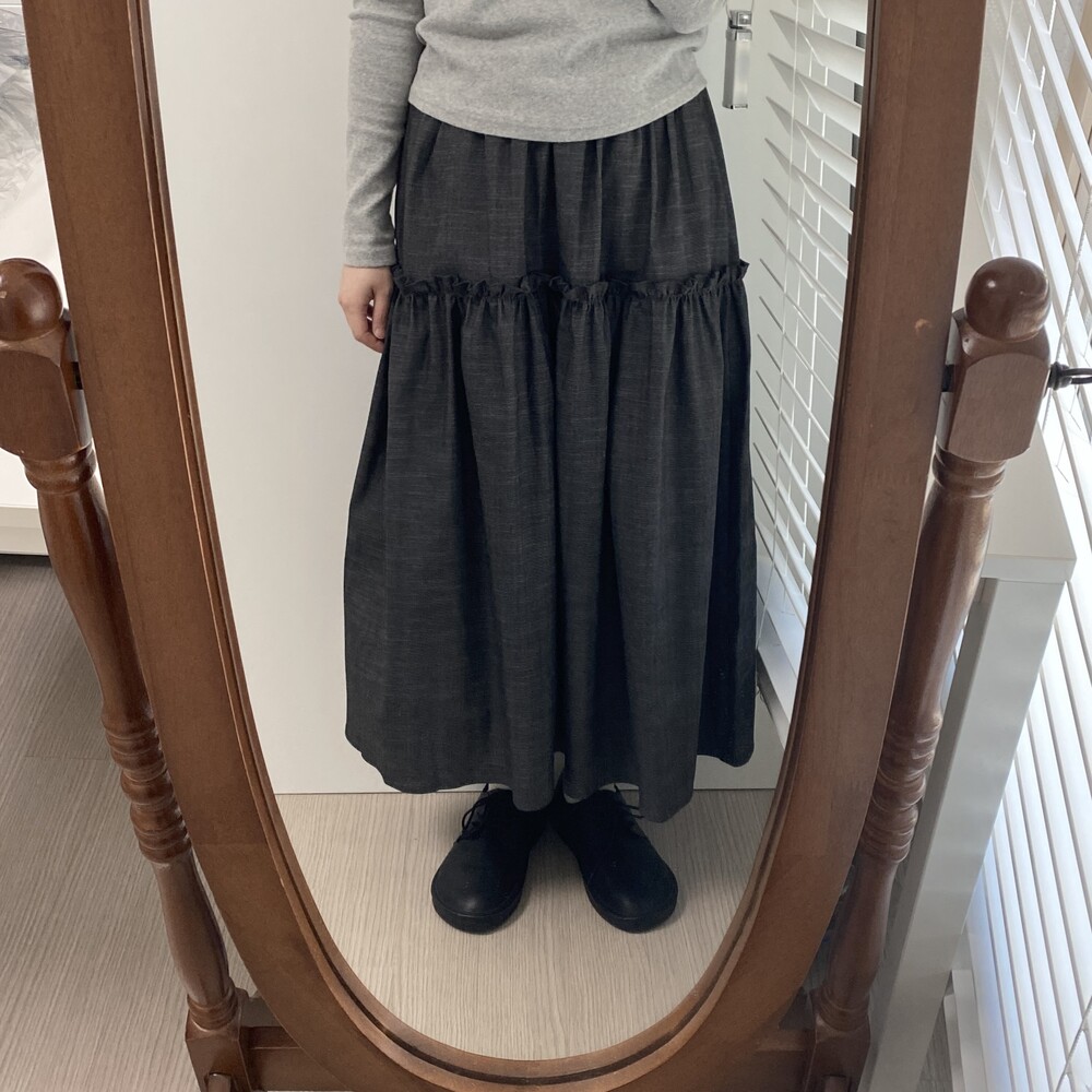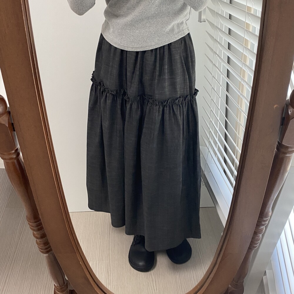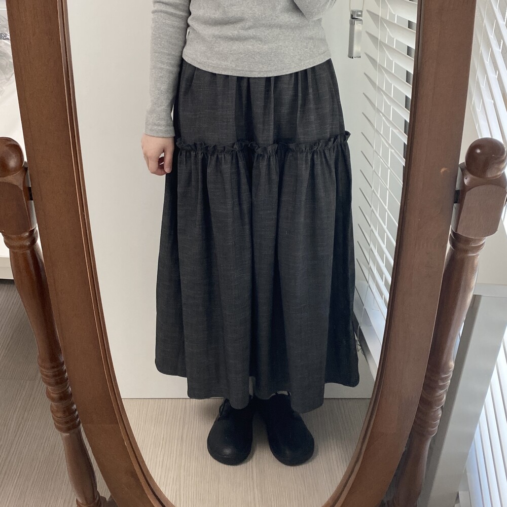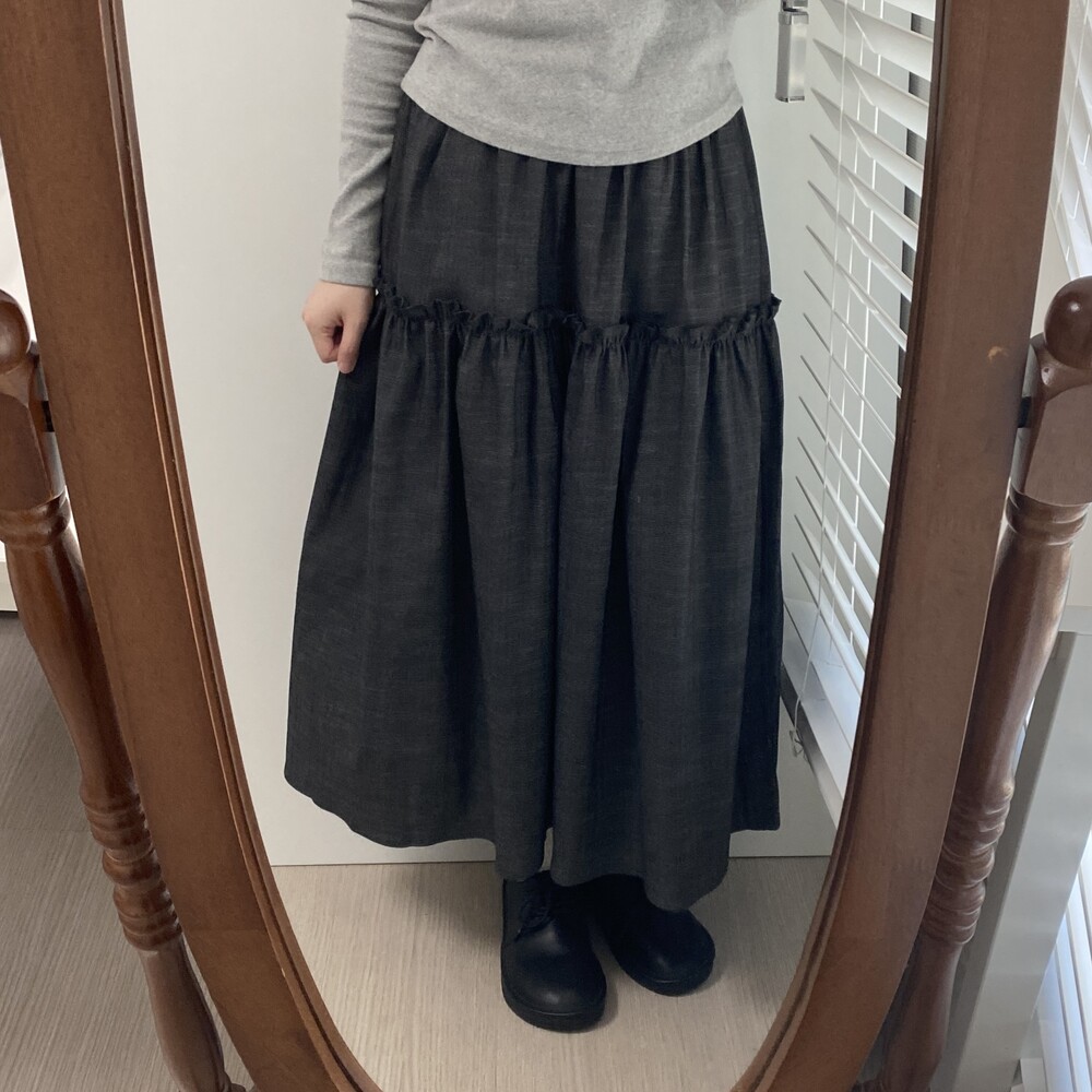 데님 프릴 롱스커트