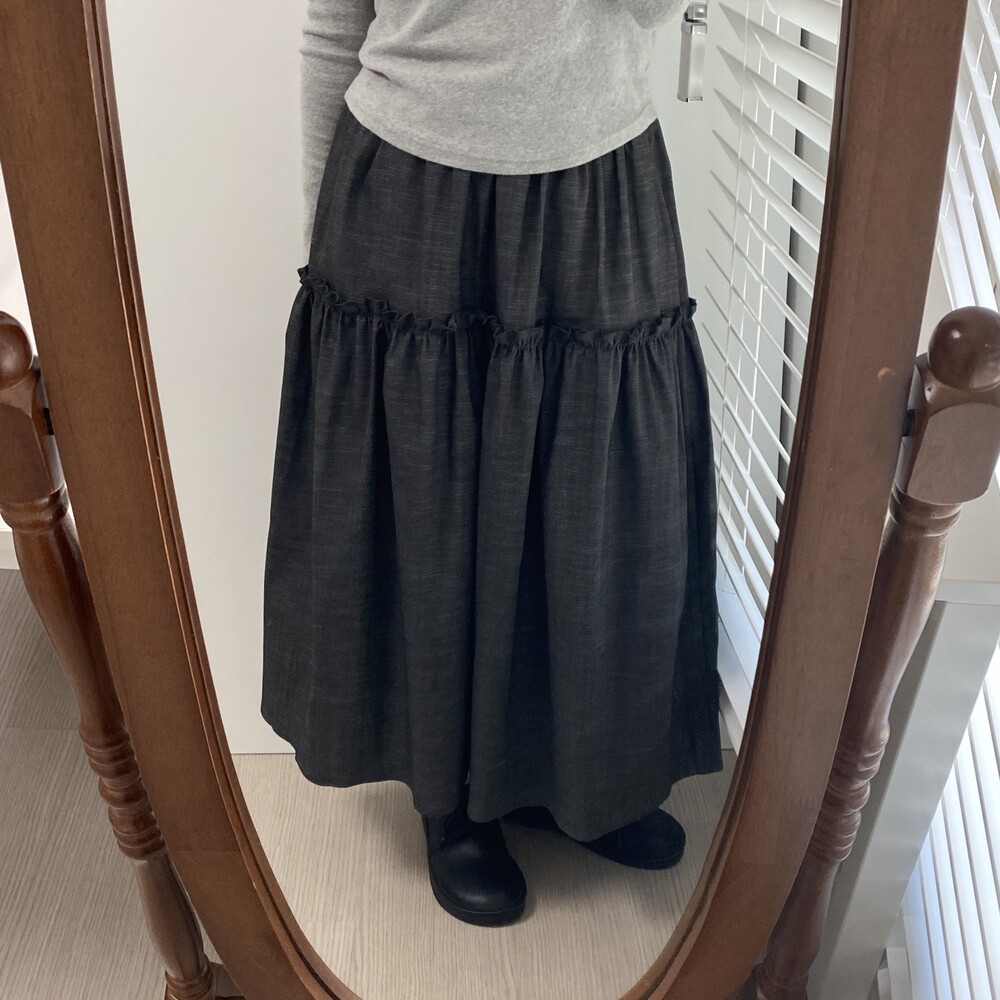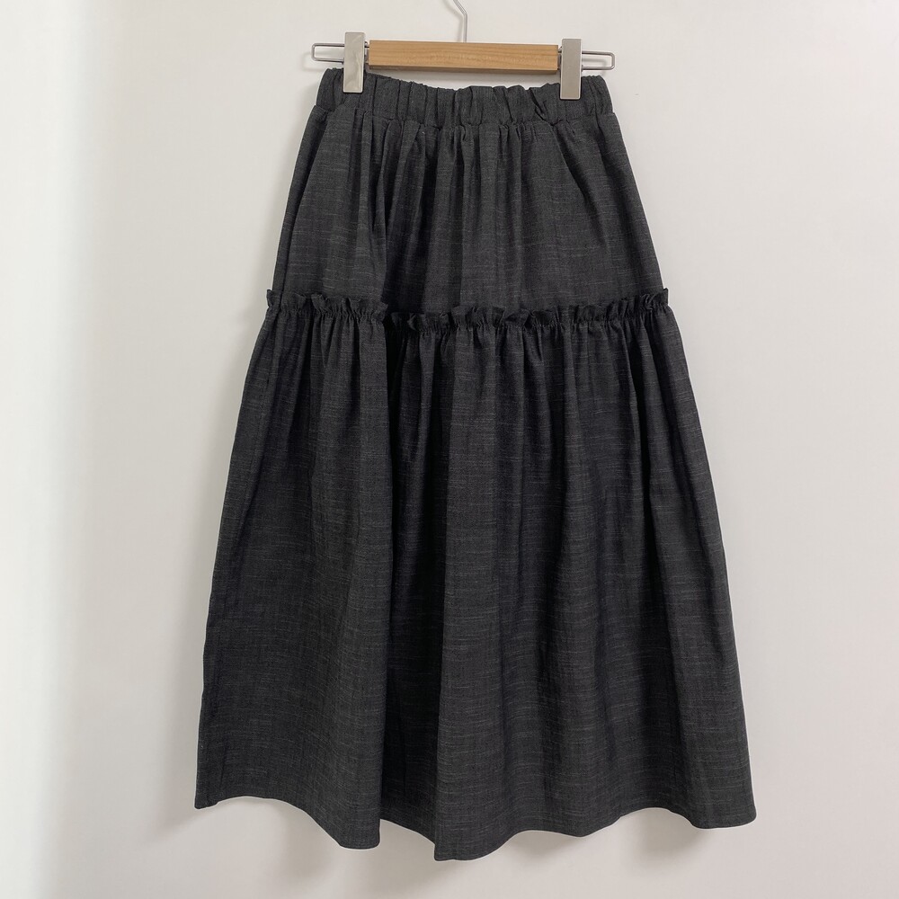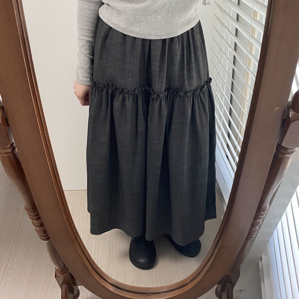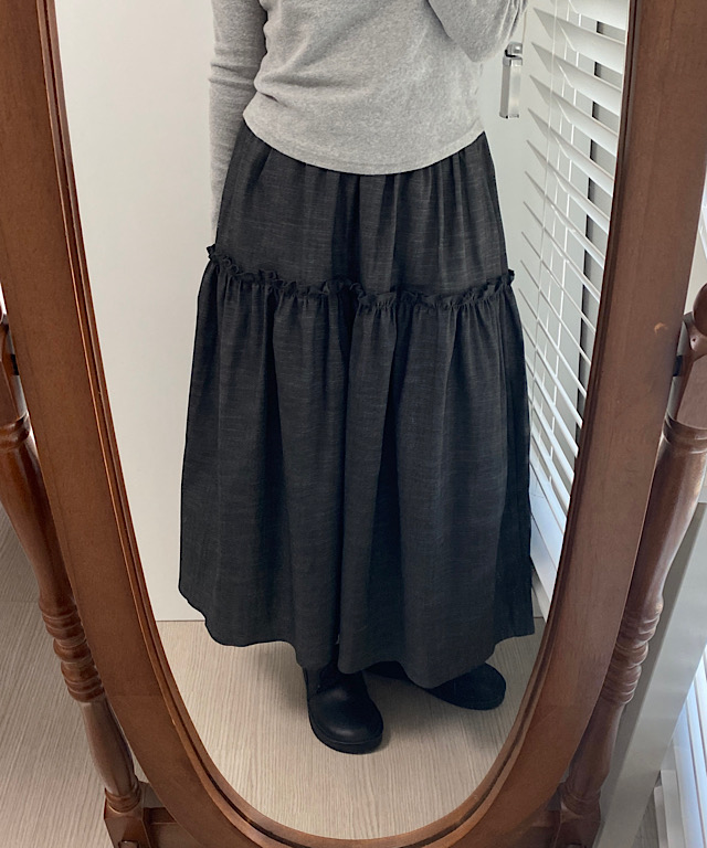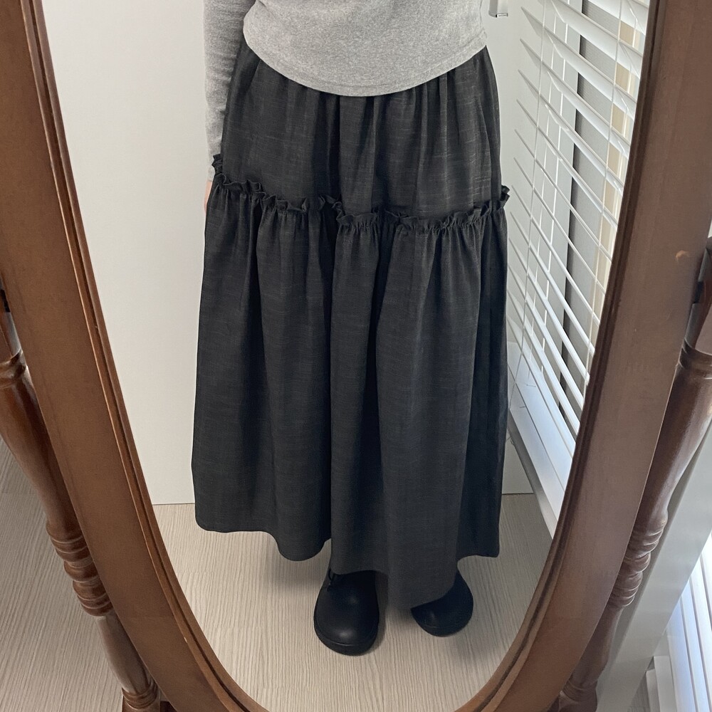 데님 프릴 롱스커트