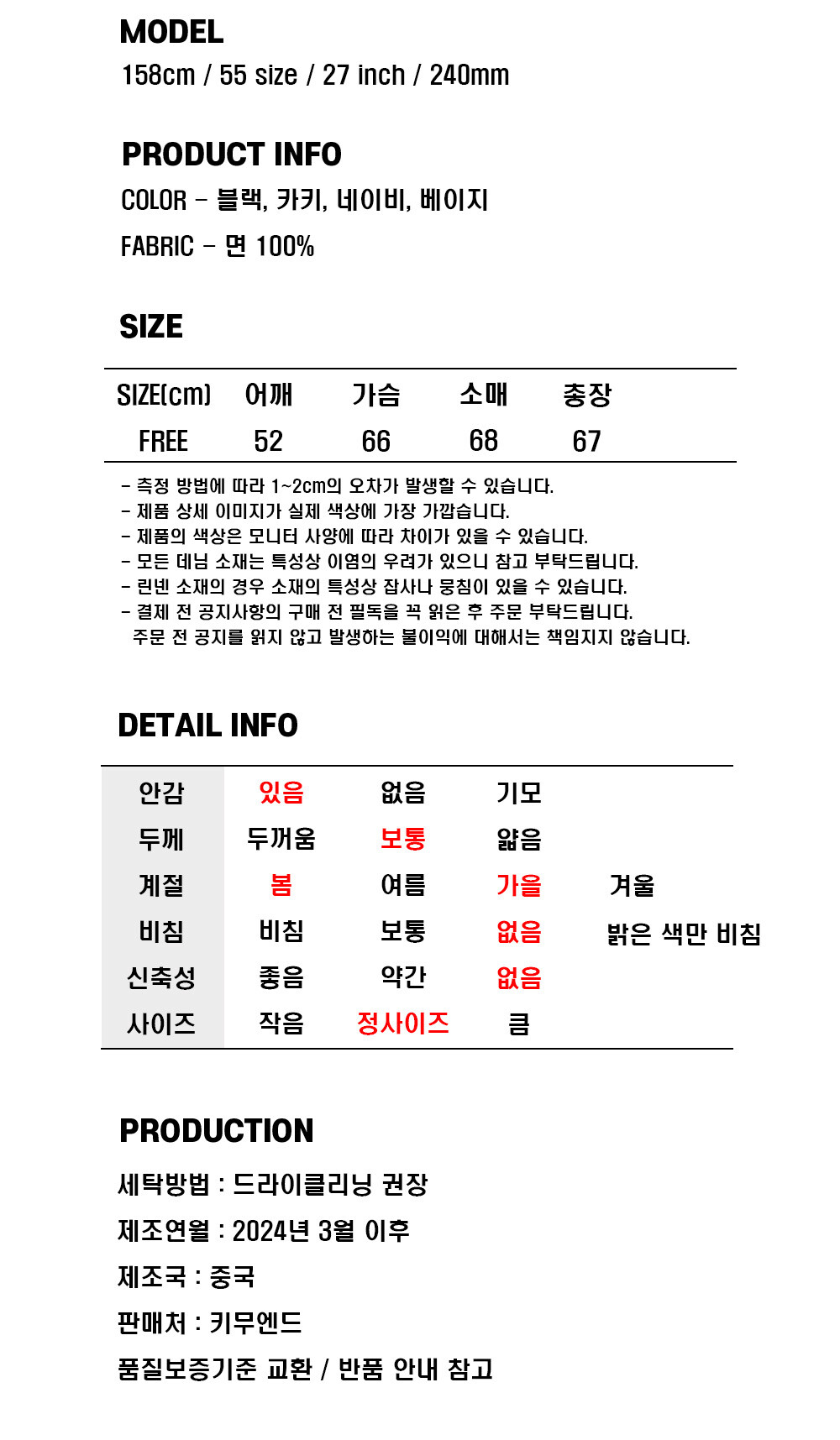 부드러운 코듀로이 원단 사용으로 구김 없이 착용 가능하며,