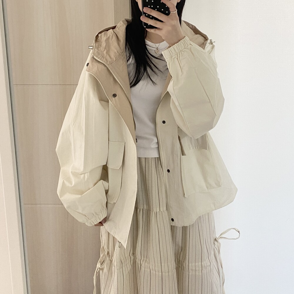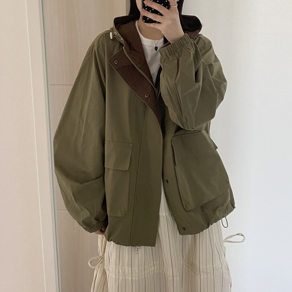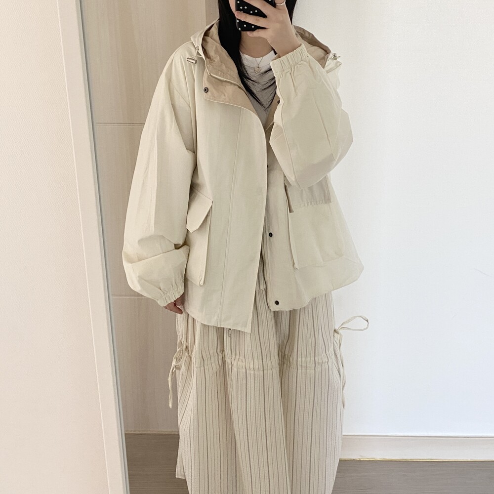 [릴스상품]배색 후드 야상 바람막이(3color)
