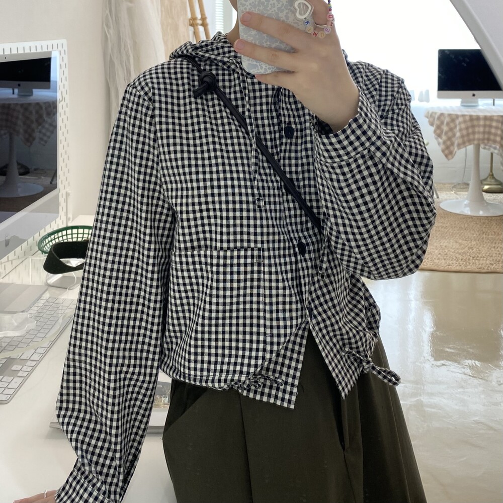 체크 패턴에 부담스럽지 않은 기장감과 후드는 말모,,,♥