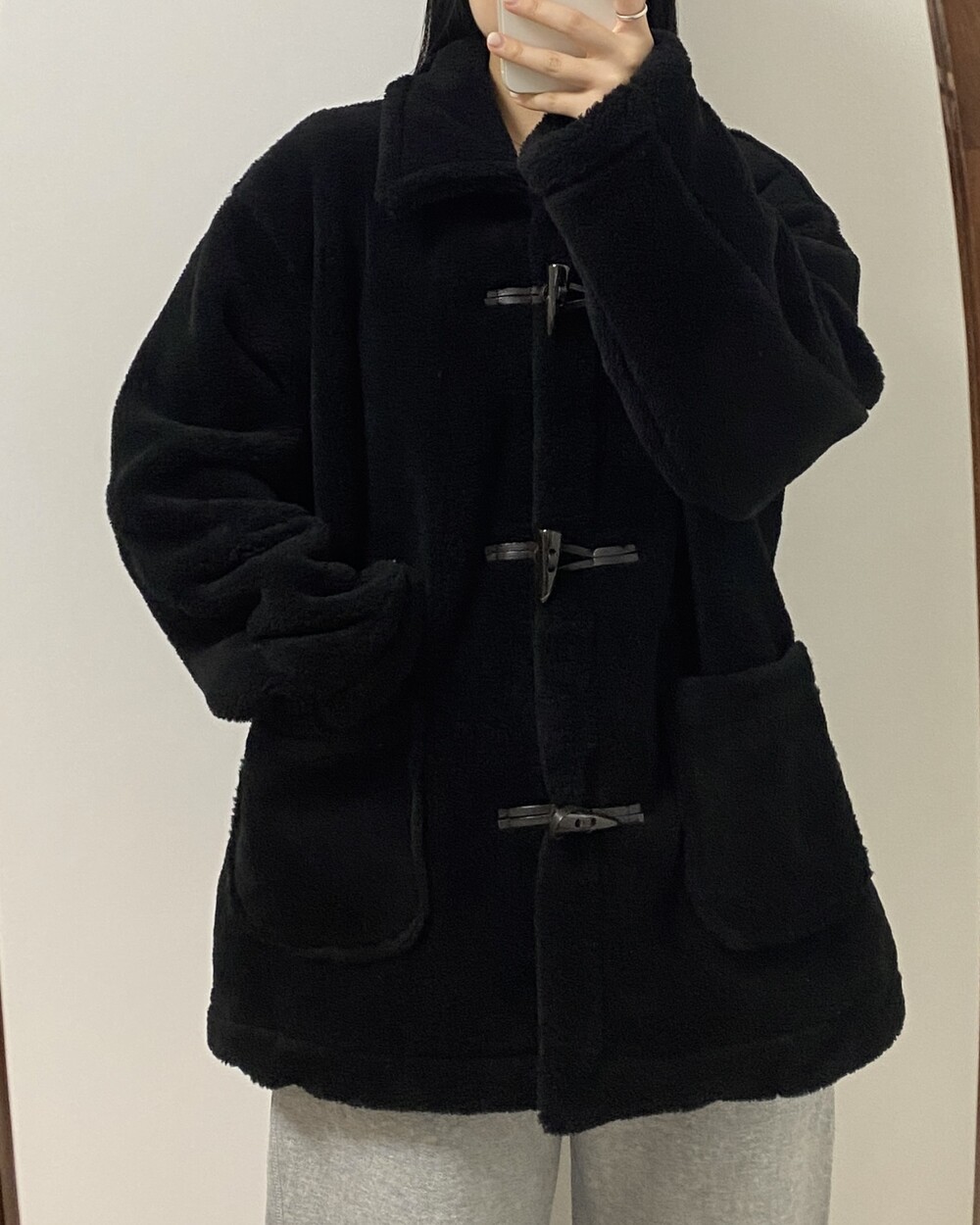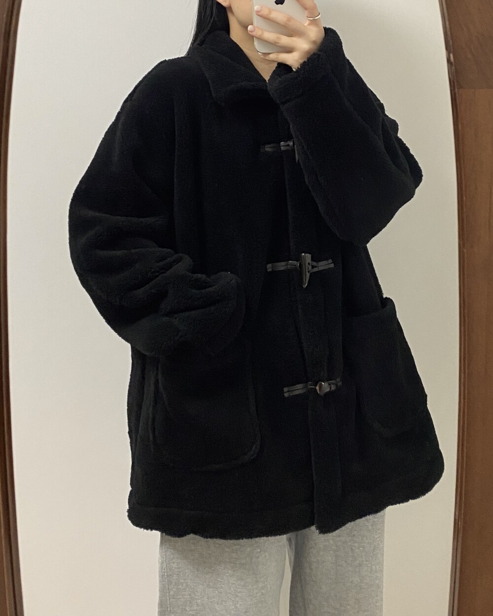 [양면]뽀글이 카라 떡볶이 더플 코트(3color)
