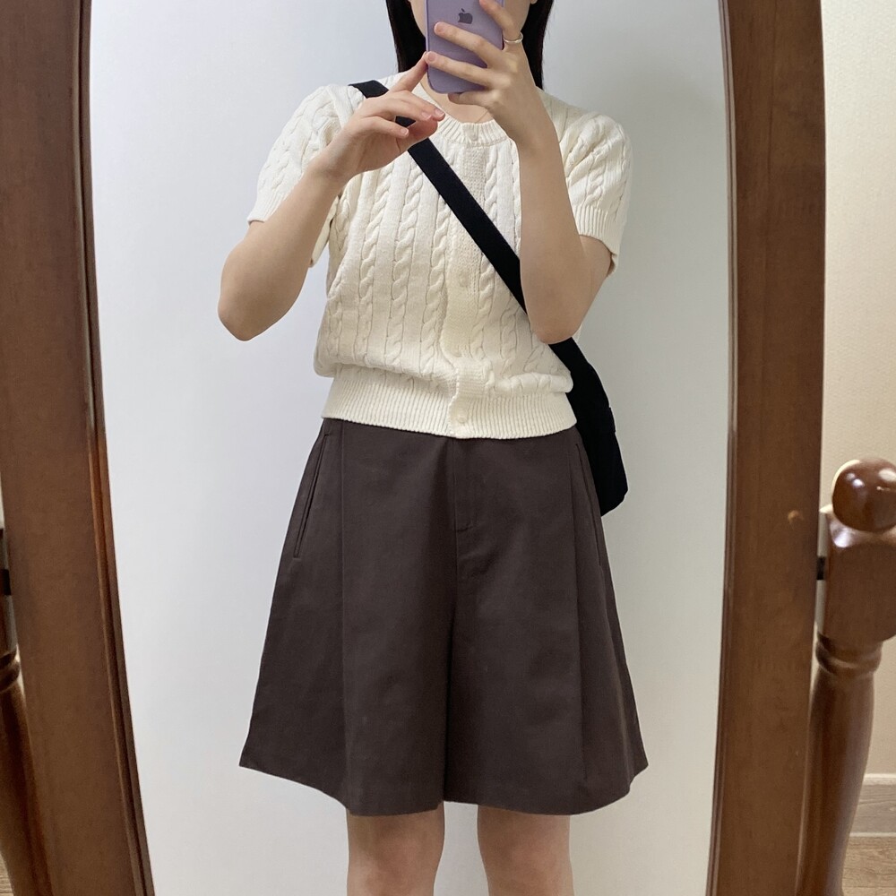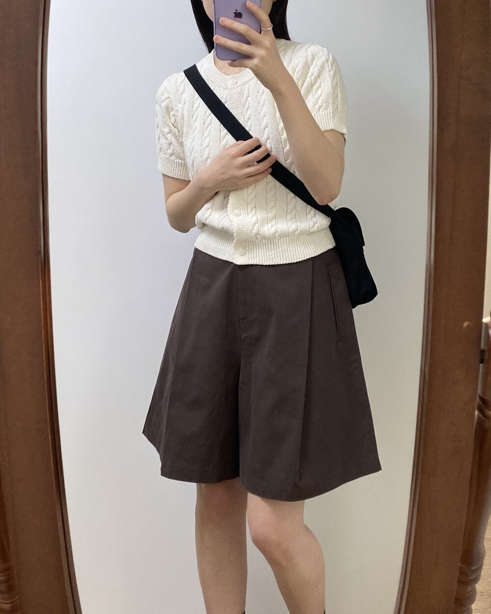 코튼 핀턱 와이드 미디 팬츠(3color)