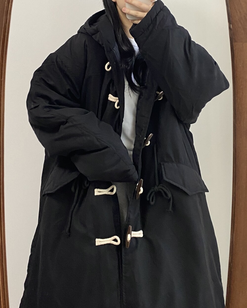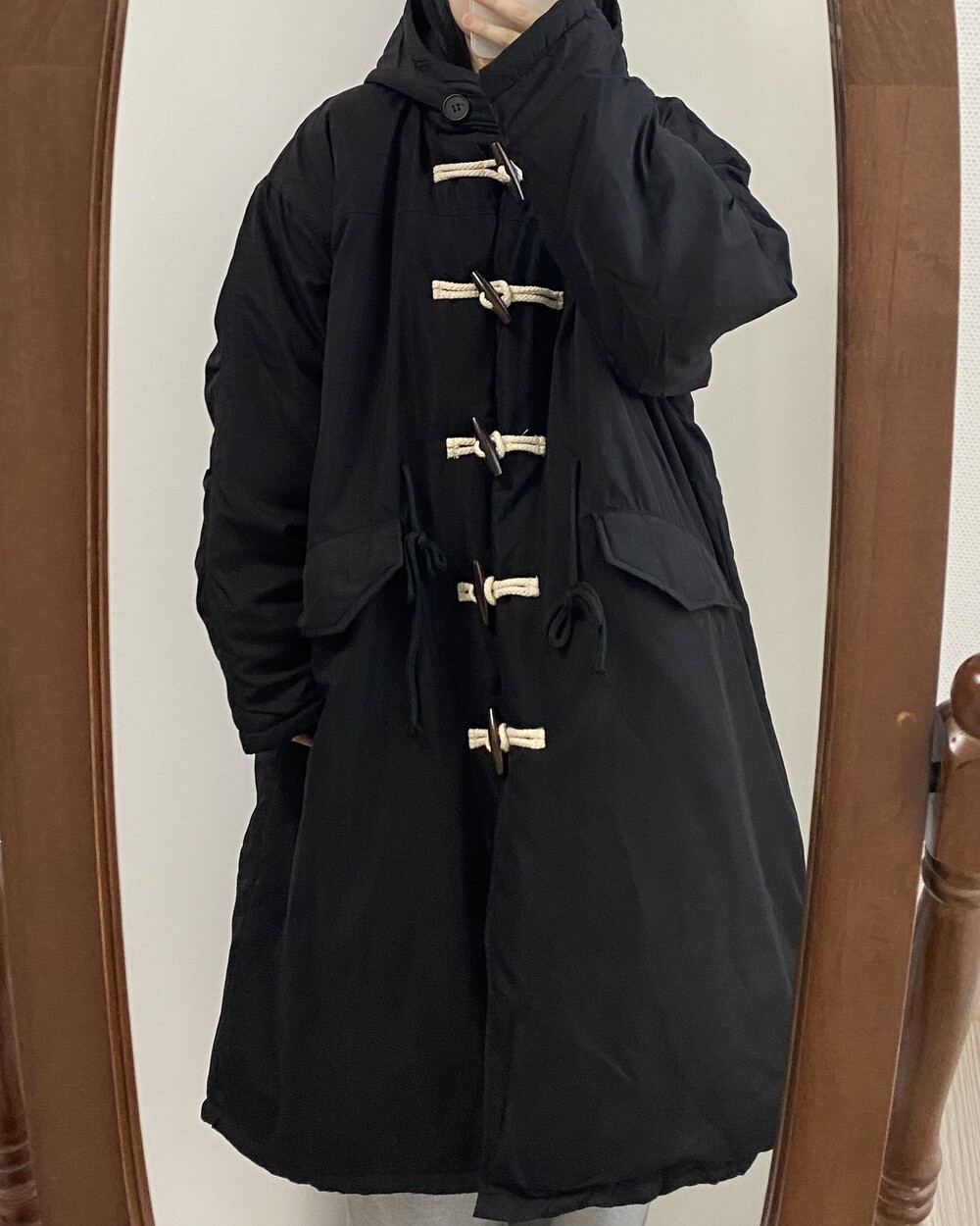 [패딩]후드 롱 더플코트 야상 롱패딩(2color)